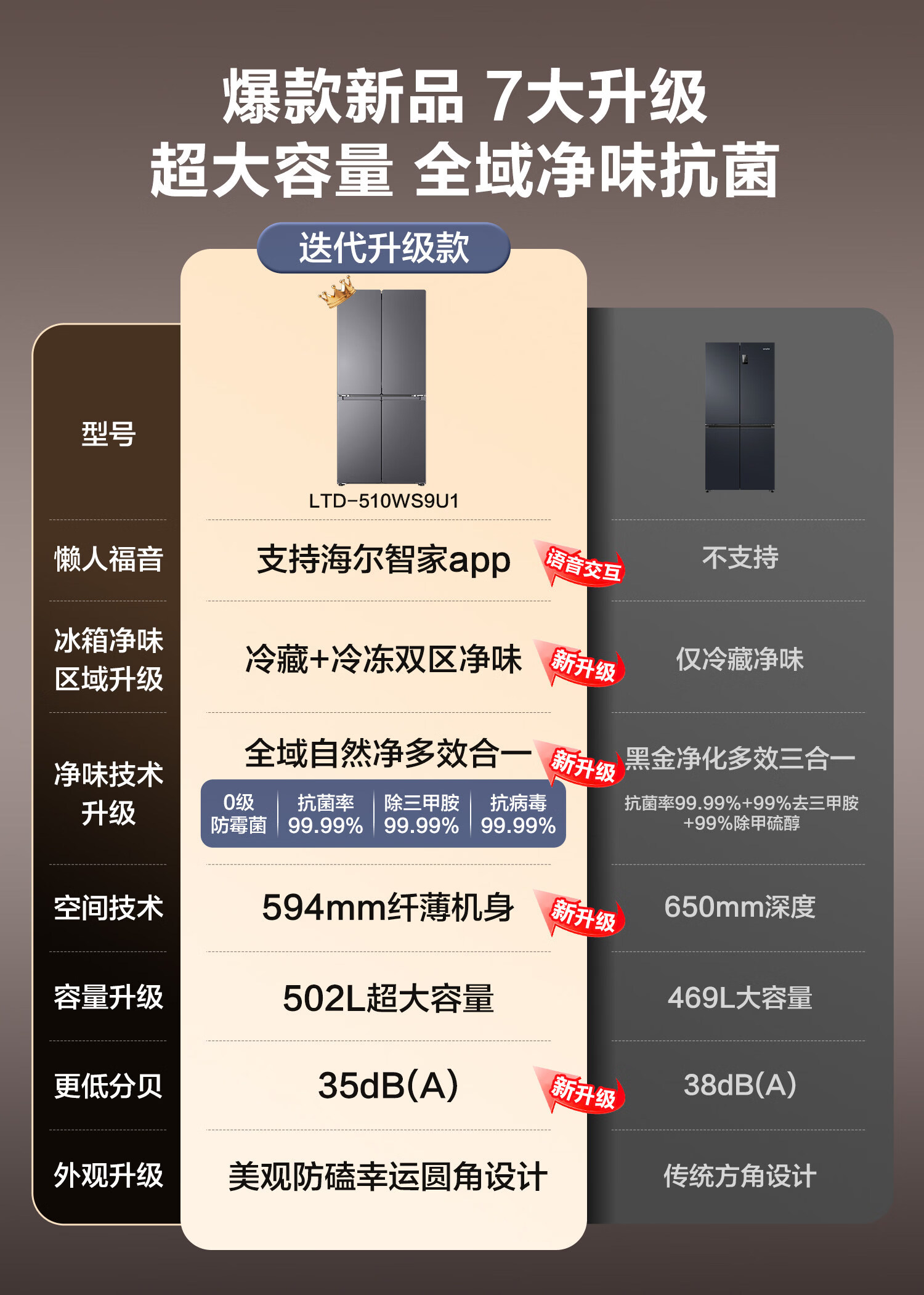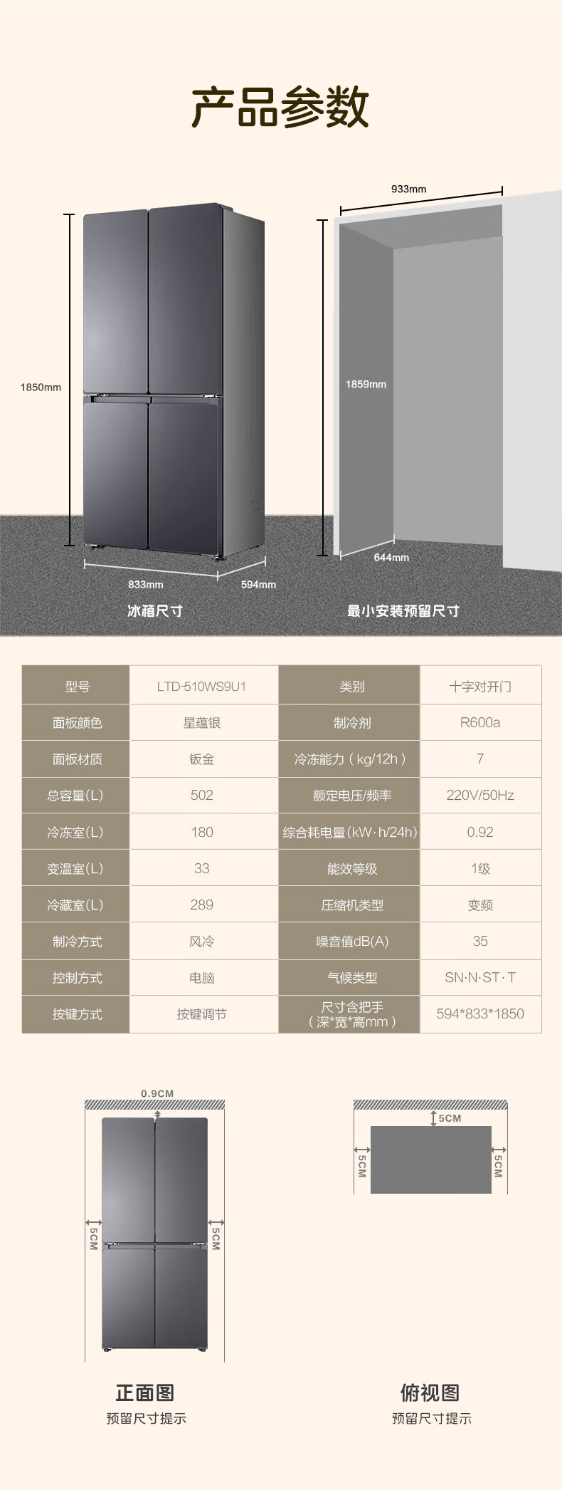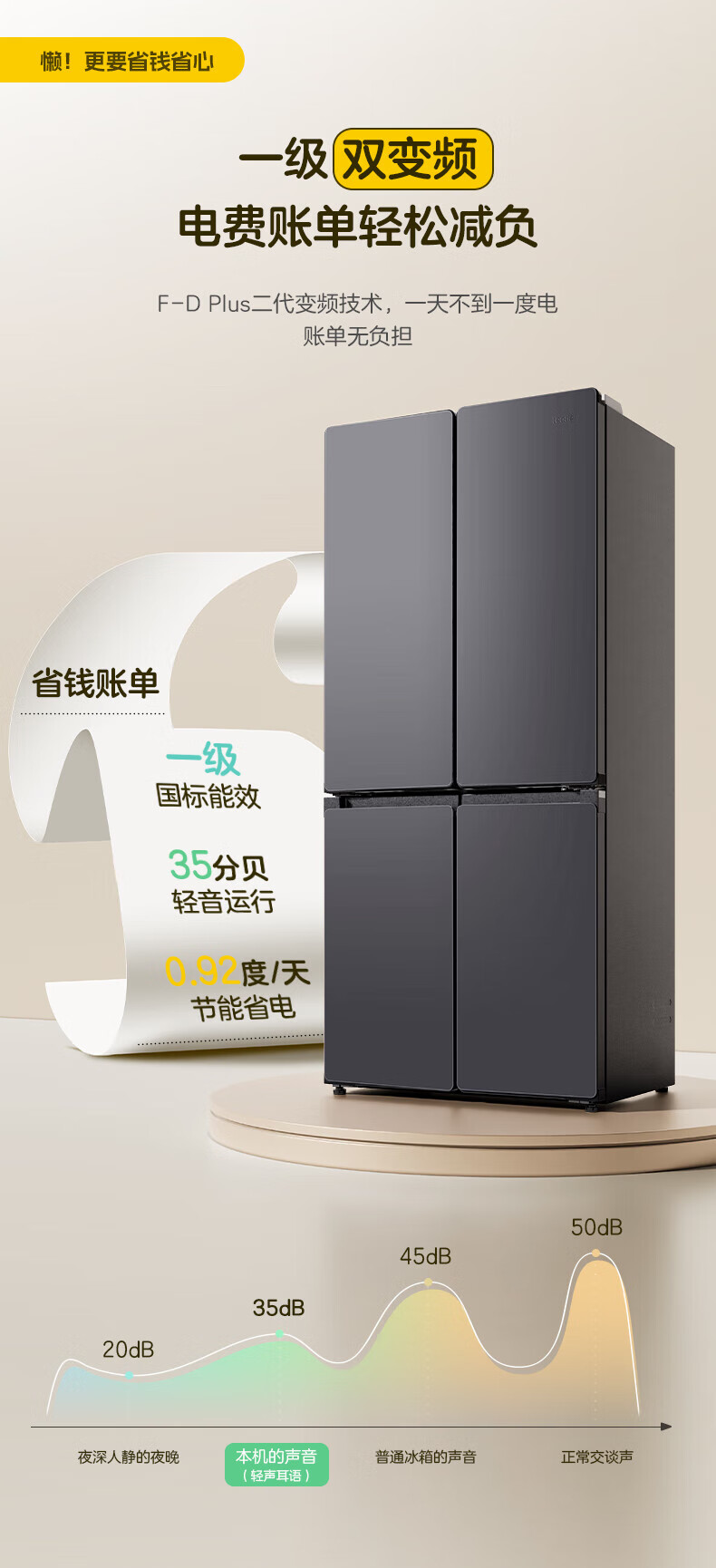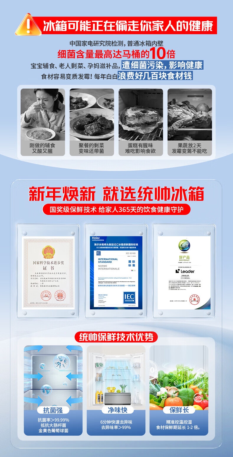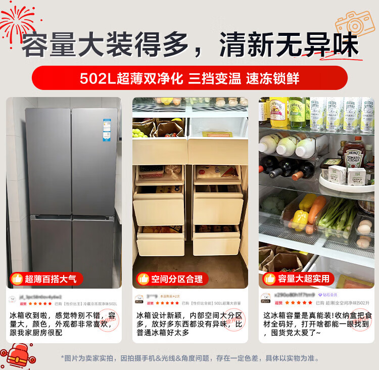 海尔(Haier)冰箱502升十字对开四开门家用大容量双循环超薄可嵌入一级节能双变频家电国家补贴统帅510懒人系列 502L星蕴银+全空间净味+双循环+变温储鲜