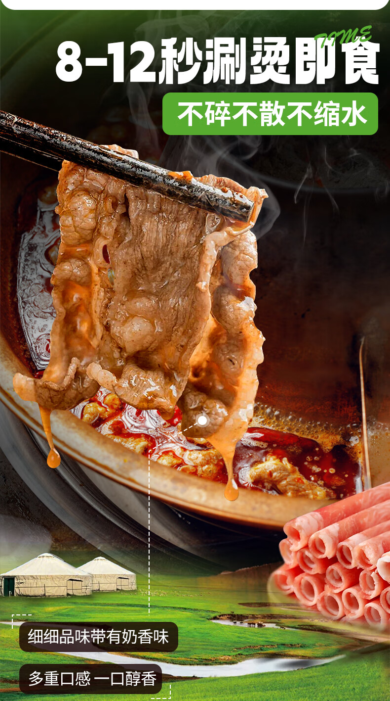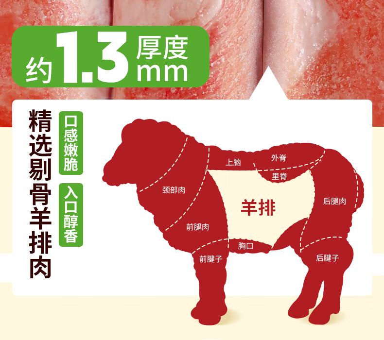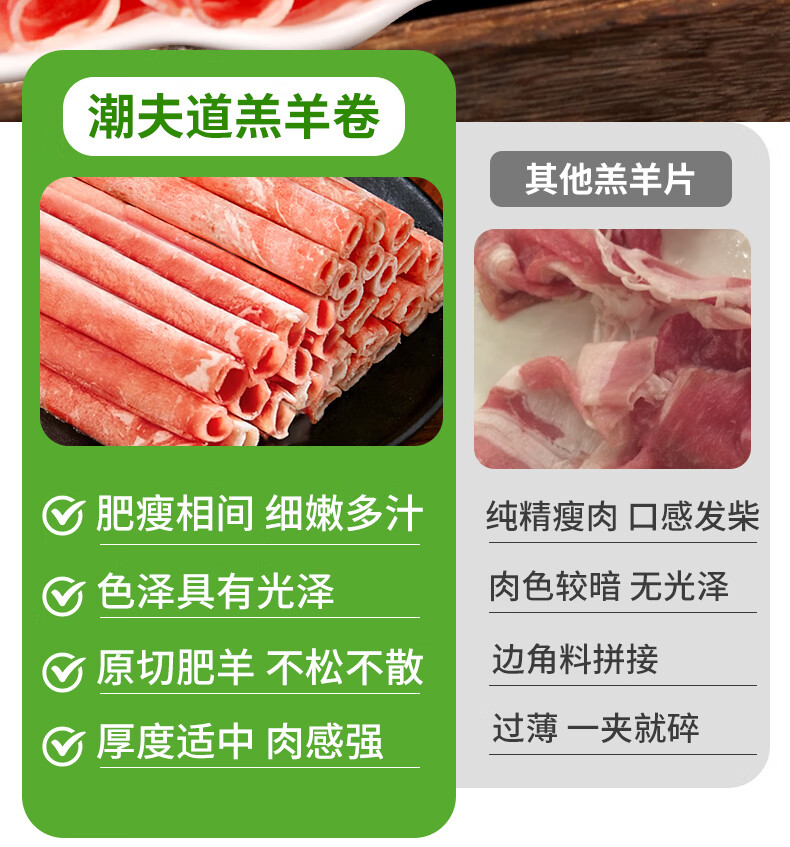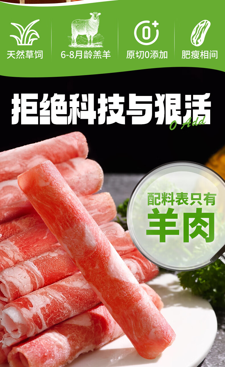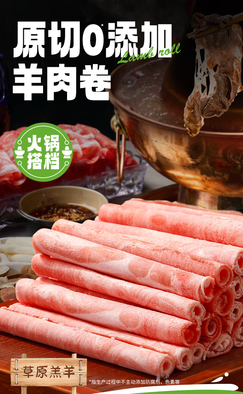 潮夫道原切0添加羔羊羊肉卷400g羊肉片羊排肉卷生鲜涮肉火锅食材