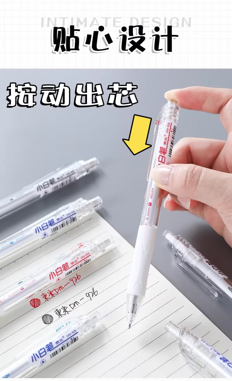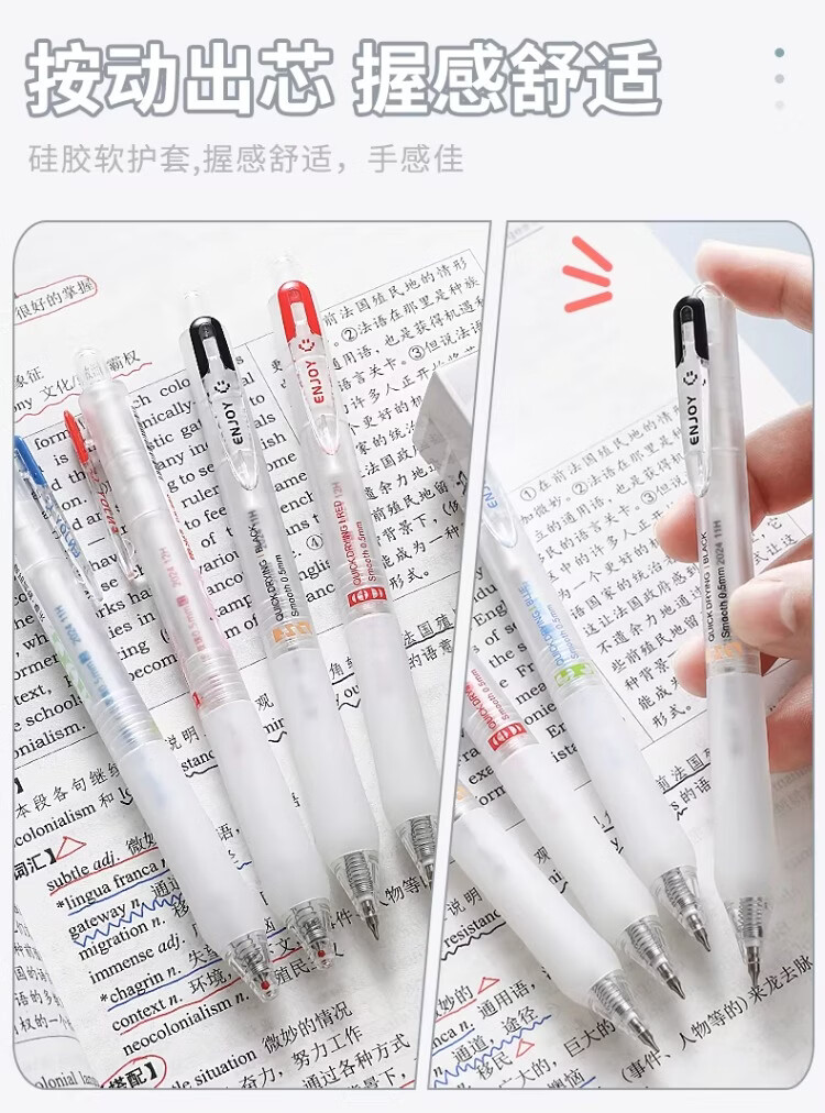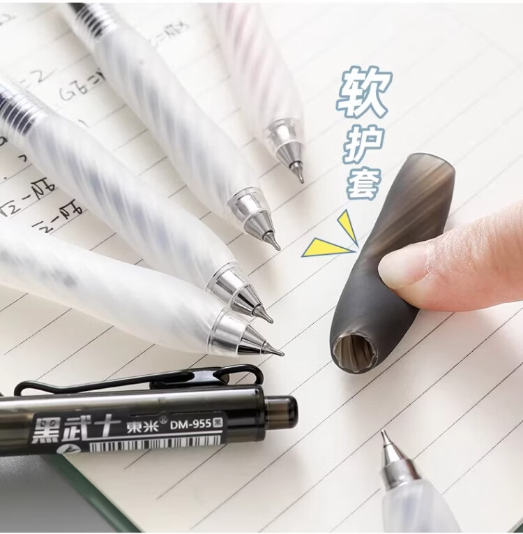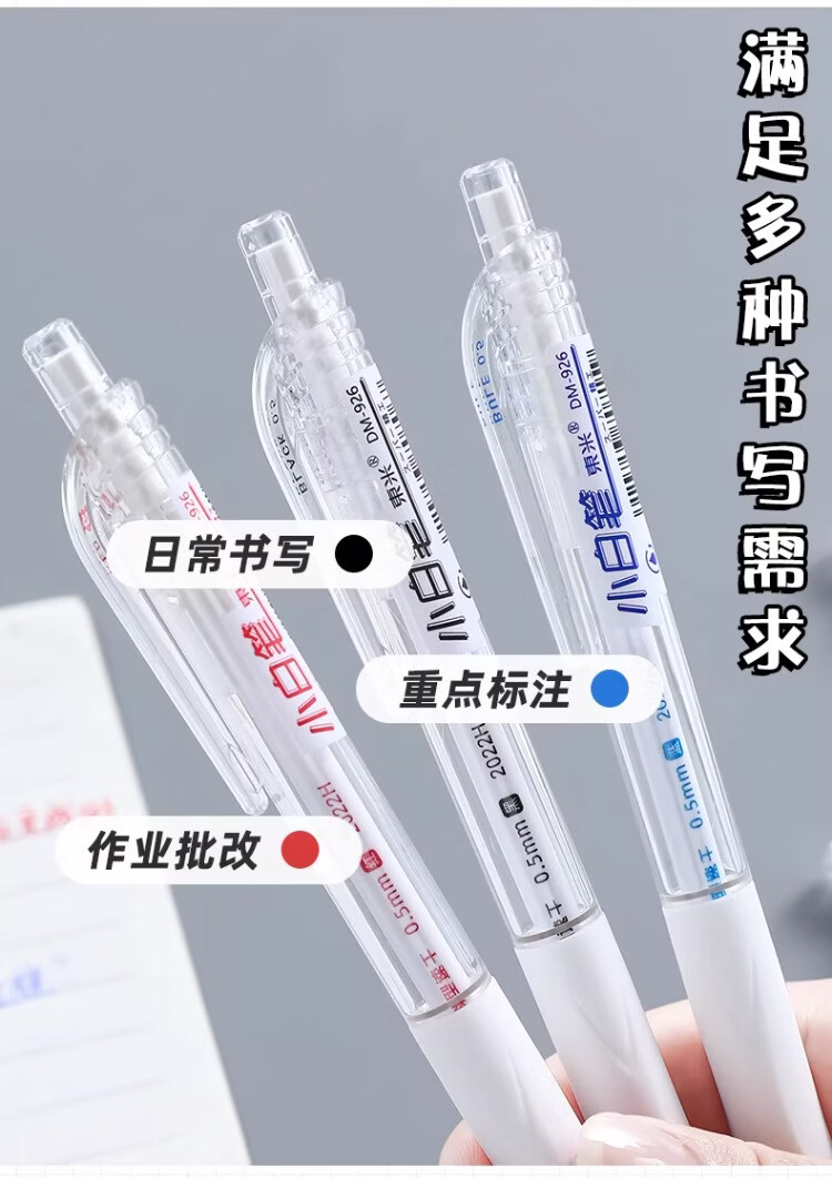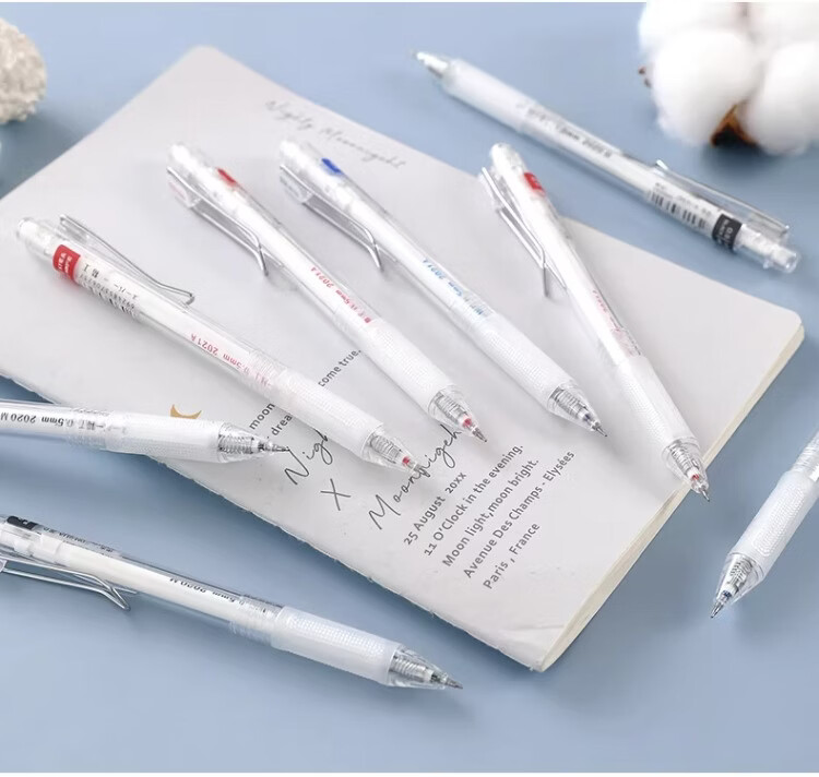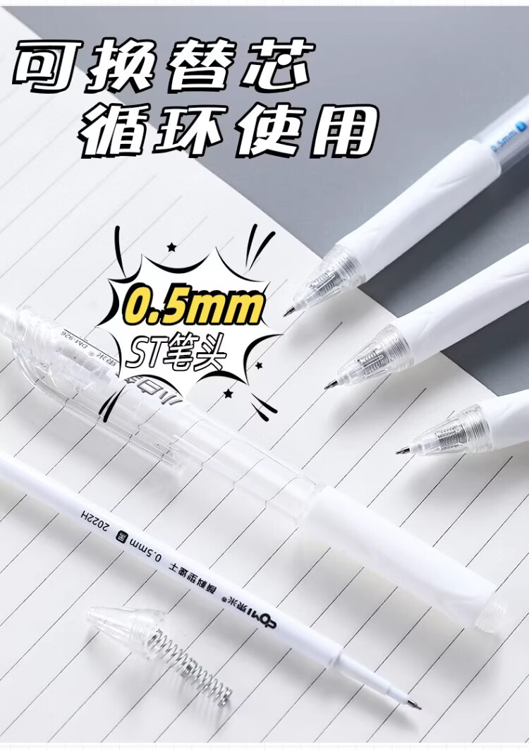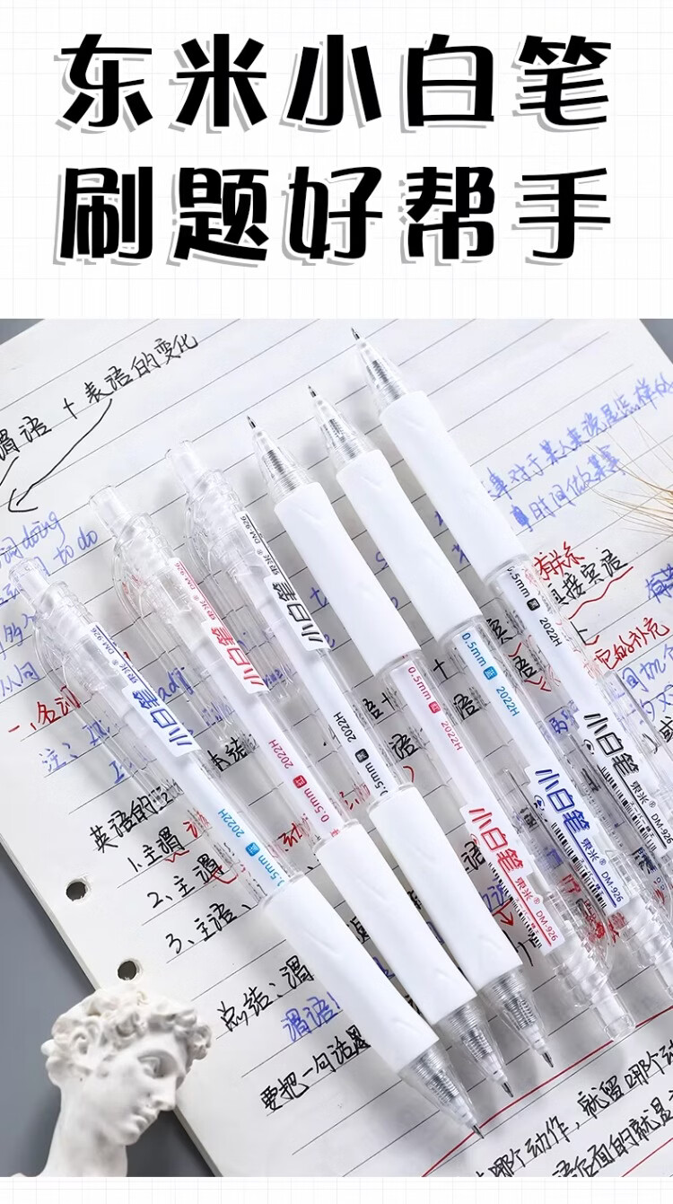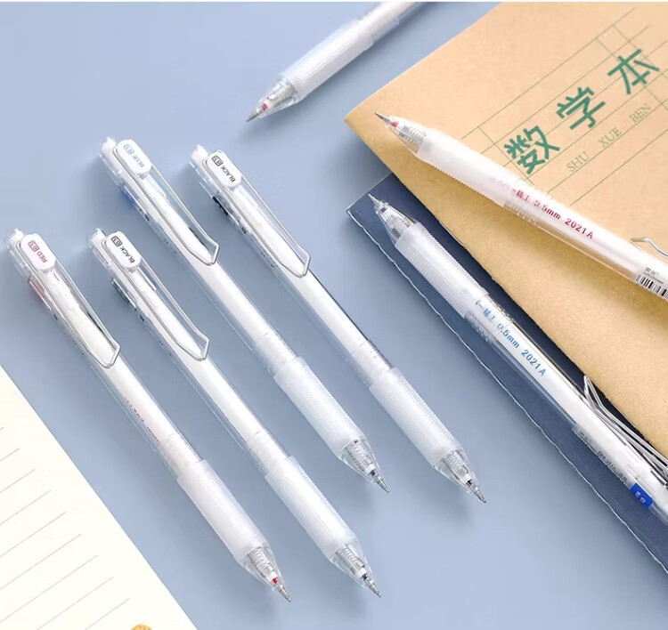 東米中性笔高颜值按动中性笔0.5速干顺滑刷题笔学生考试专用黑色签字笔 五支白色系笔杆赠10支替芯