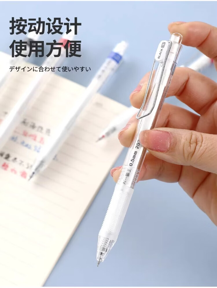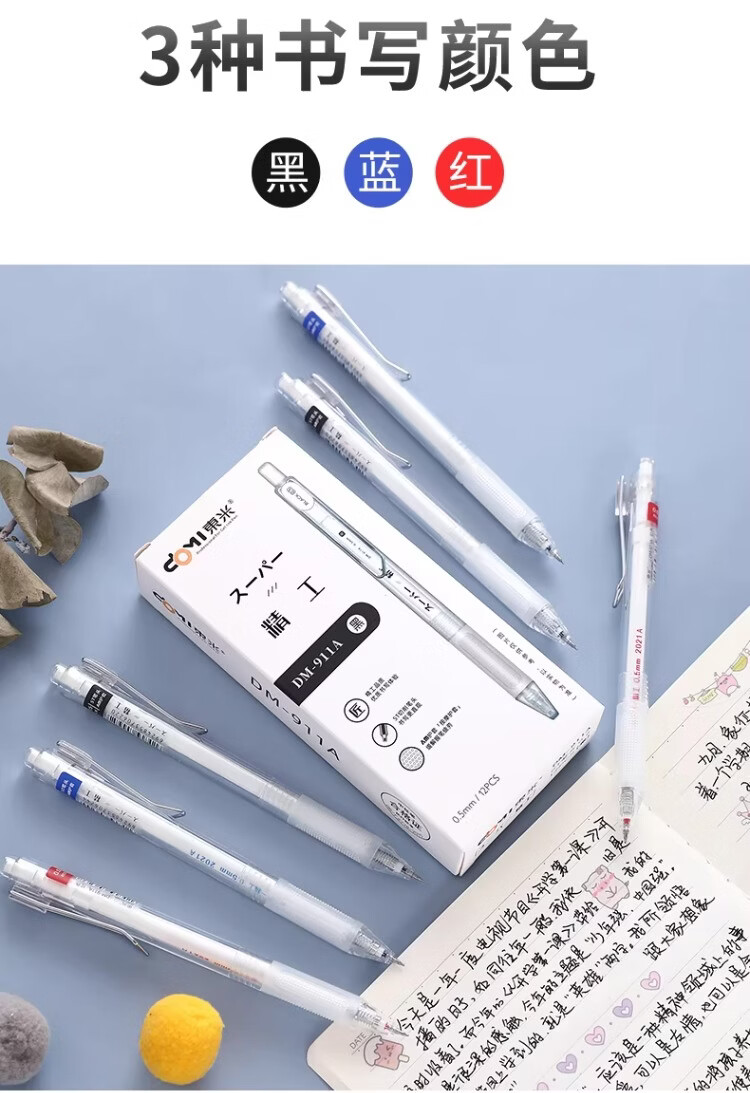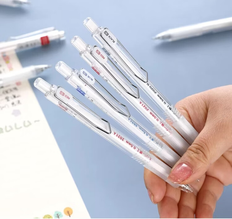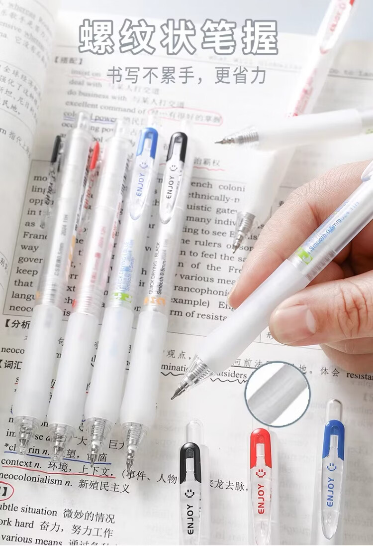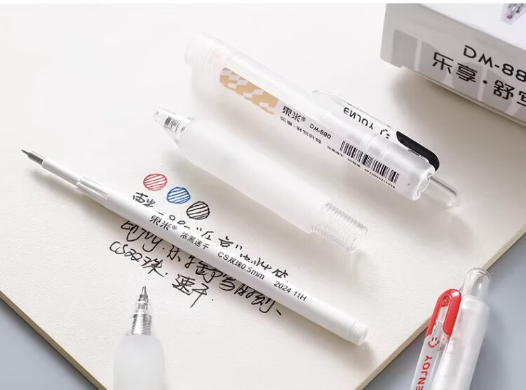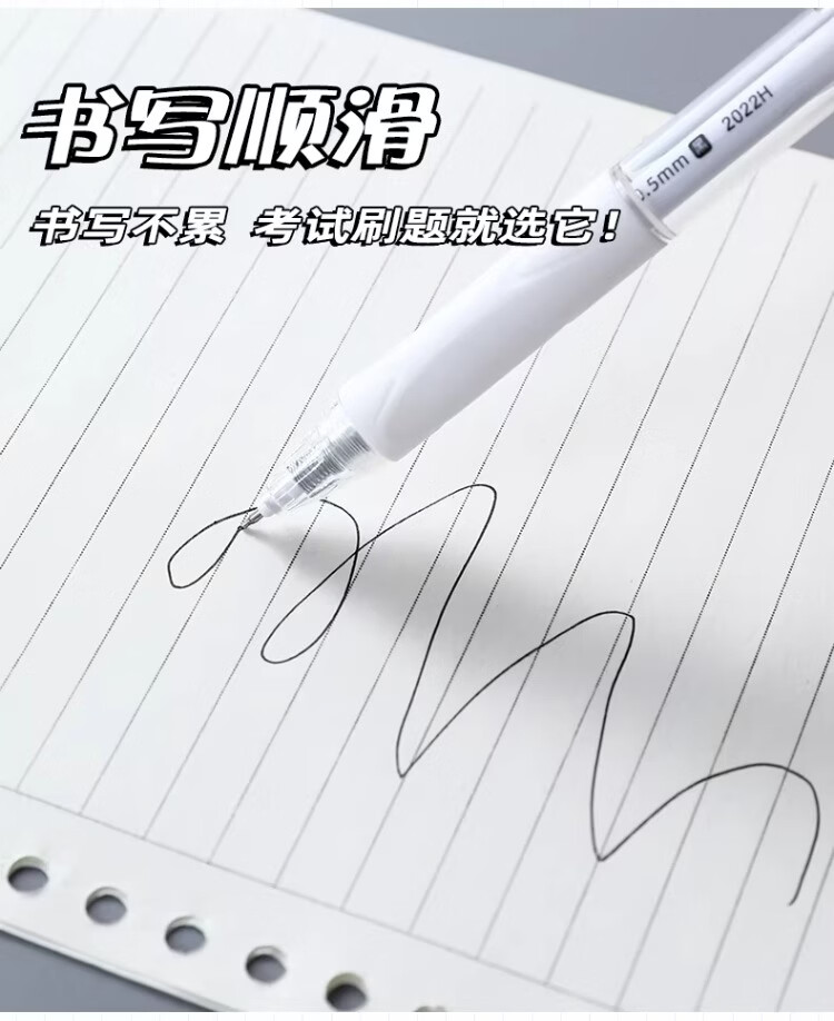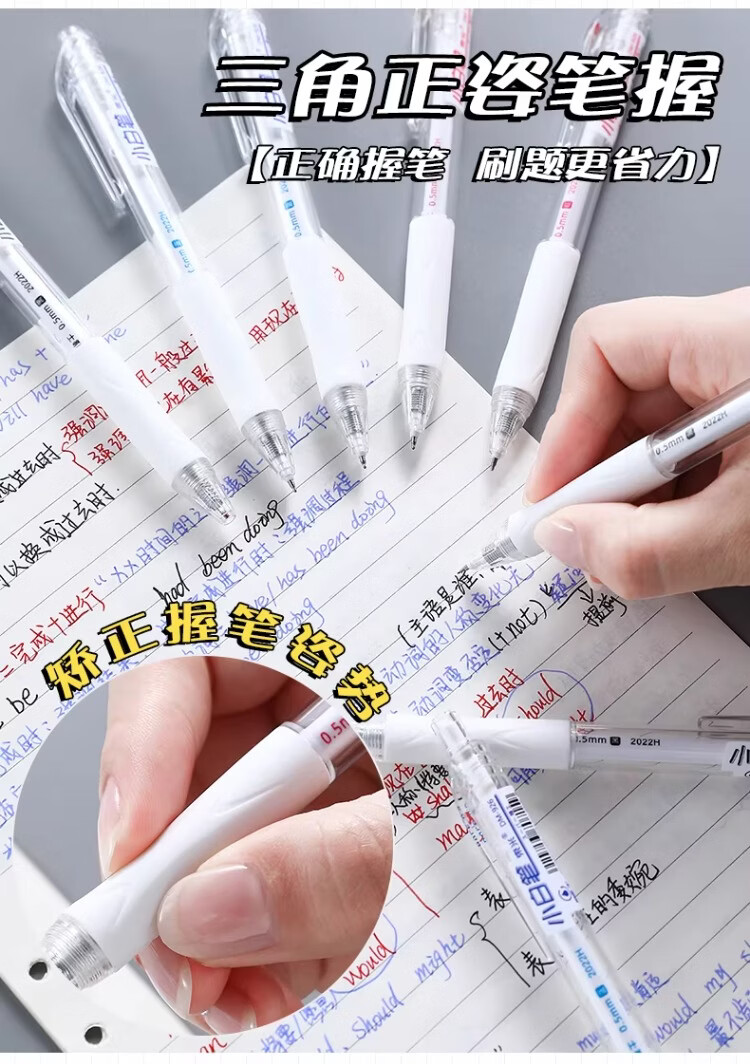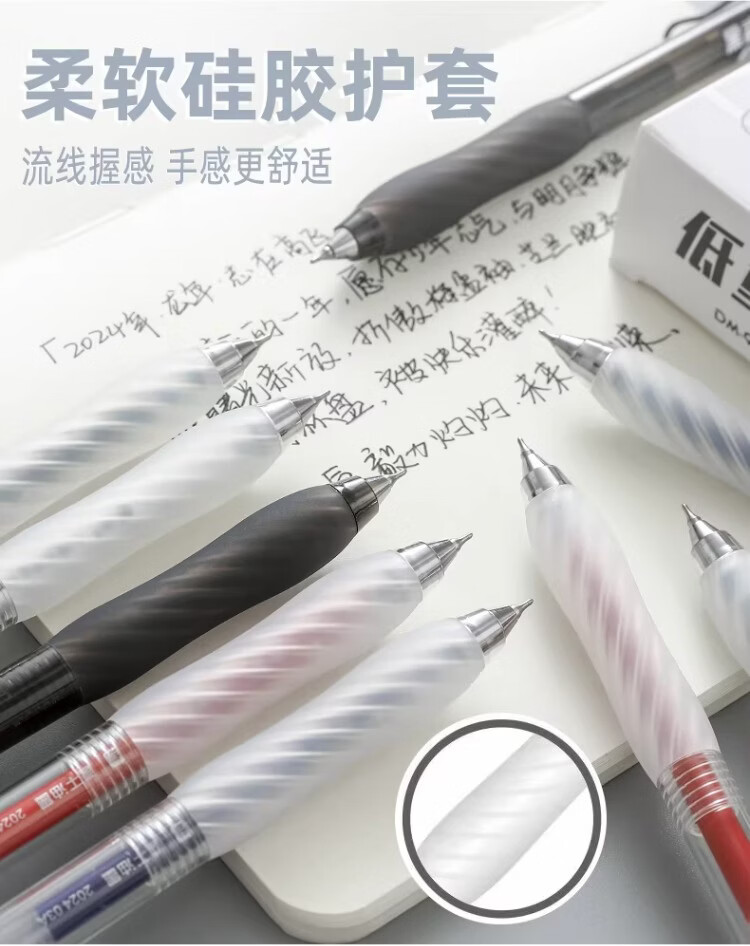 東米中性笔高颜值按动中性笔0.5速干顺滑刷题笔学生考试专用黑色签字笔 五支白色系笔杆赠10支替芯