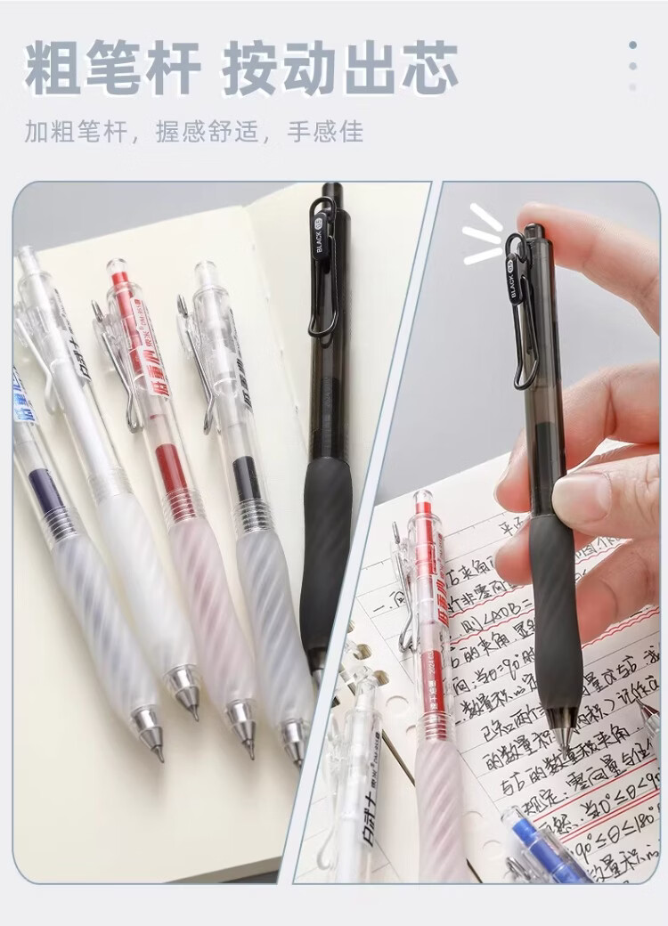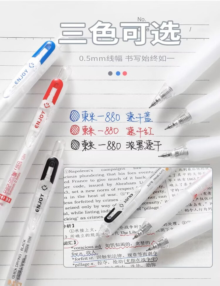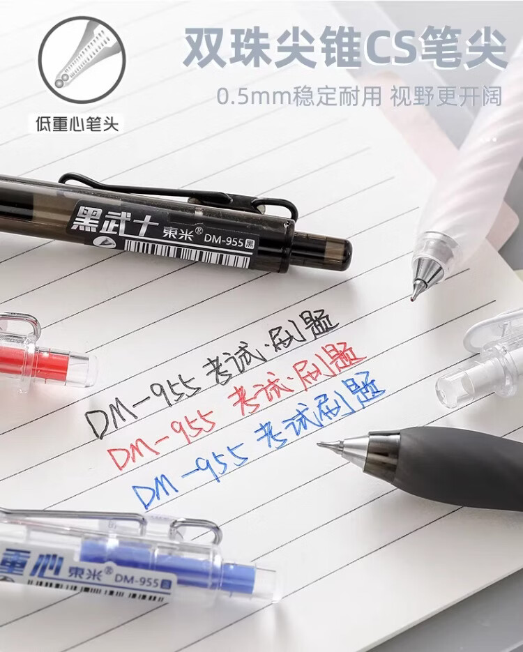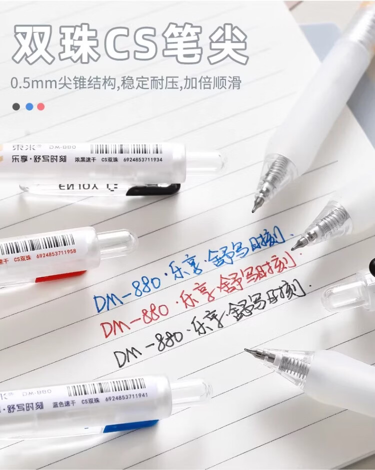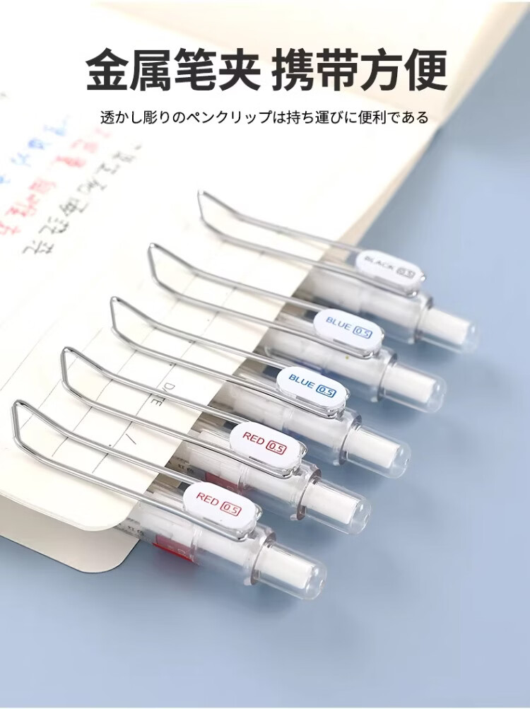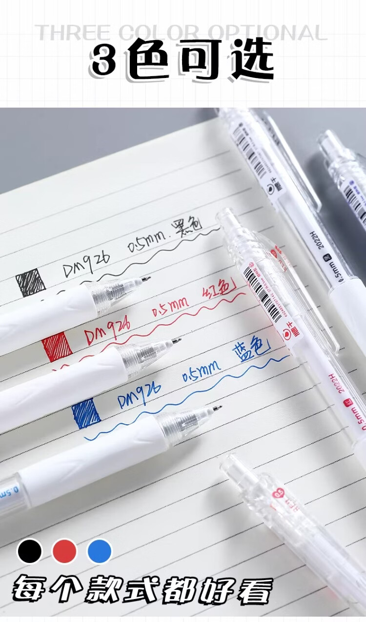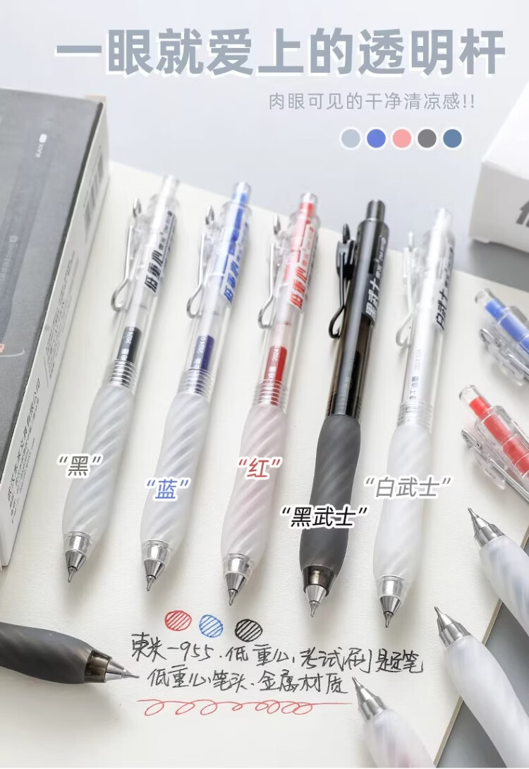 東米中性笔高颜值按动中性笔0.5速干顺滑刷题笔学生考试专用黑色签字笔 五支白色系笔杆赠10支替芯