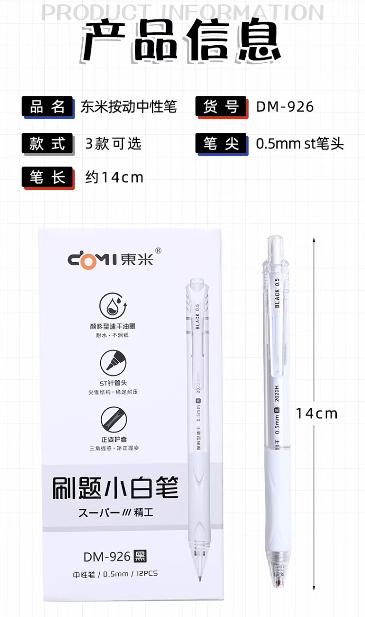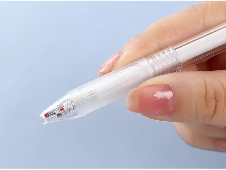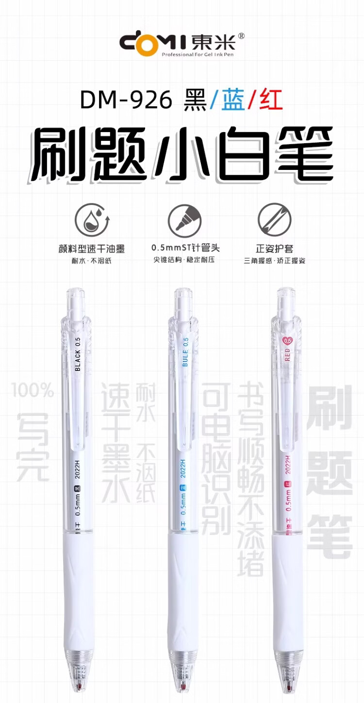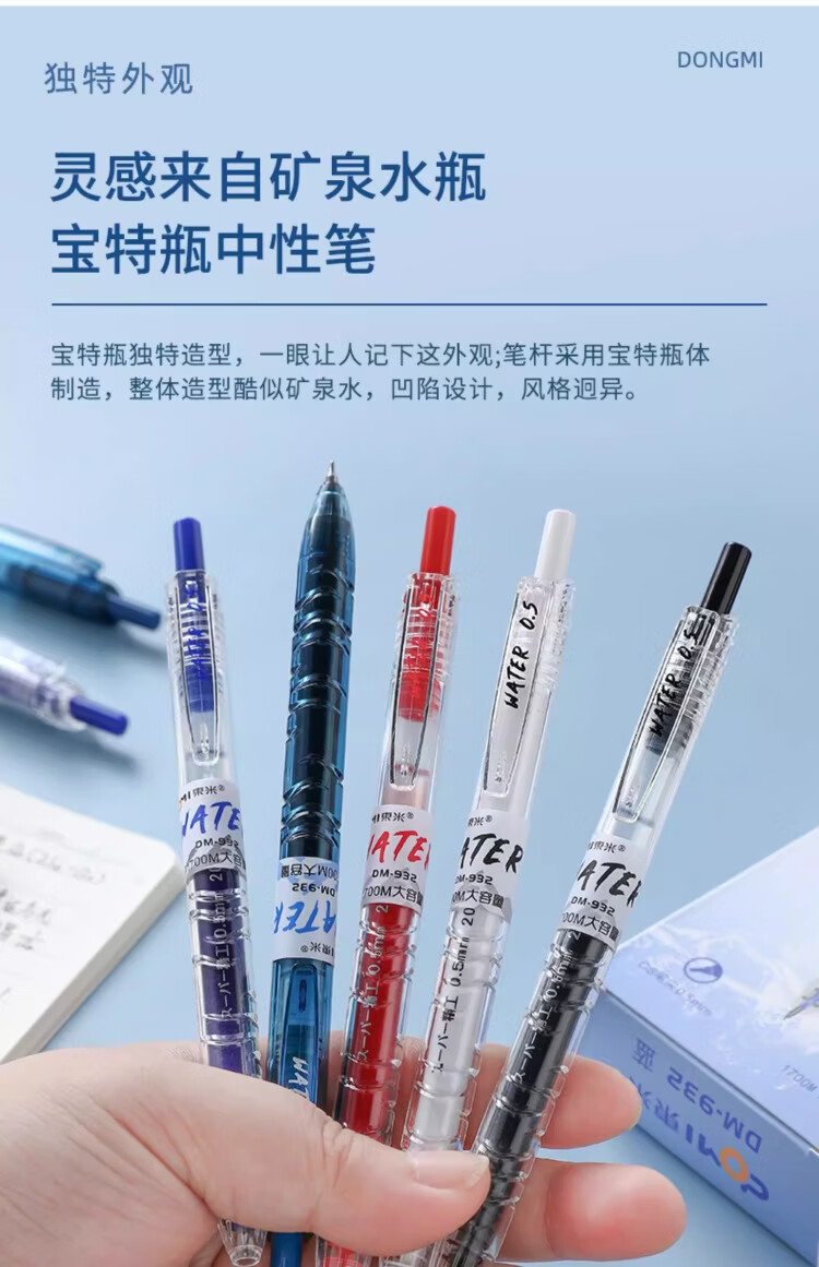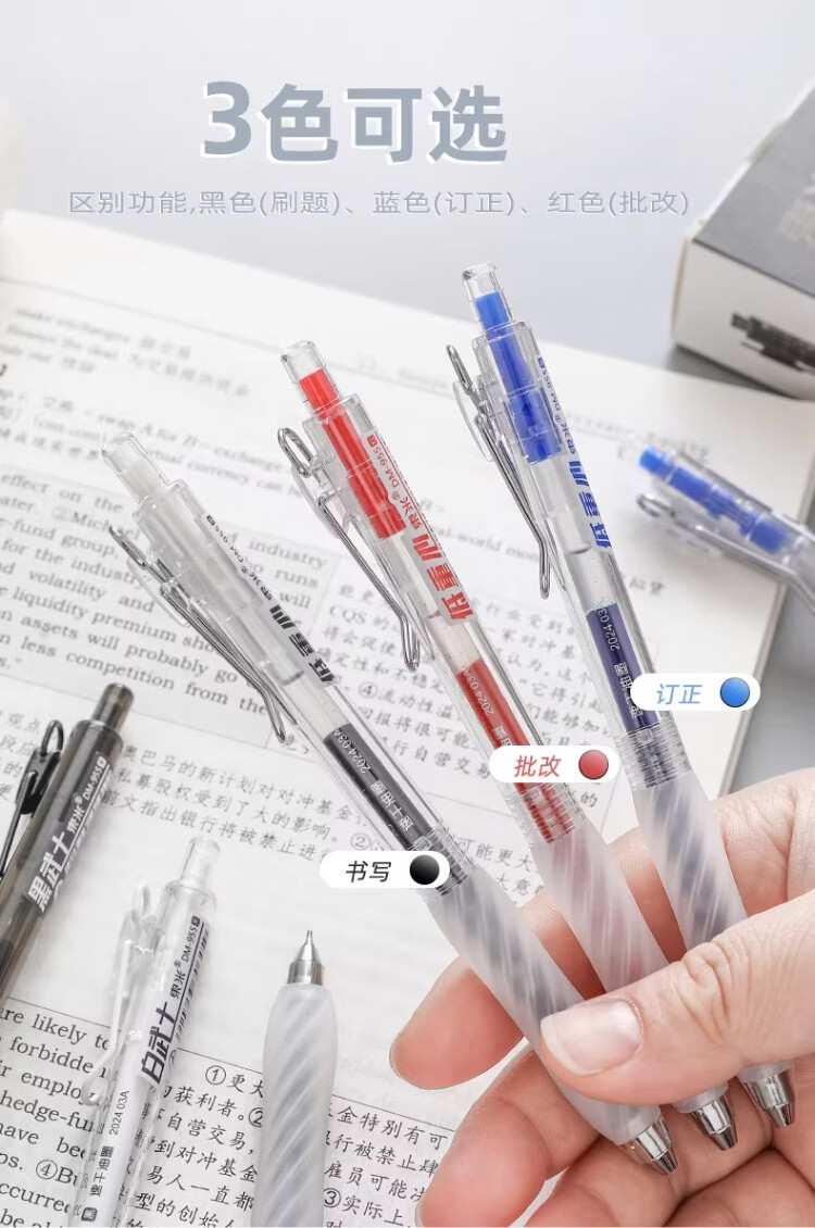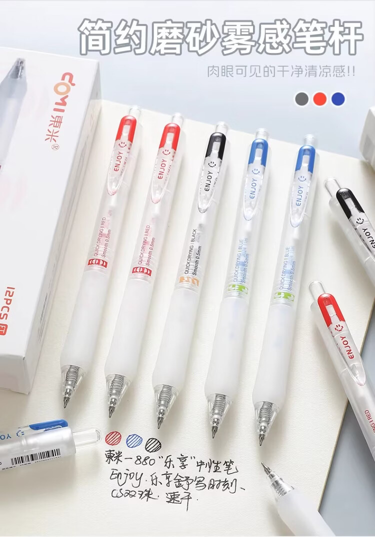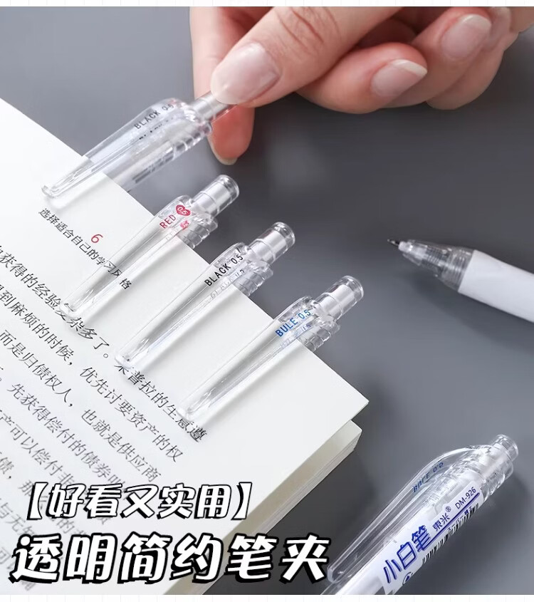 東米中性笔高颜值按动中性笔0.5速干顺滑刷题笔学生考试专用黑色签字笔 五支白色系笔杆赠10支替芯