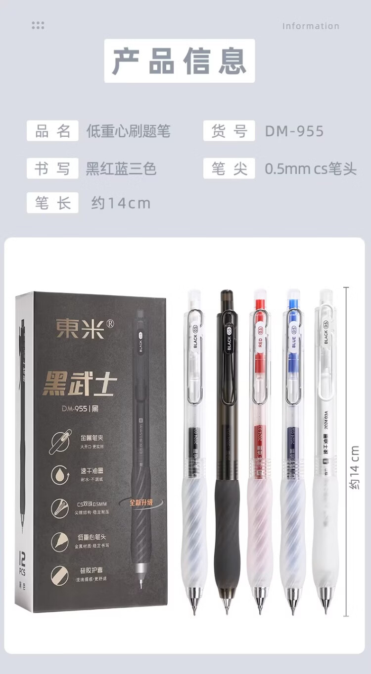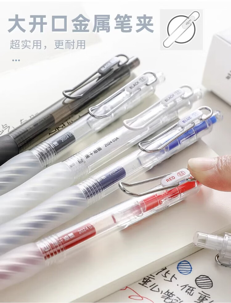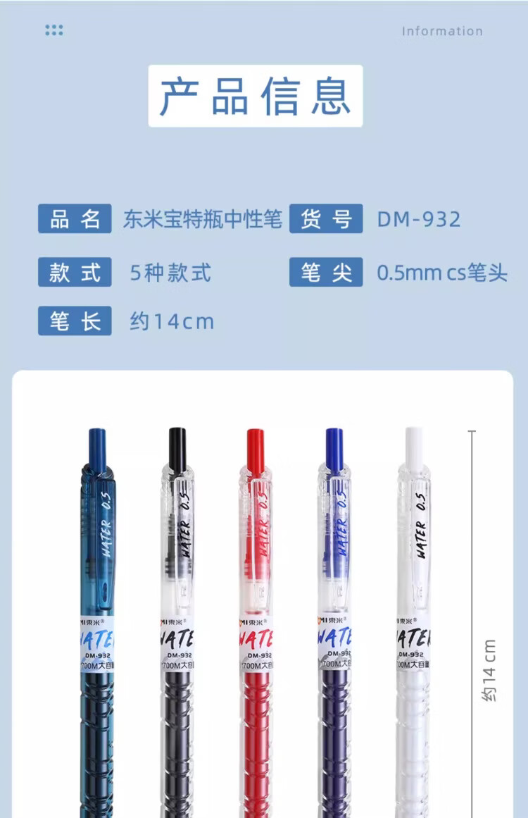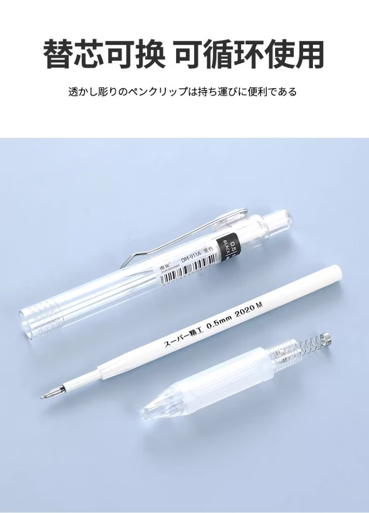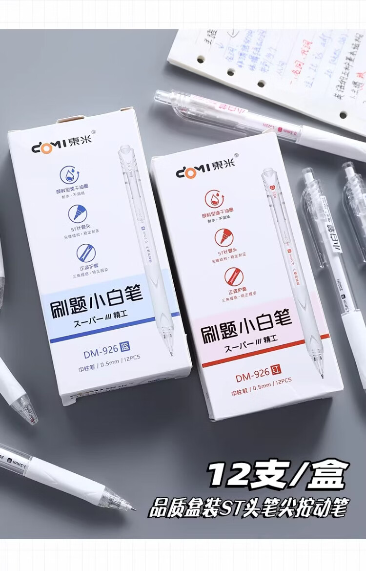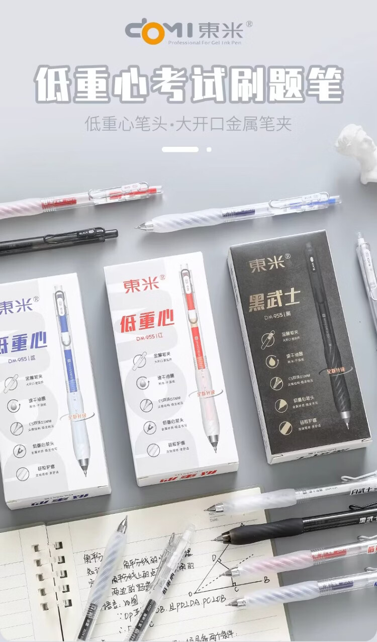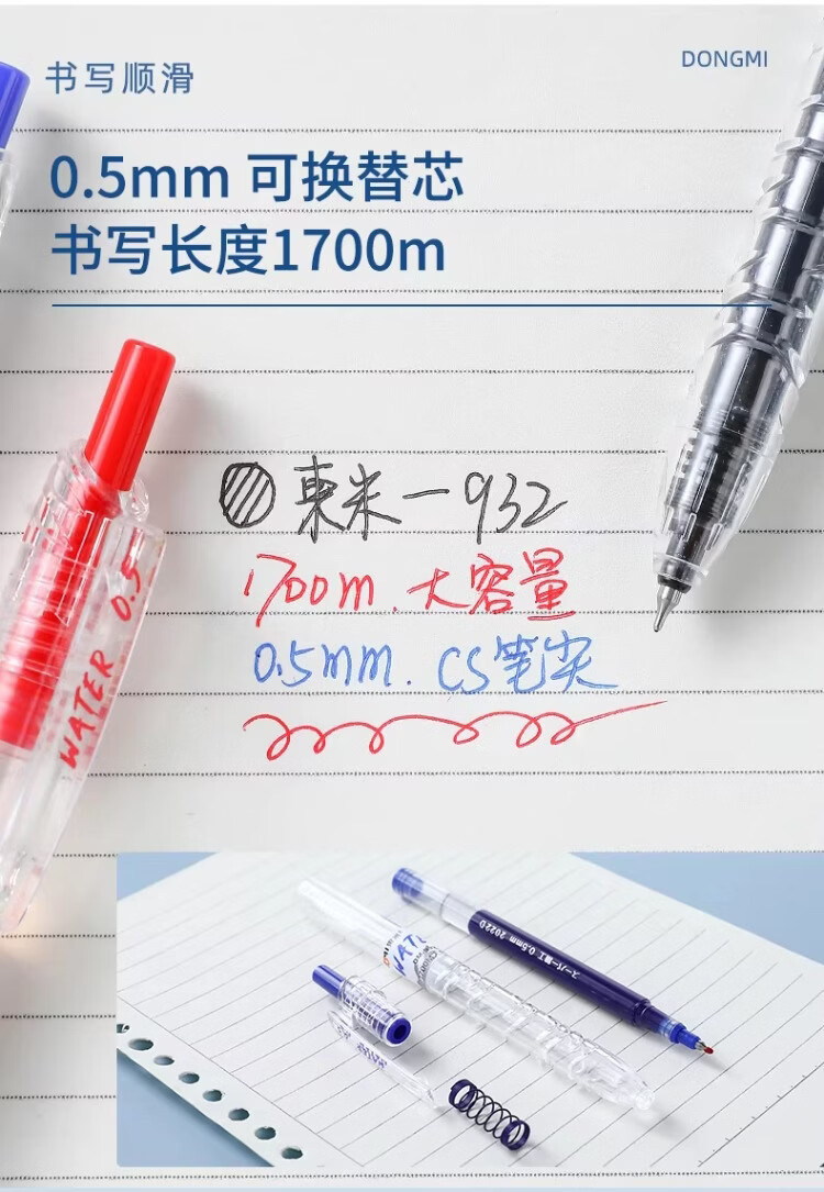 東米中性笔高颜值按动中性笔0.5速干顺滑刷题笔学生考试专用黑色签字笔 五支白色系笔杆赠10支替芯