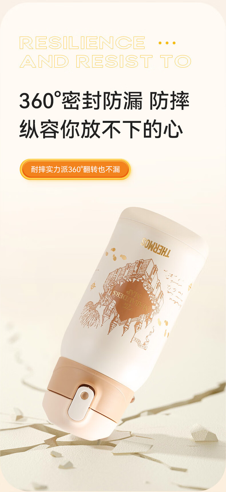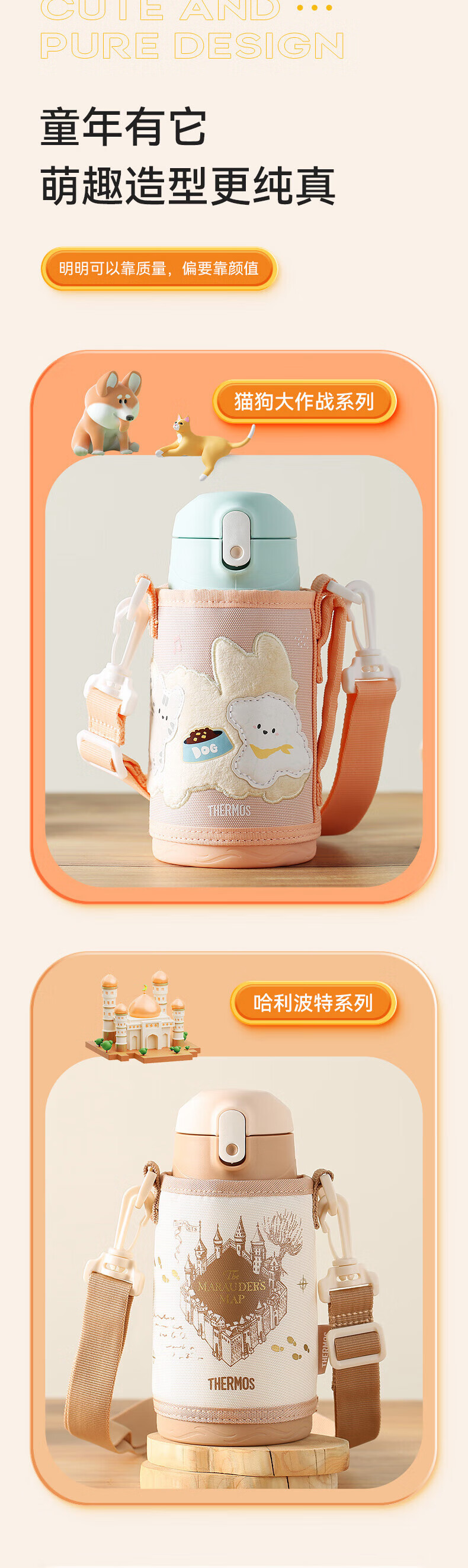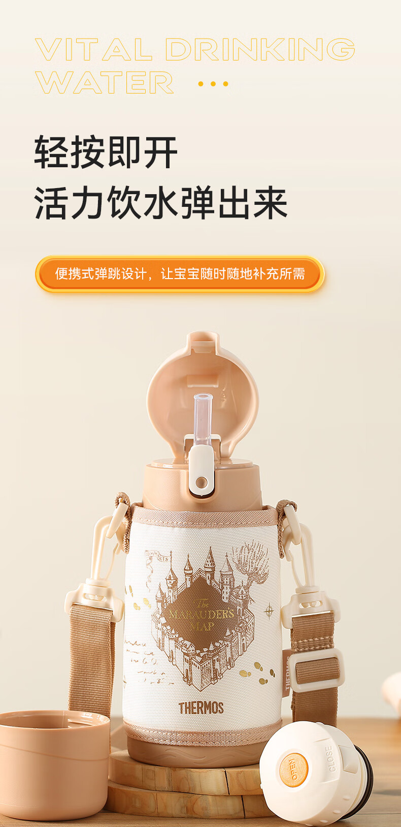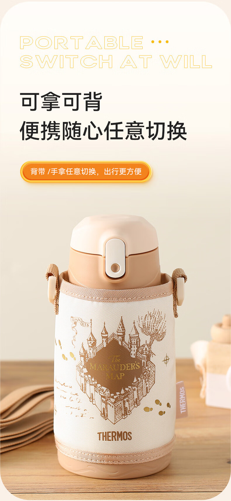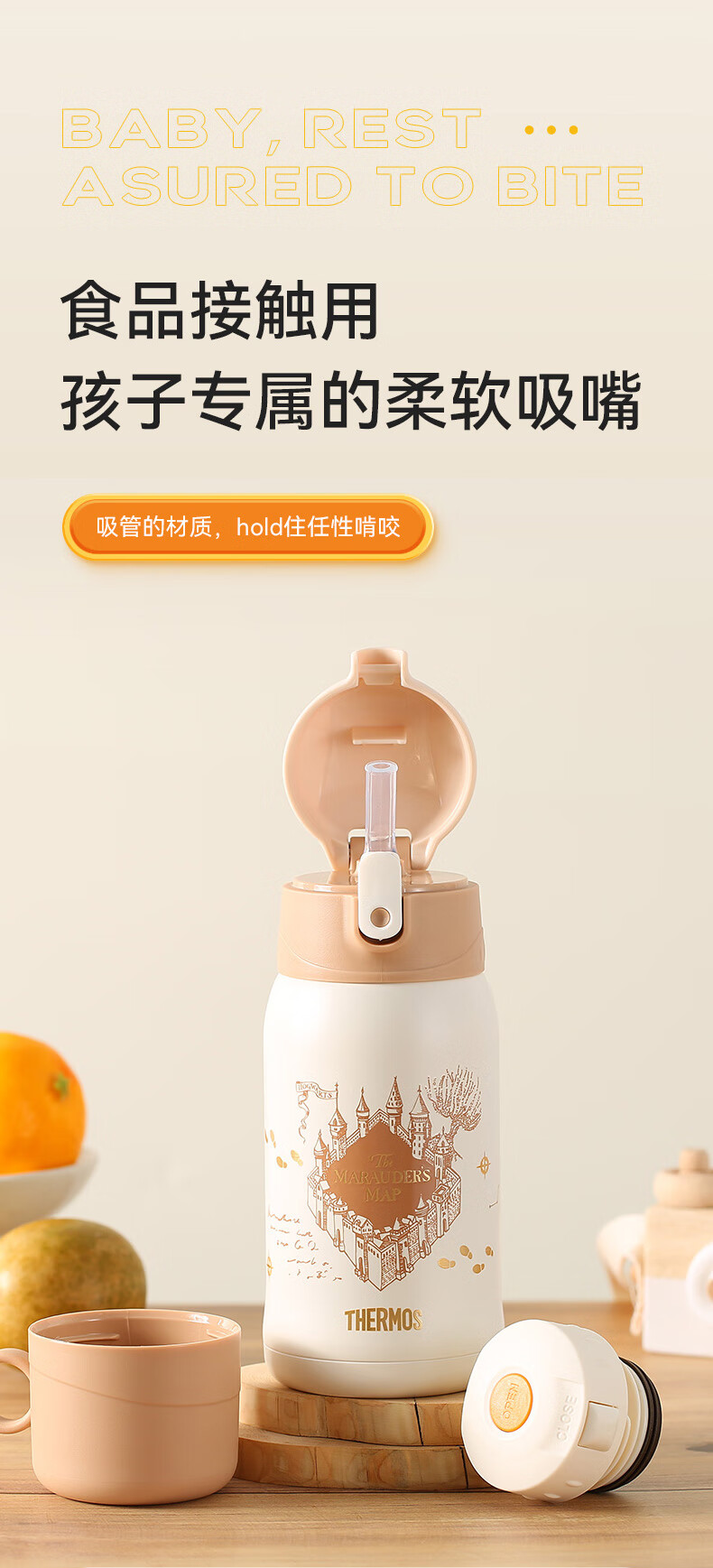 膳魔师保温杯儿童开学必备吸管杯小学生水杯哈利波特大容量水壶550ml棕