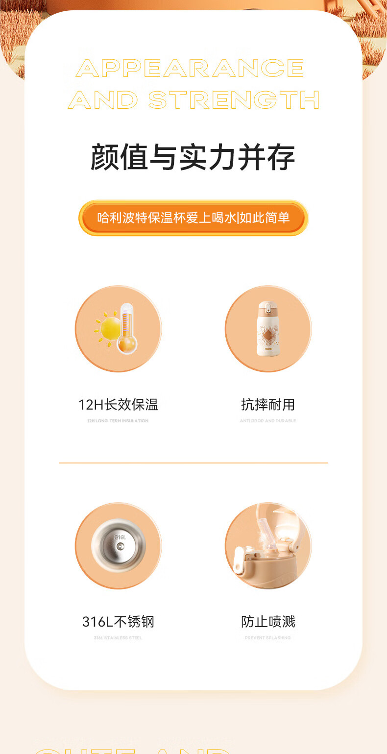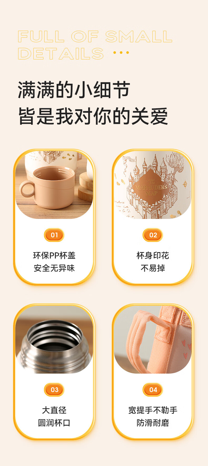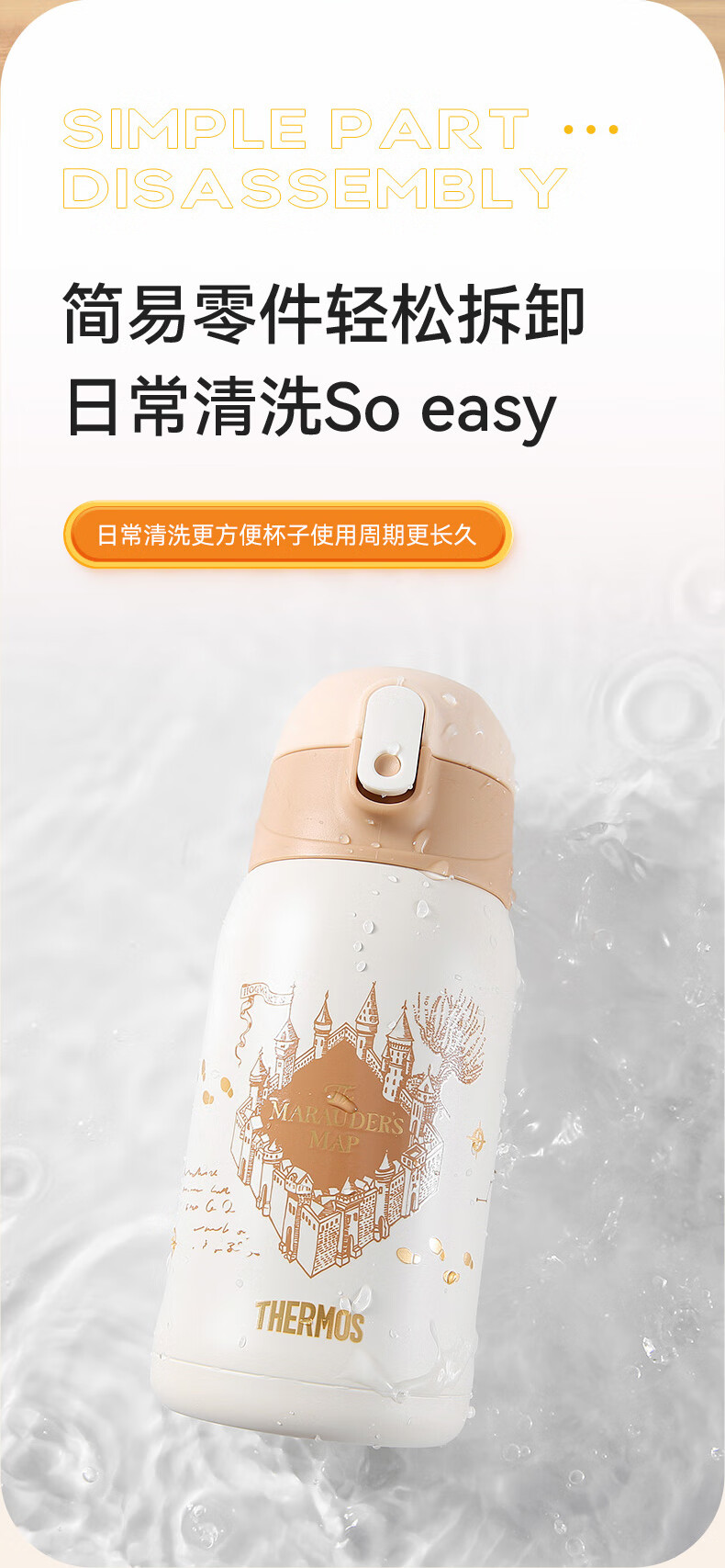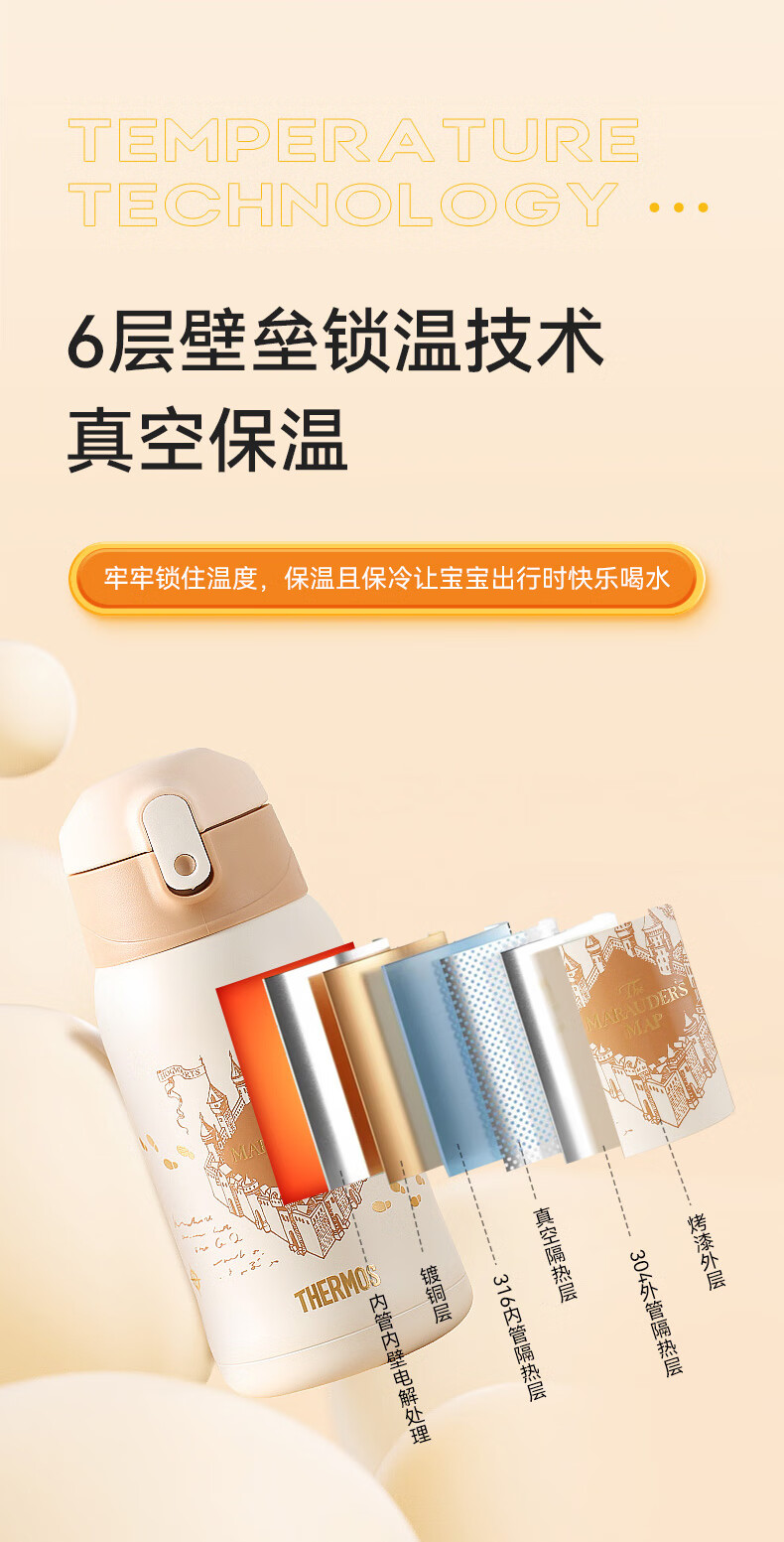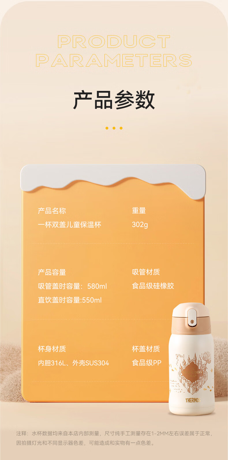 膳魔师保温杯儿童开学必备吸管杯小学生水杯哈利波特大容量水壶550ml棕