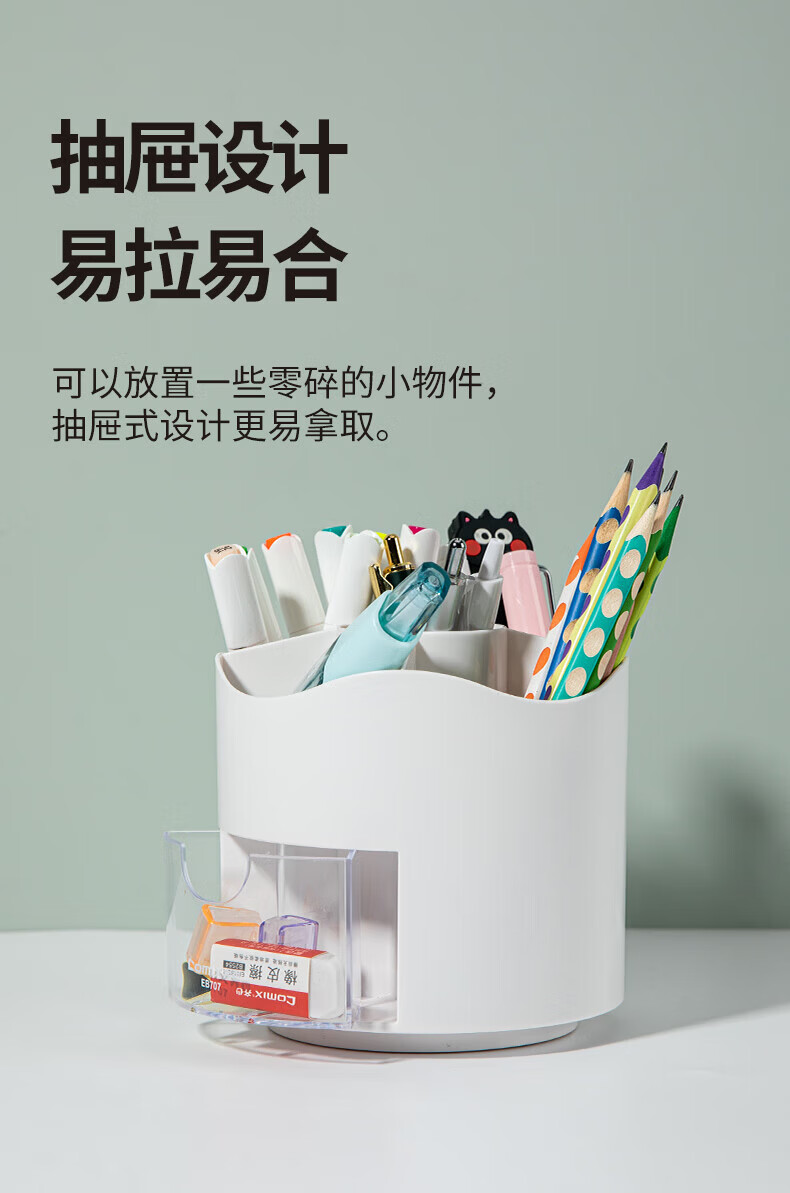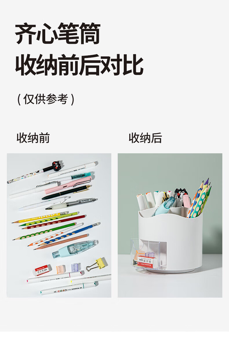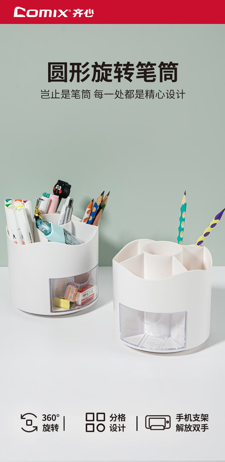 齐心(COMIX)笔筒多功能分区 大容量儿童学生桌面收纳盒/笔盒学习用品 开学礼物 【360°旋转】5格收纳 EB707白
