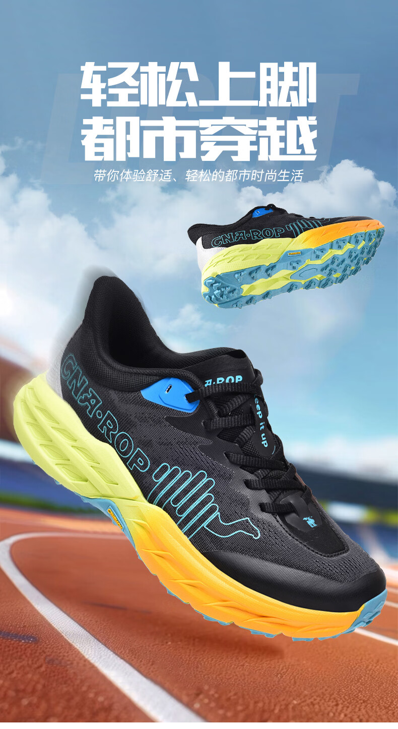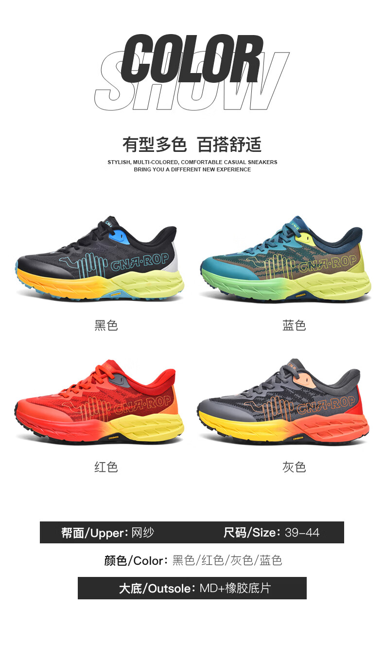 保罗骆驼运动鞋男夏季新款减震轻质跑步鞋男户外透气休闲鞋男低帮厚底鞋 黑色 38