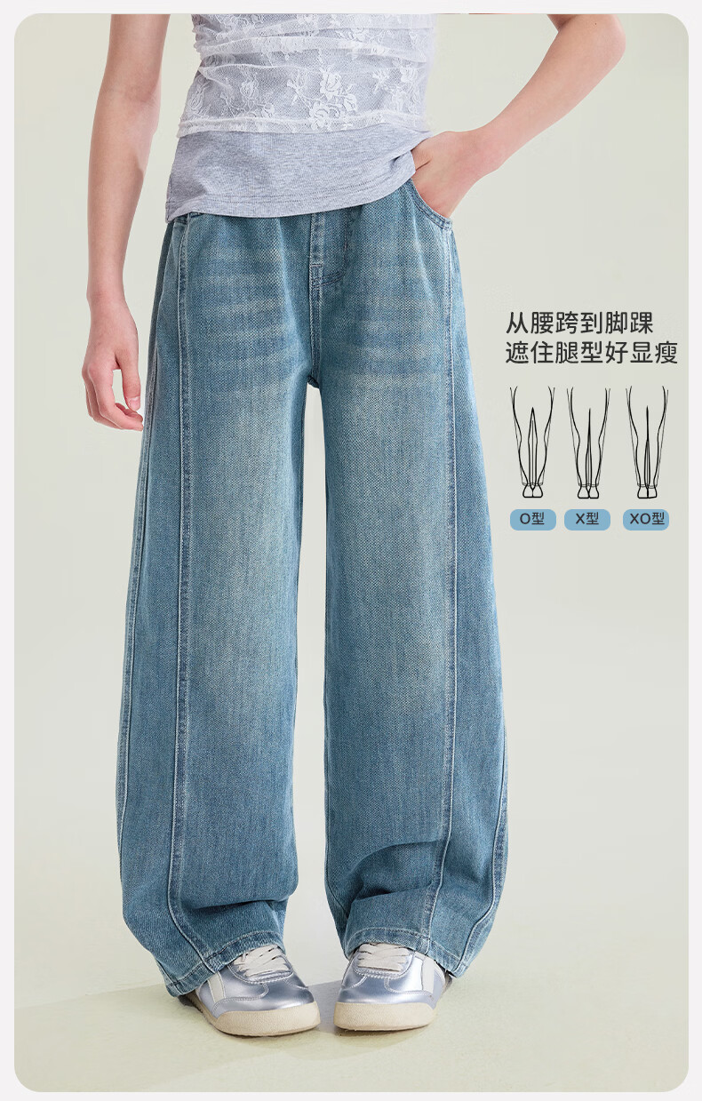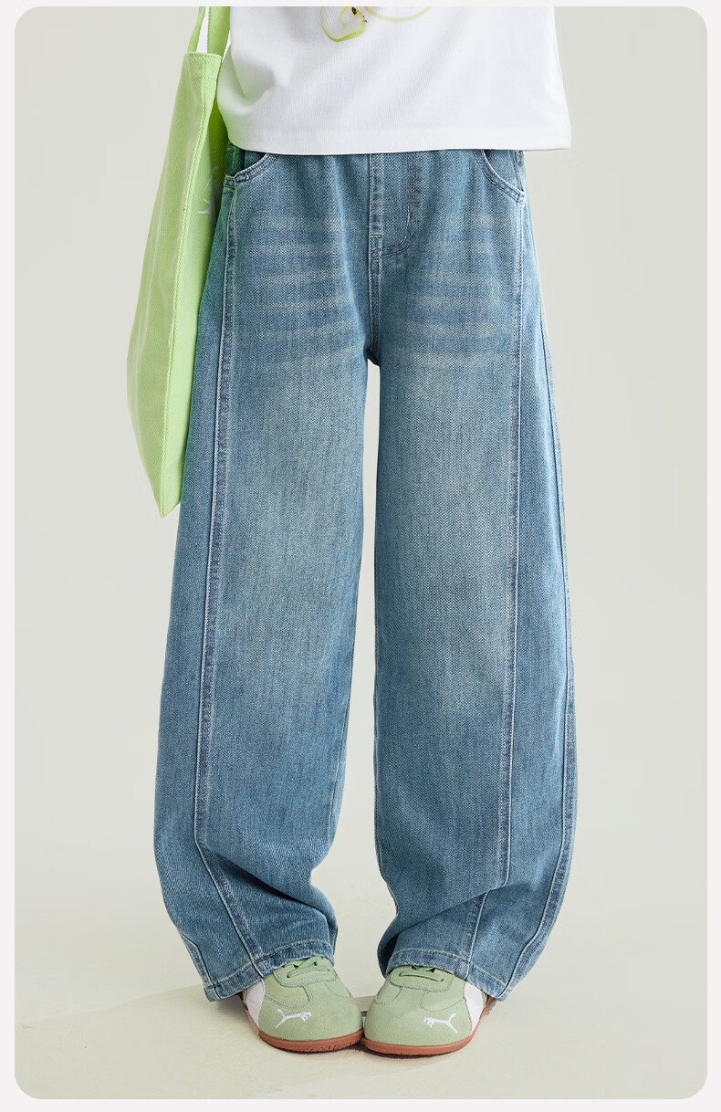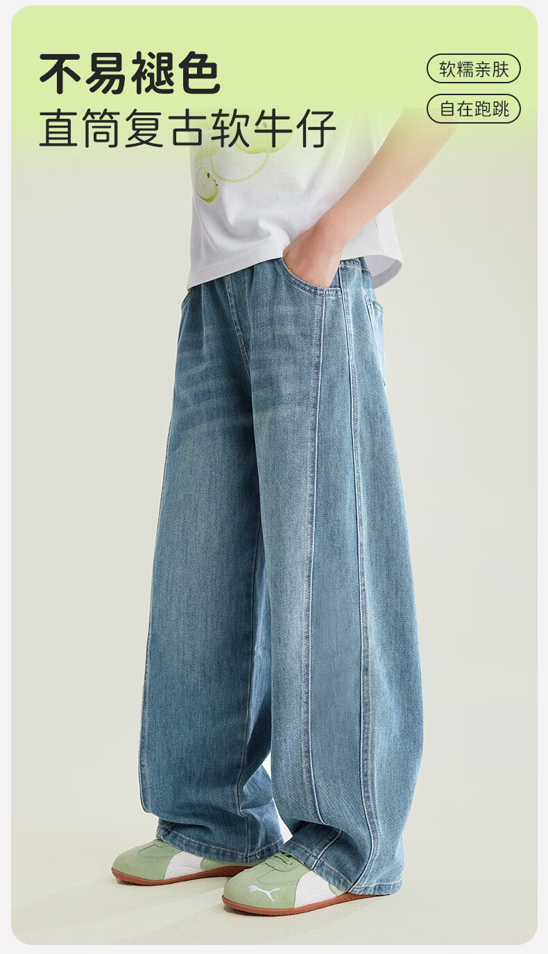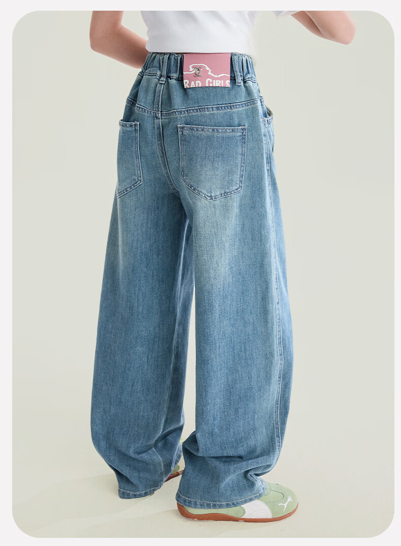 媛媛公主【高棉软牛仔】儿童裤子26春新款女童宽松直筒裤中大童休闲长裤 牛仔蓝 110