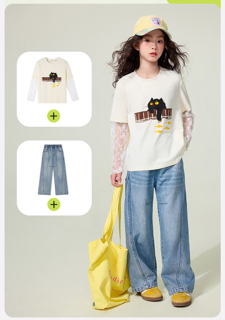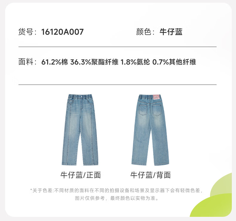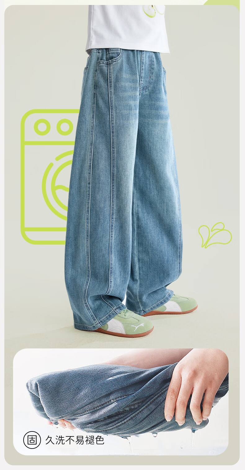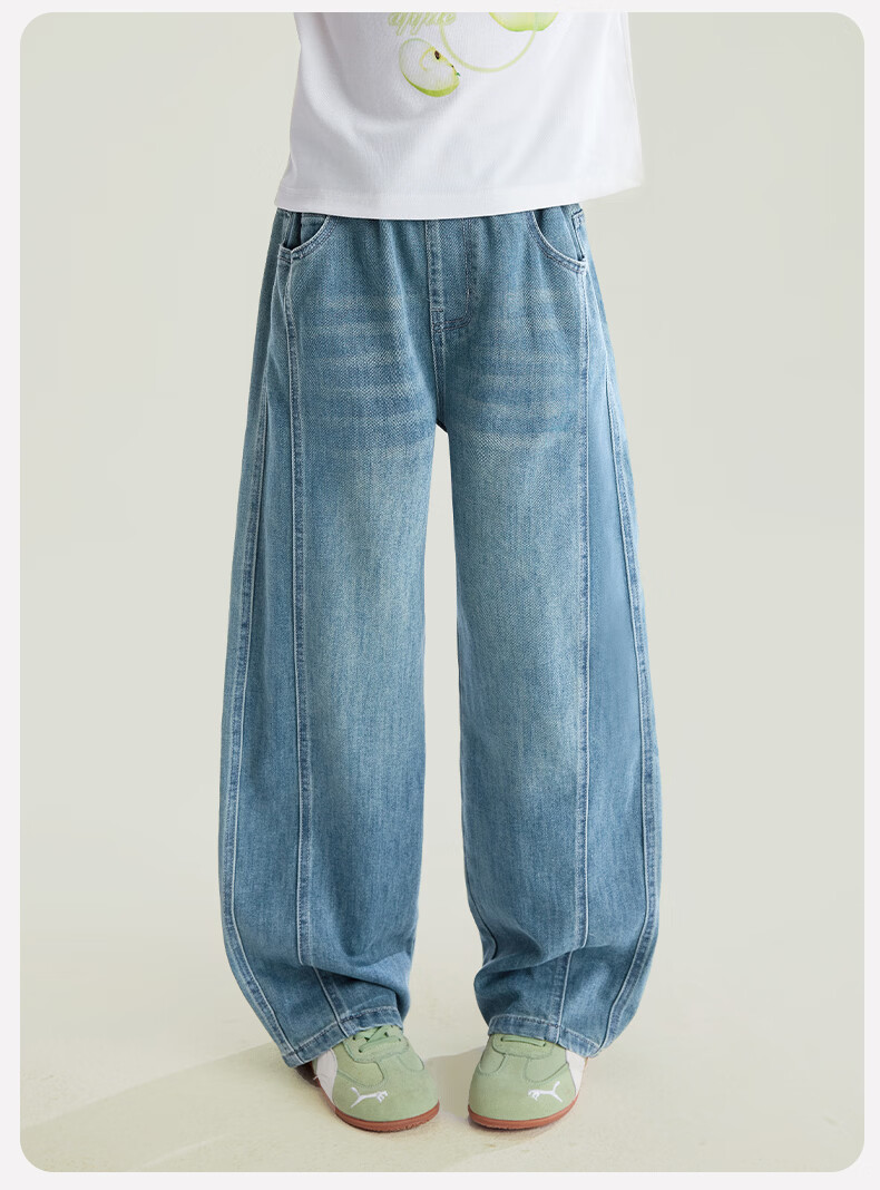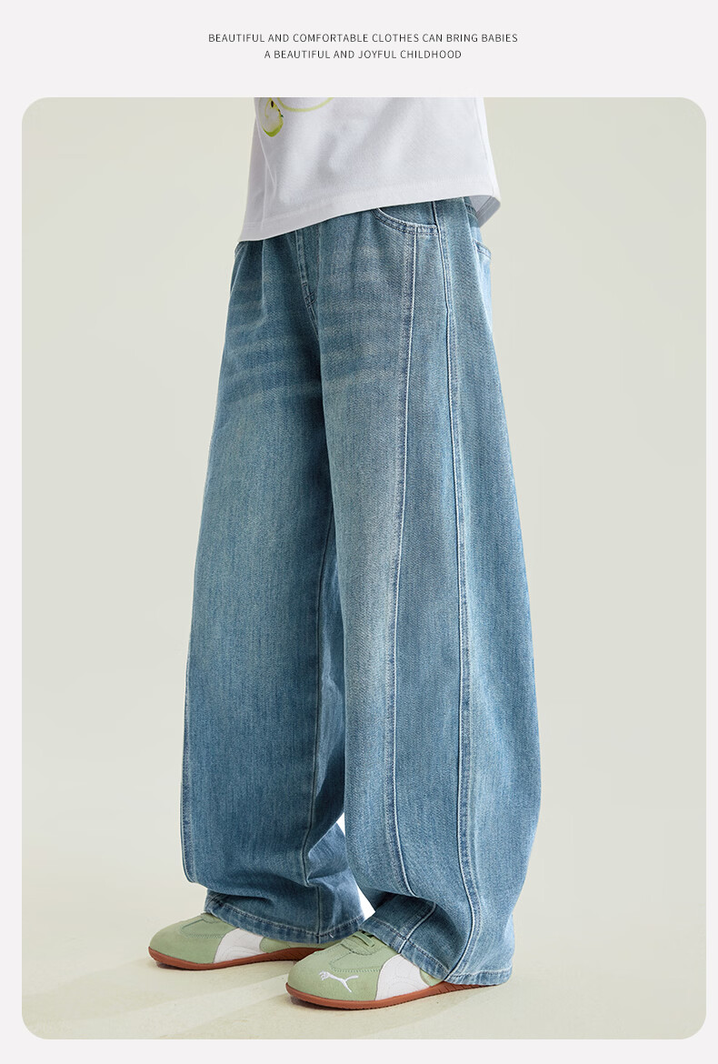 媛媛公主【高棉软牛仔】儿童裤子26春新款女童宽松直筒裤中大童休闲长裤 牛仔蓝 110