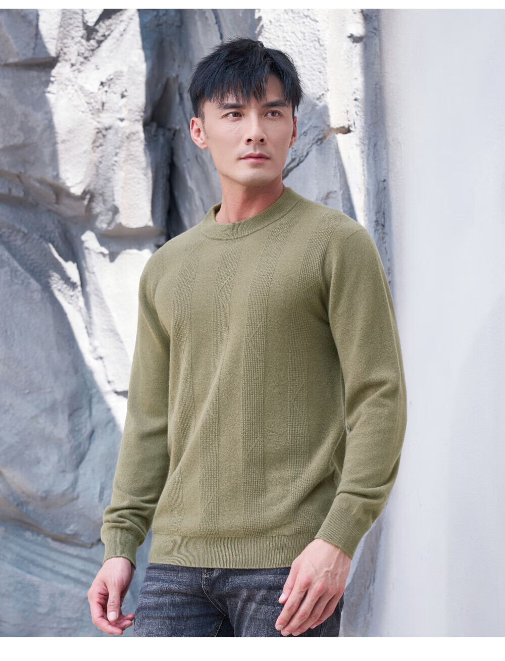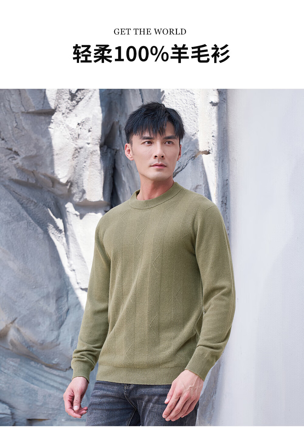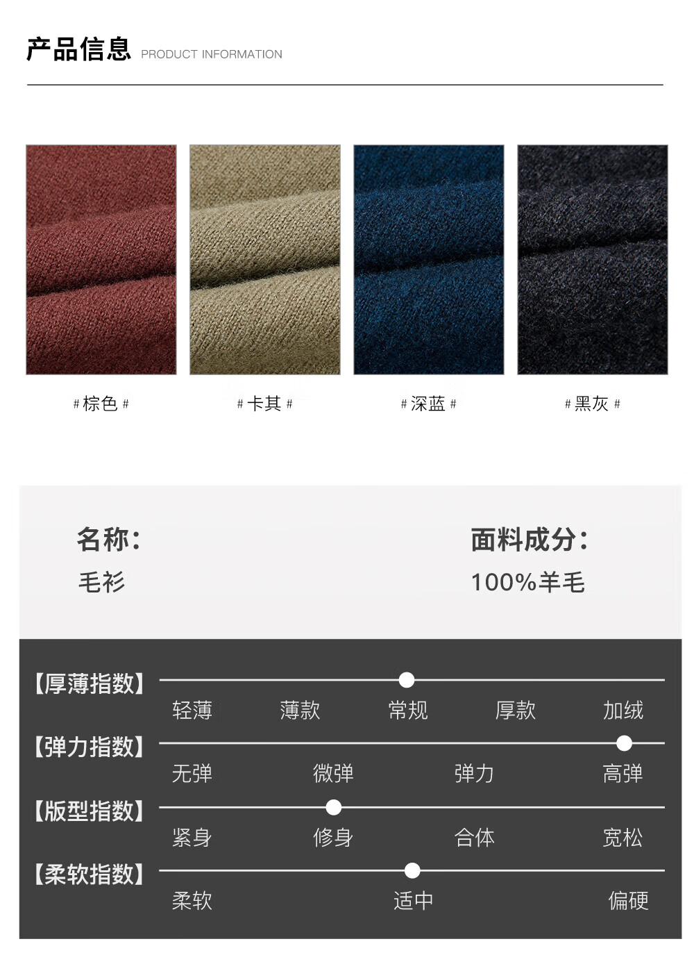才子(TRIES)【100%纯羊毛】男士羊毛衫秋冬半高领加厚毛衣保暖纯色打底针织衫 棕色 L 48 (170/88A)