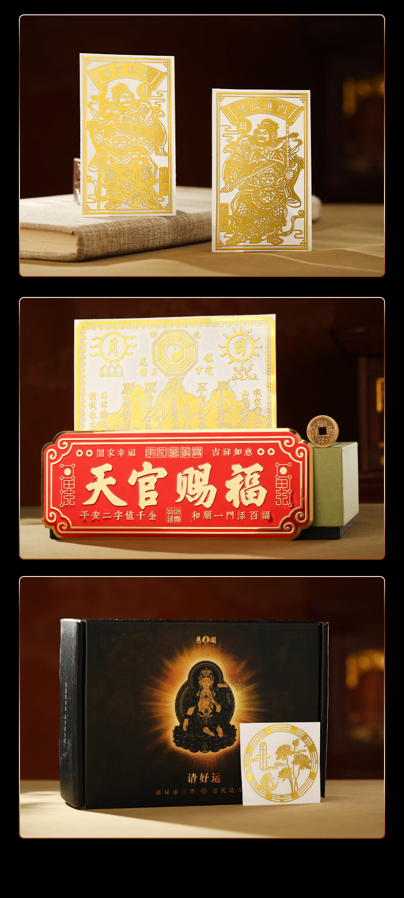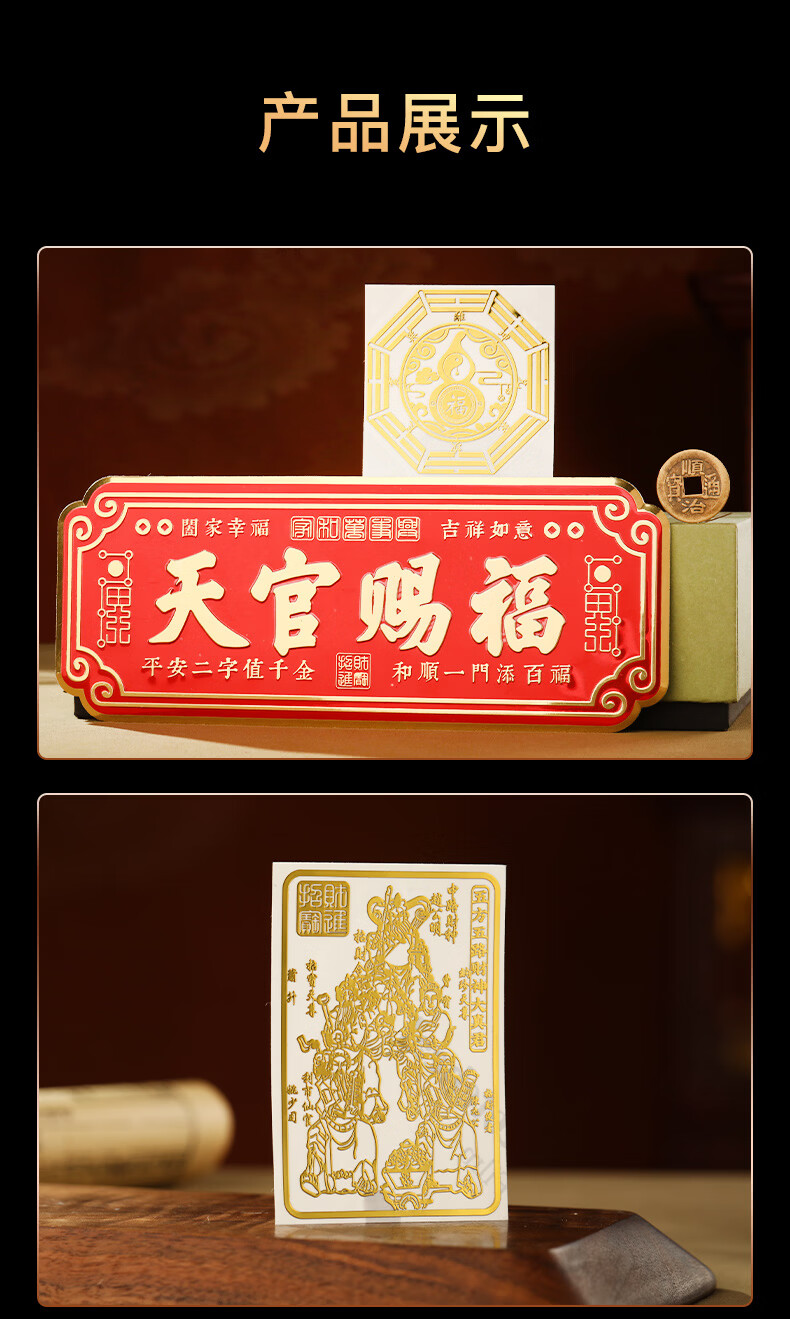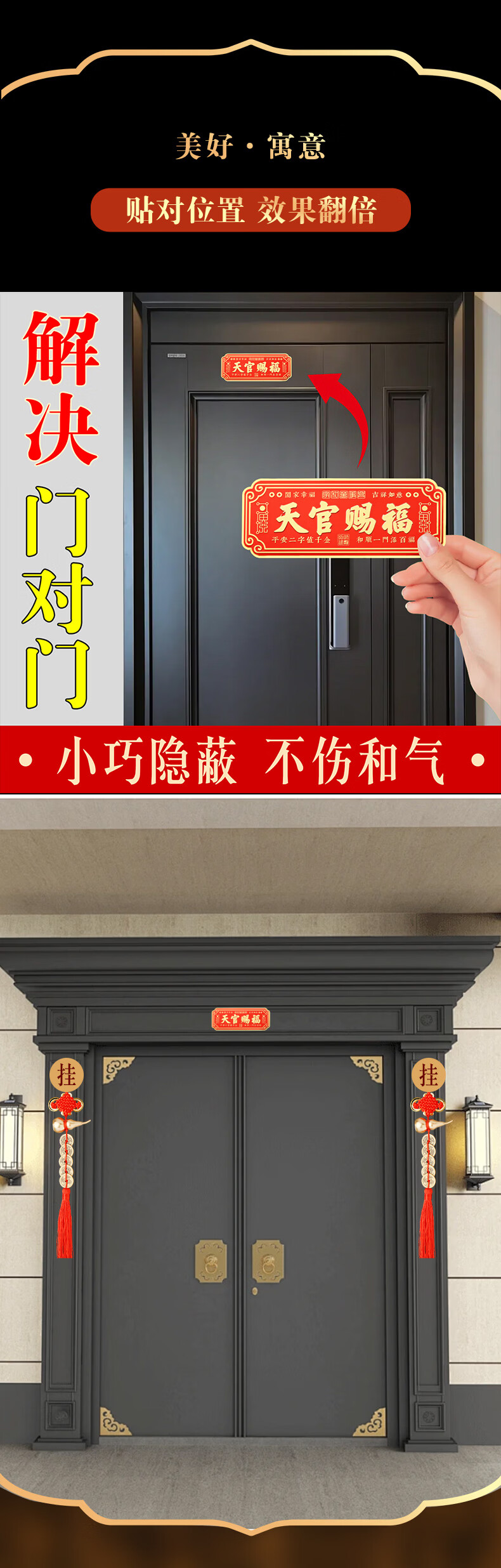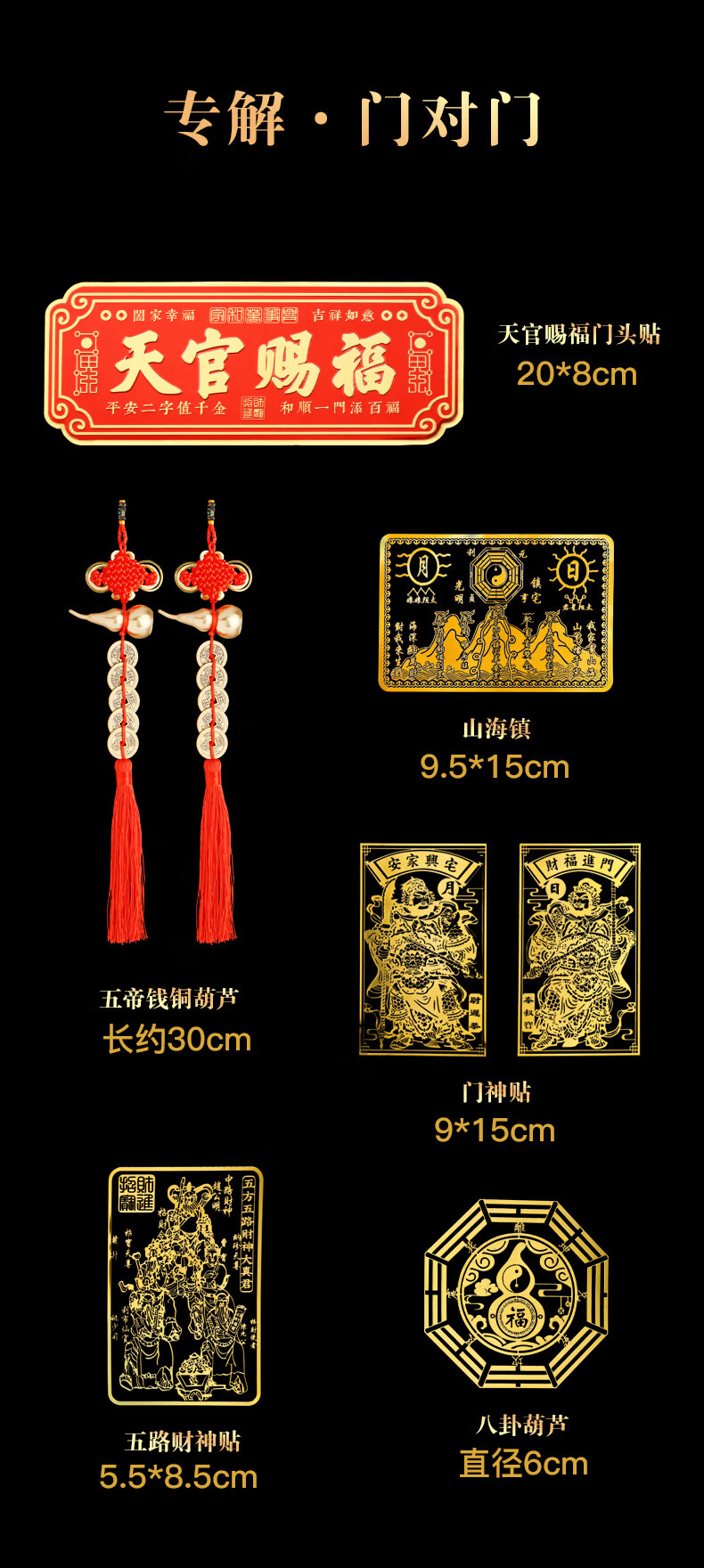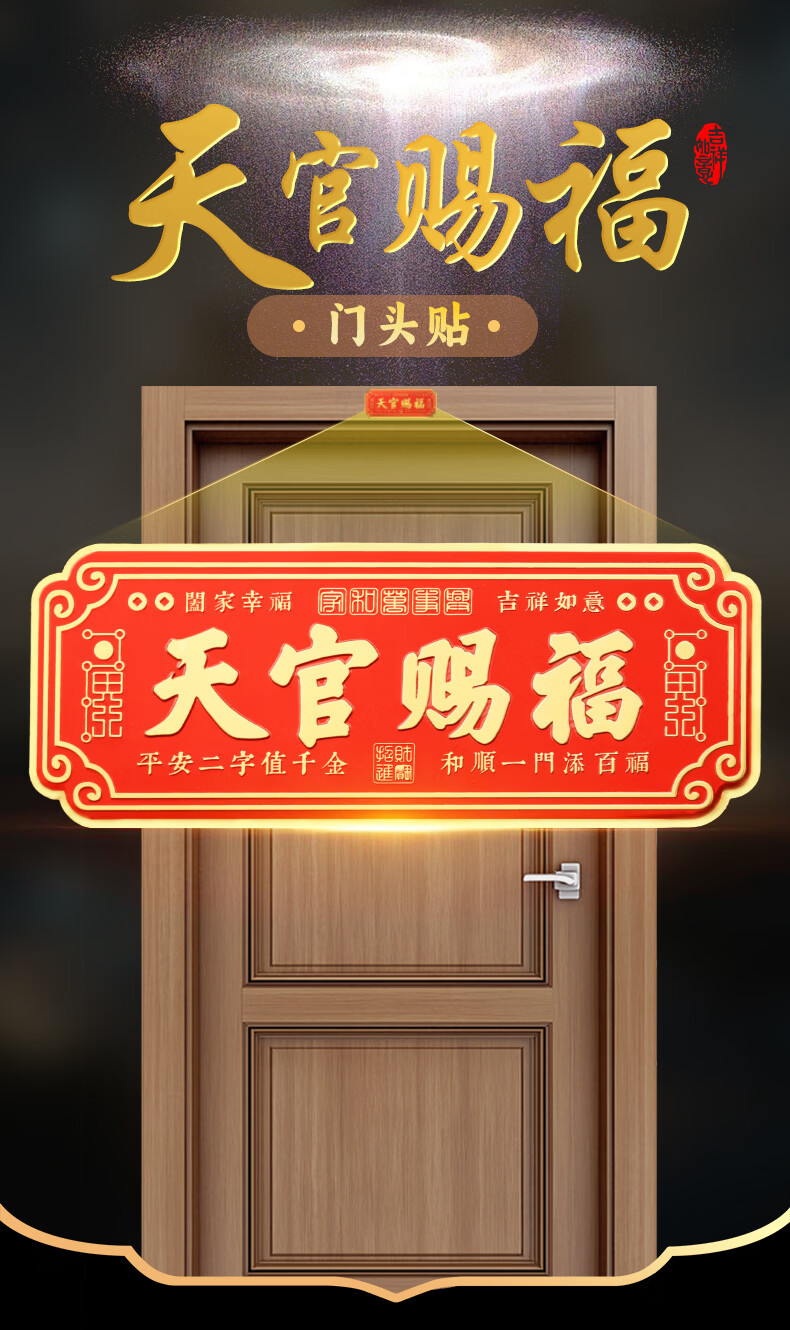 慈元阁天官赐福门贴山海镇卧室门入户大门宅葫芦五帝钱镇横联福贴带背贴 天官赐福门头贴