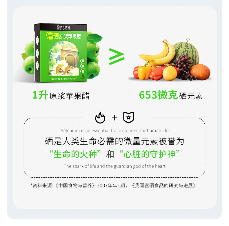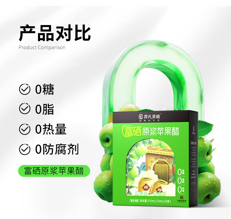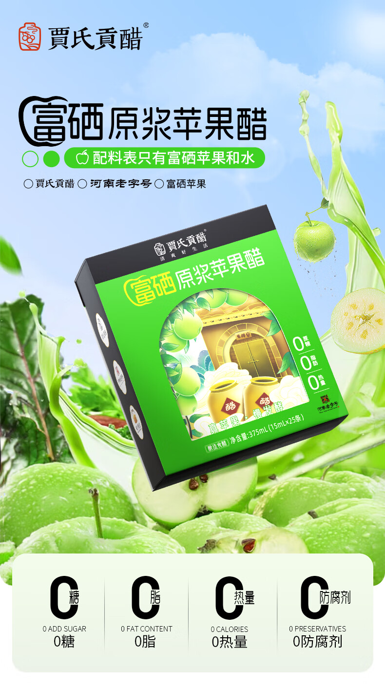 贾氏贡醋 富硒苹果醋原浆100条*15ml/4盒0糖0脂0添加防腐剂无纯东方酿造
