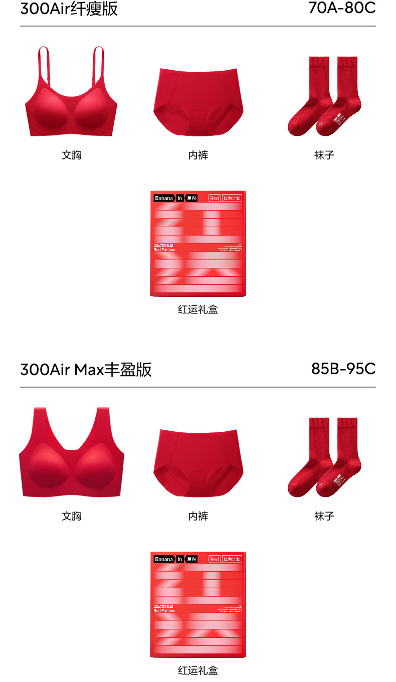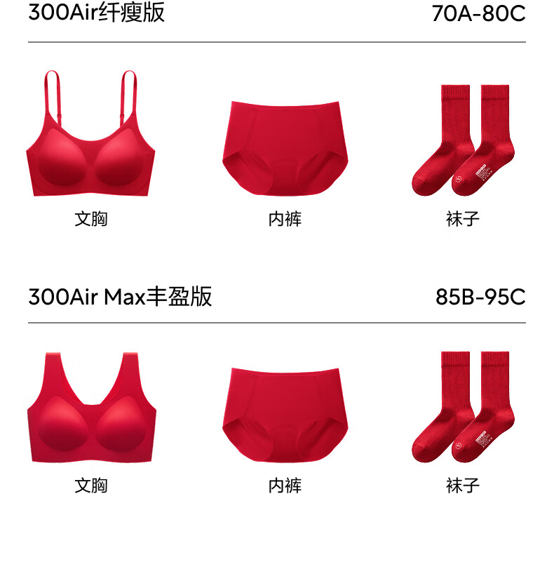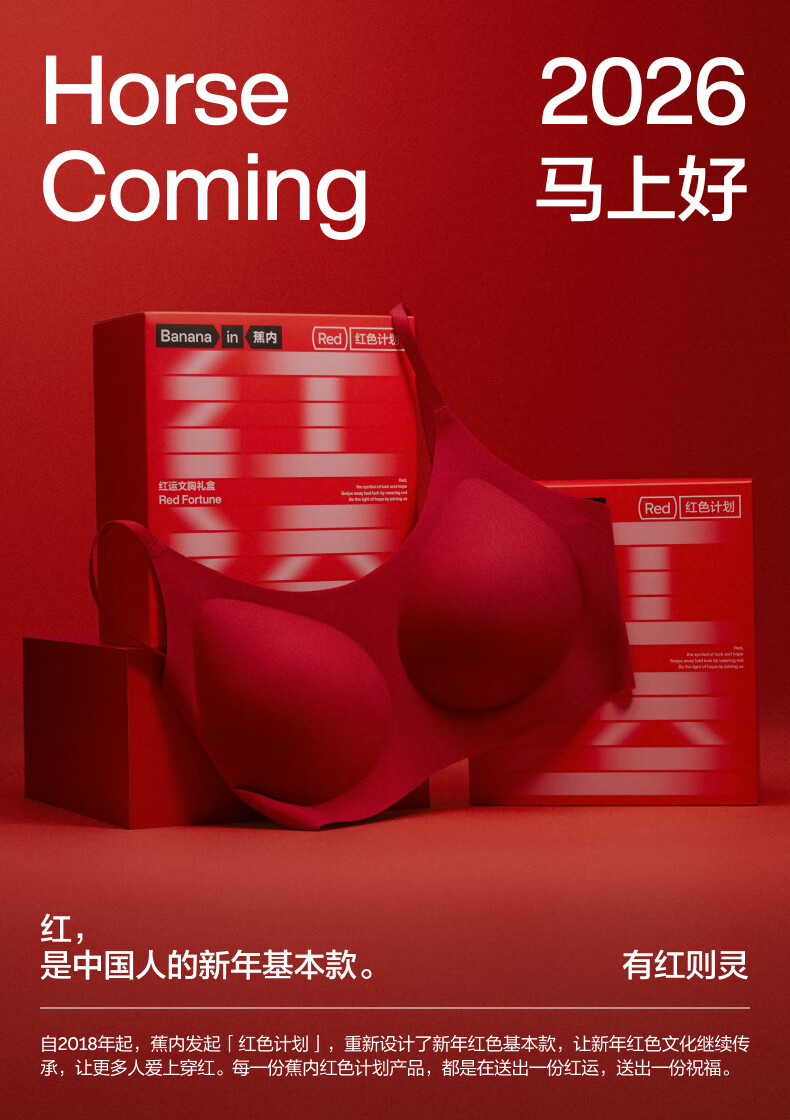 蕉内【刘浩存同款】红色计划3系无尺码女内衣裤本命马年文胸礼盒套装