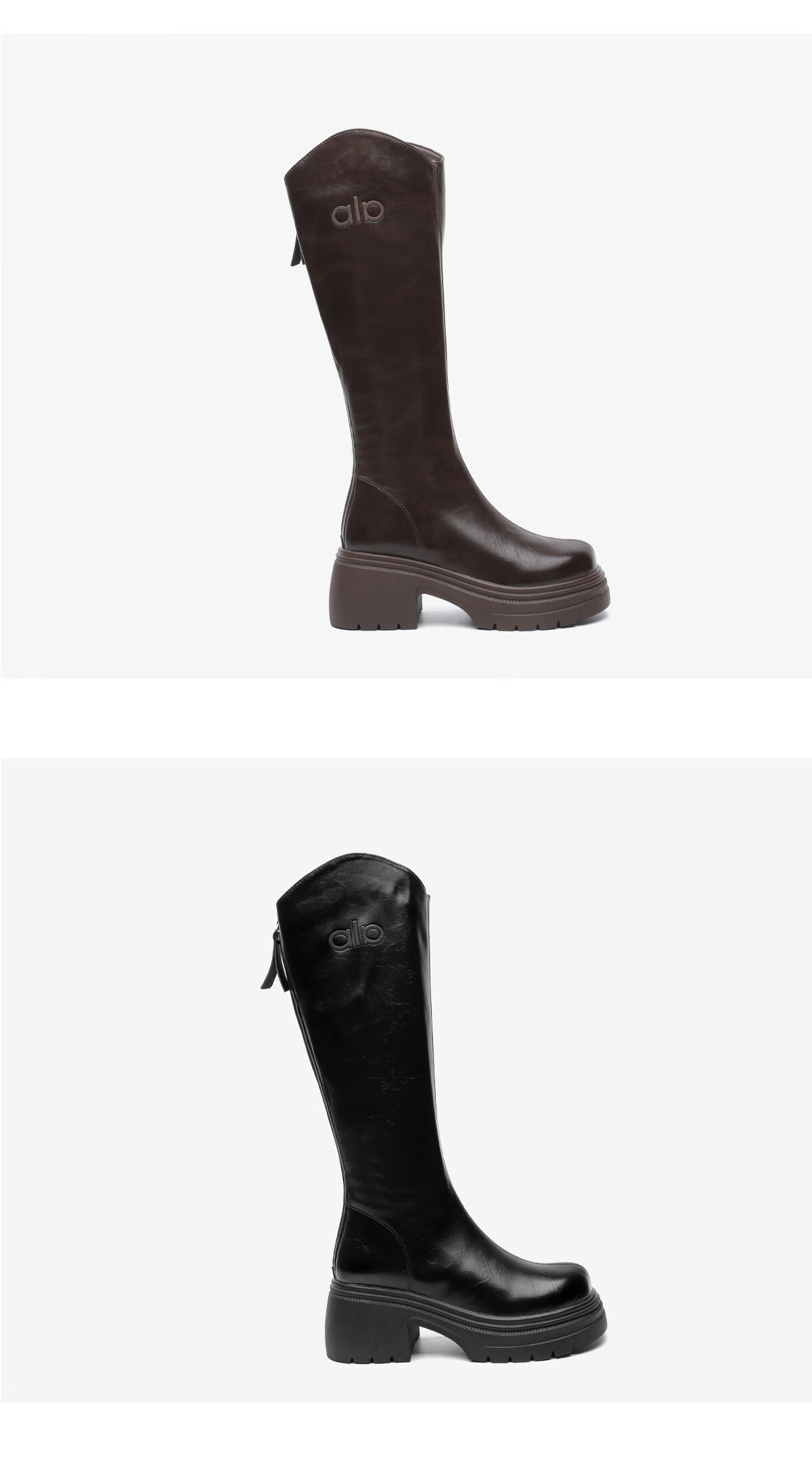 月芽儿骑士靴女2025冬季新款V口长筒靴加绒皮靴高筒长靴子 绒里黑色01T 38
