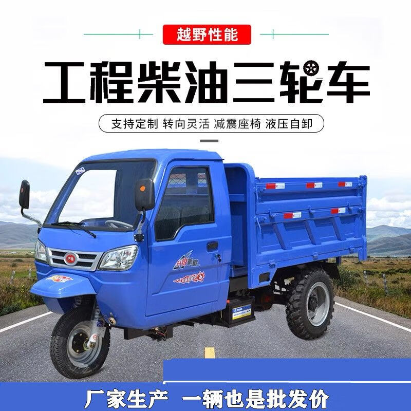 五征工程农用三轮车建筑工地柴油三马子五征时风柴油三蹦子爬坡载重 单缸18马力三轮车 、左边方向