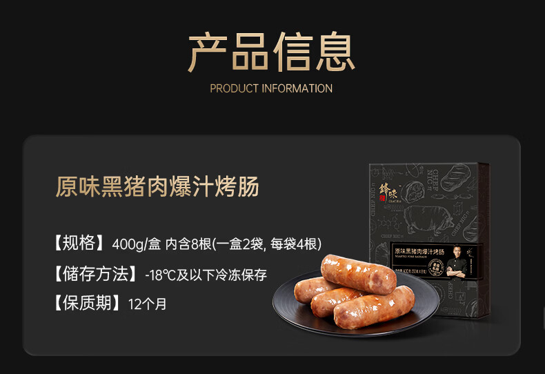 锋味派黑猪肉火山石烤肠原味400g*3盒香肠早餐火腿肠热狗脆皮肠烧烤食材