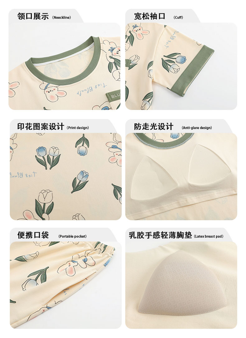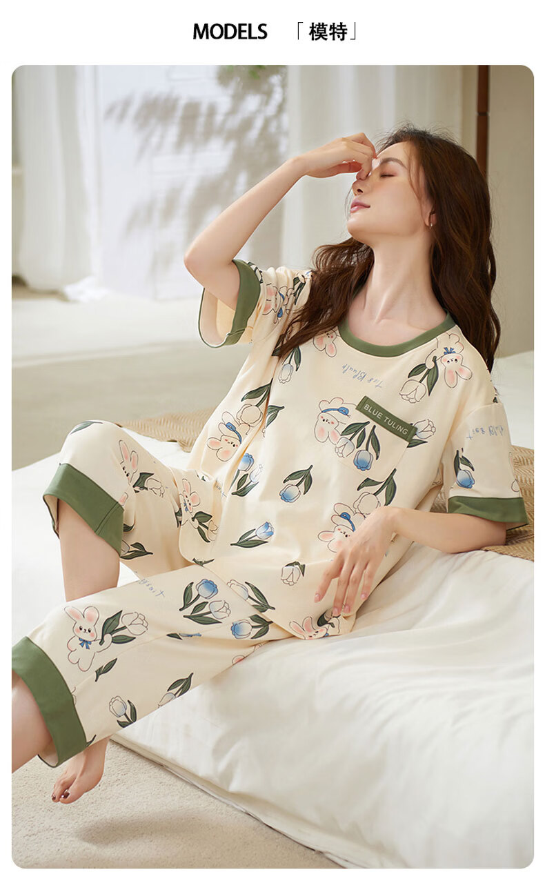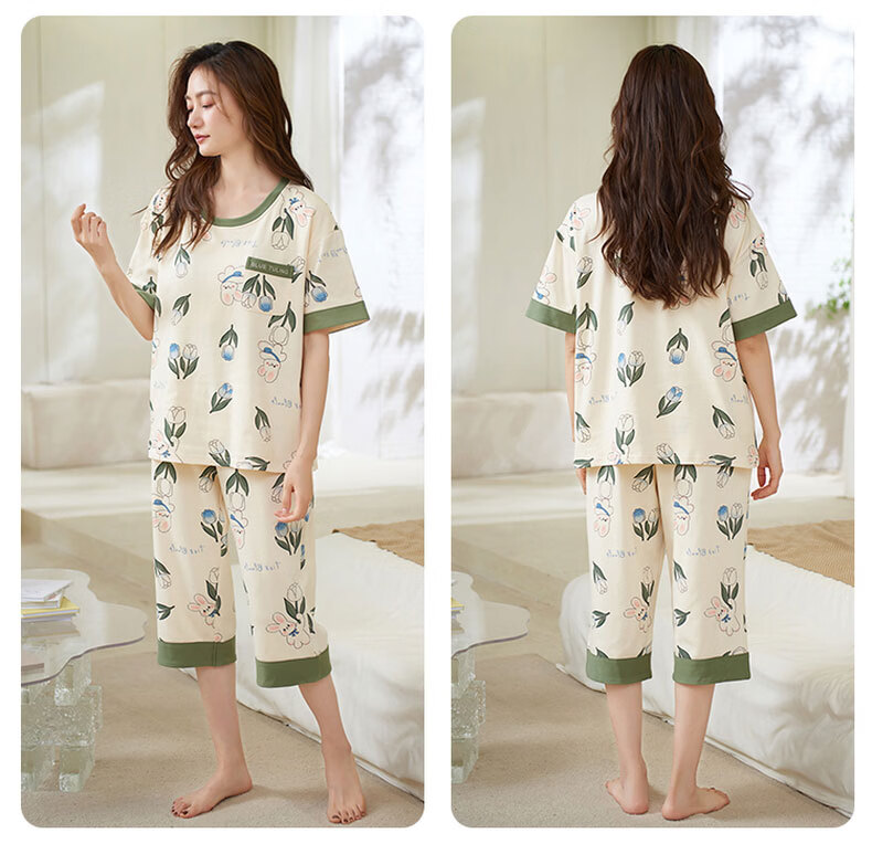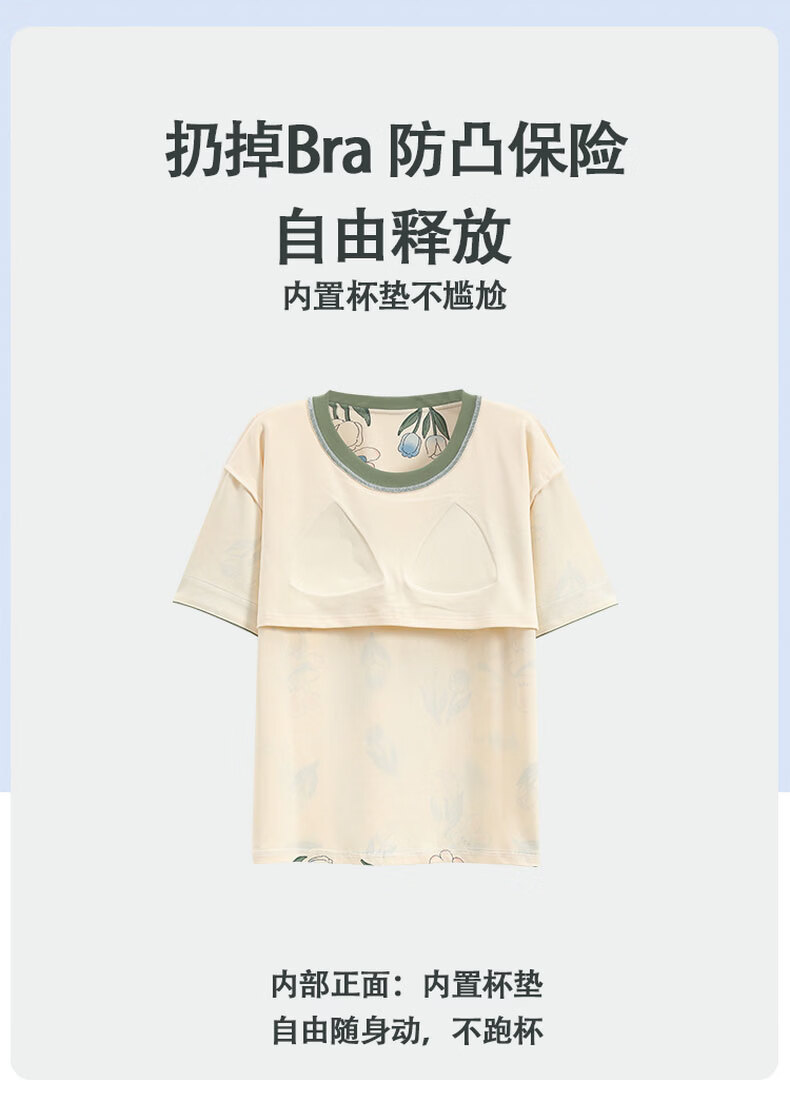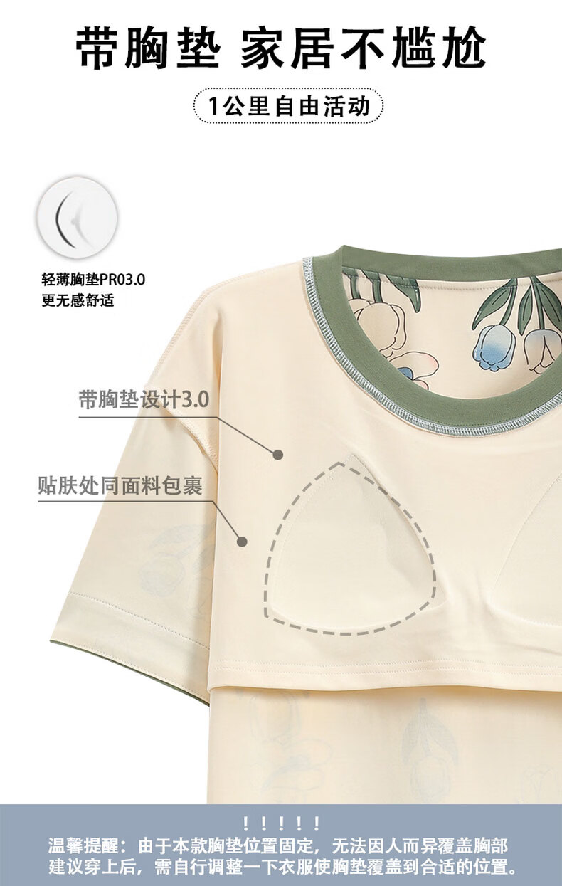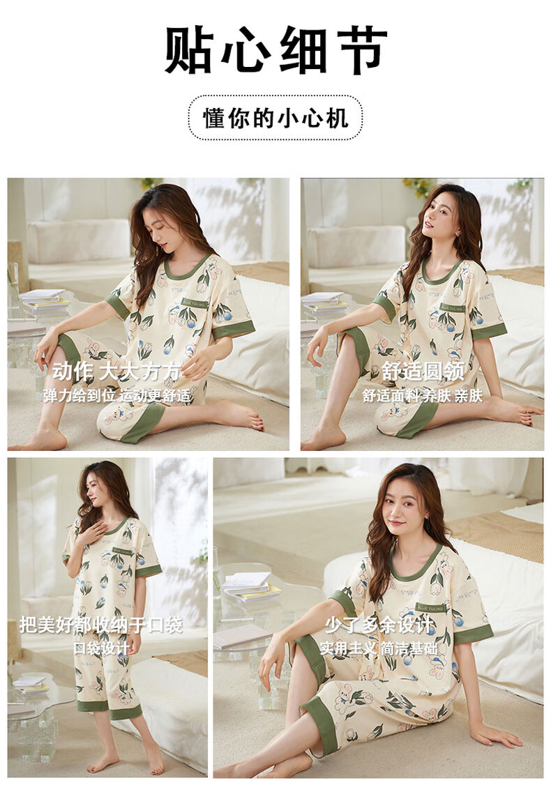 芬腾可安(FENTENGCARE)自带胸垫睡衣女士夏天短袖七分裤套装两件套休闲薄款可外穿家居服 M41042 L