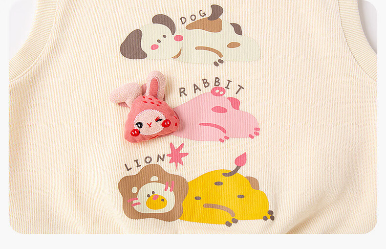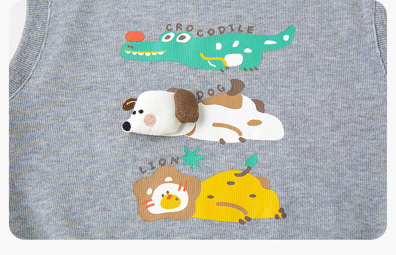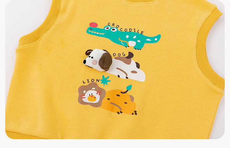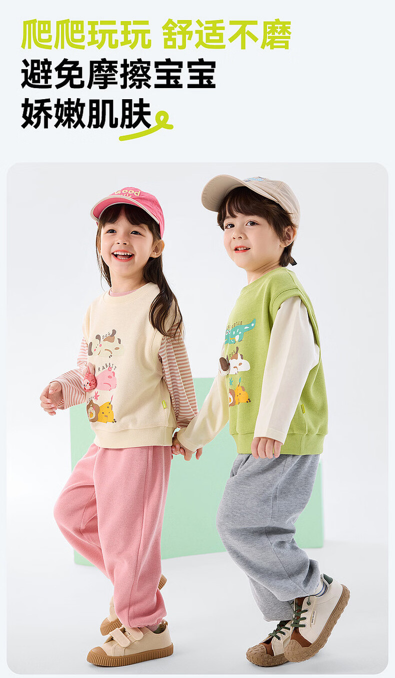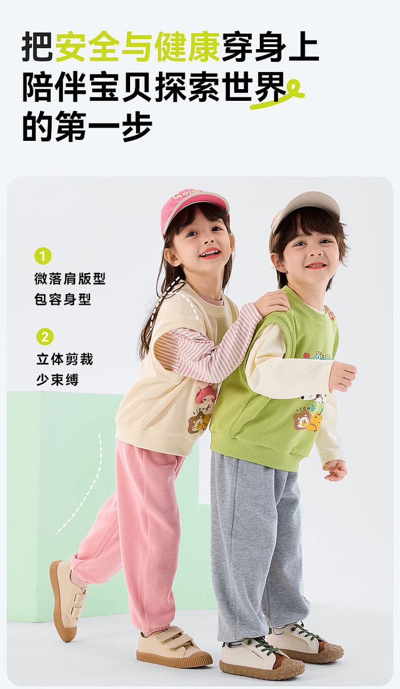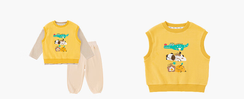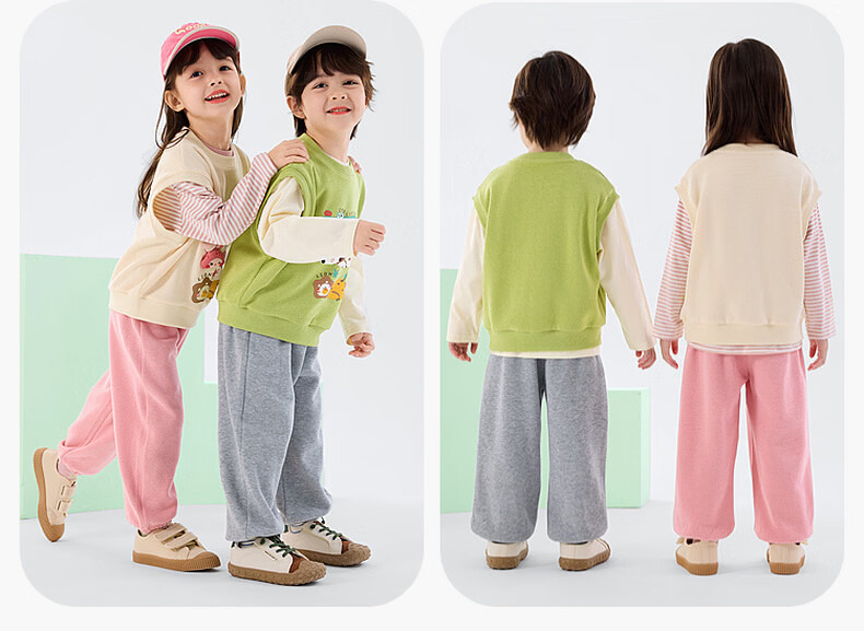 嘟嘟家儿童春季长袖套装男童百搭三件套春装女童透气打底衫休闲卡通马甲 牛油果绿 100