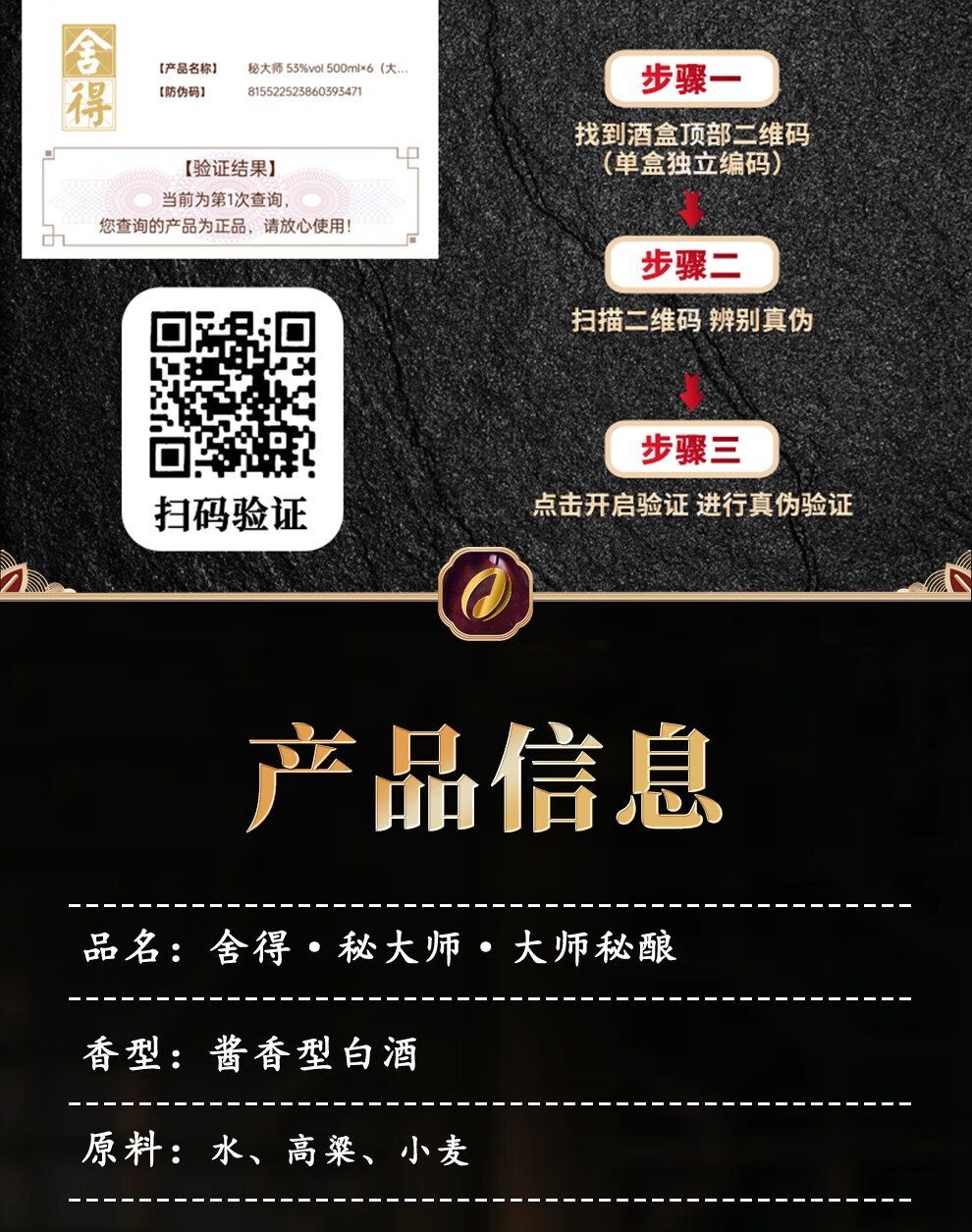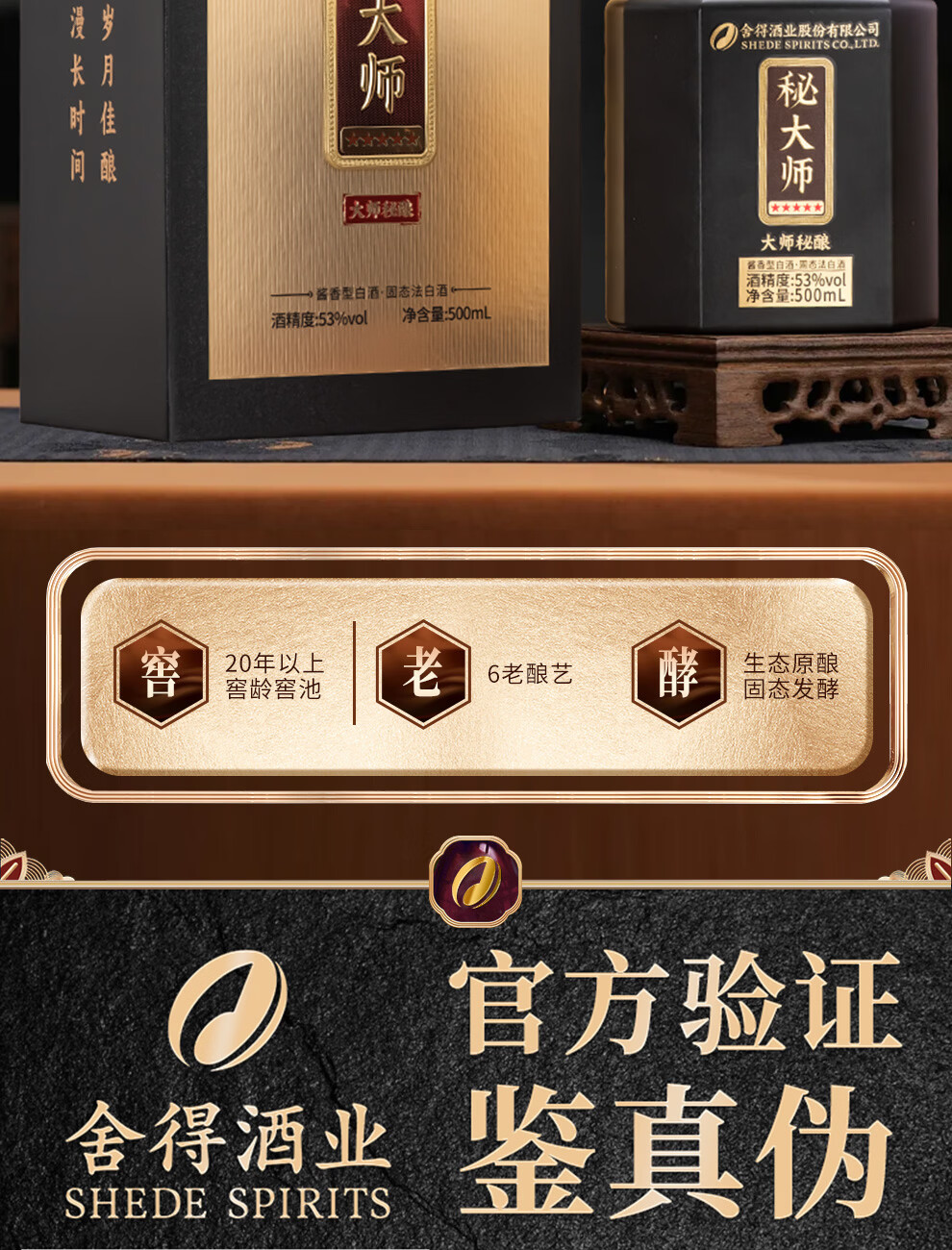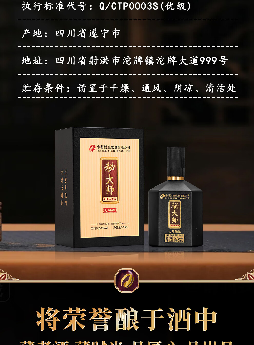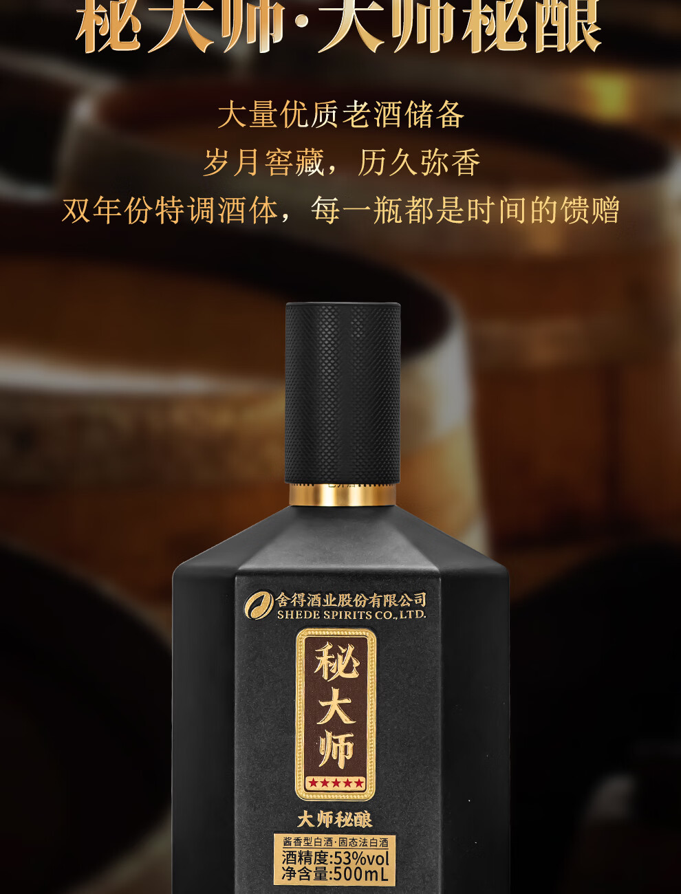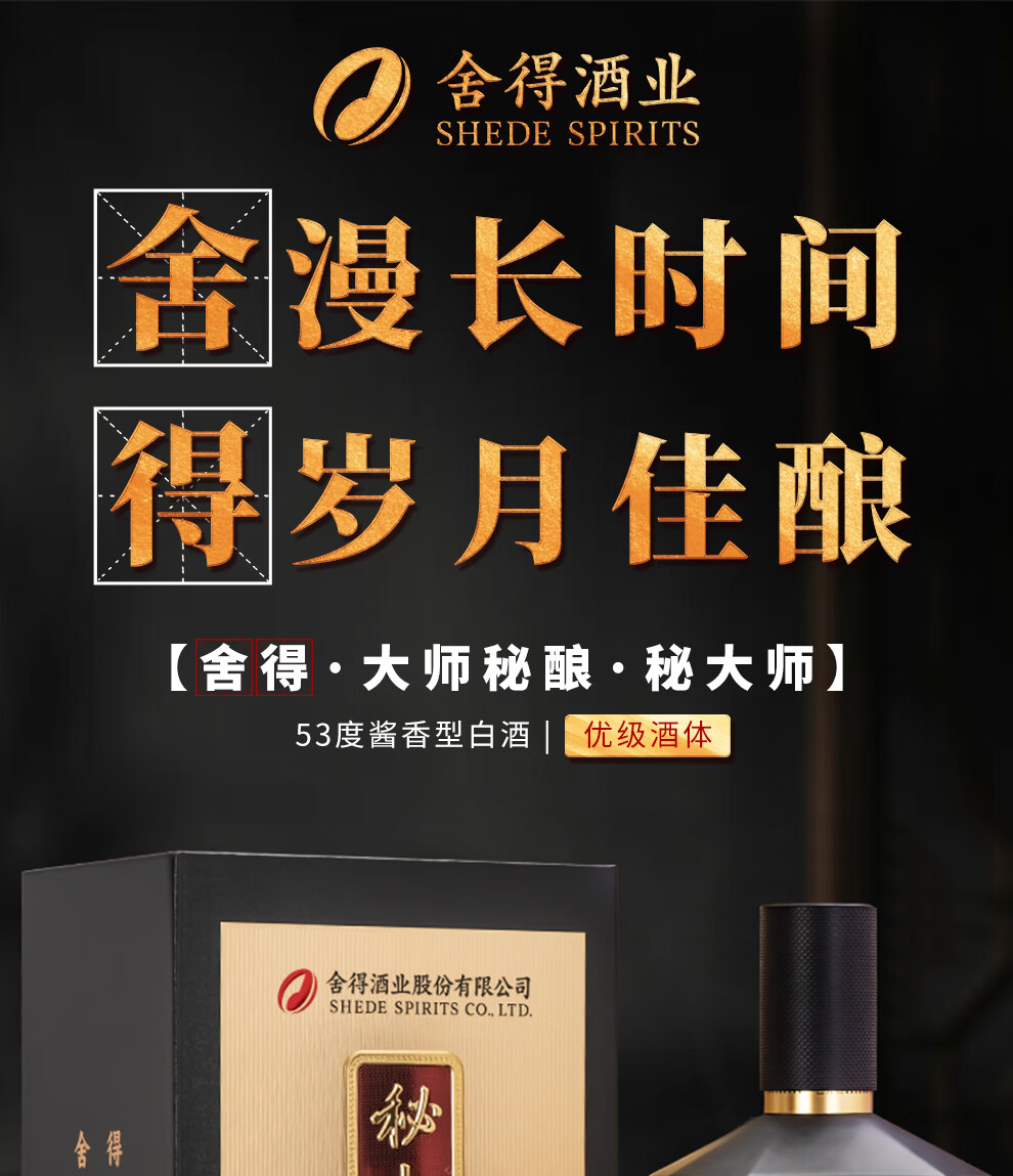 舍得股份 秘大师 大师秘酿 纯粮酿造大师勾调 高端酱香型白酒商务宴请 53%vol 500mL 1瓶 满2瓶赠礼袋