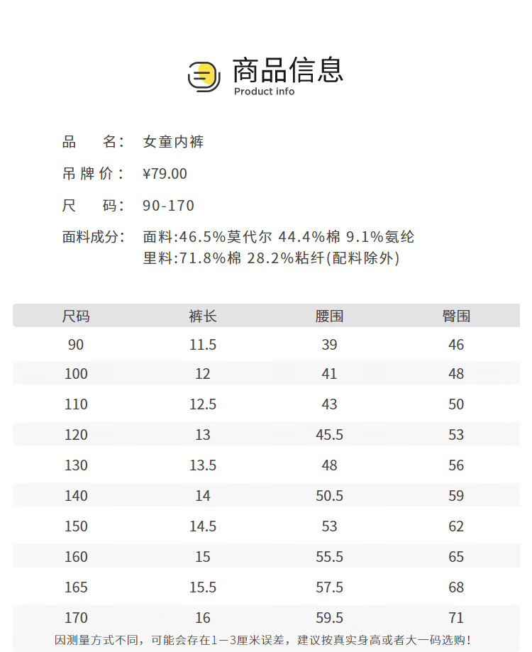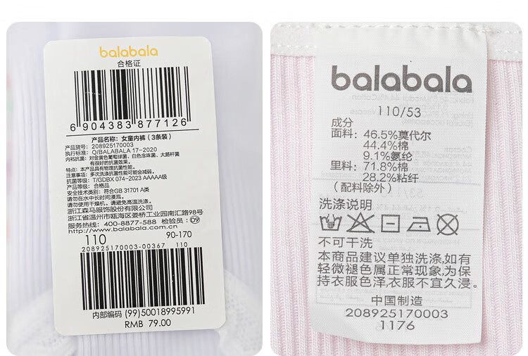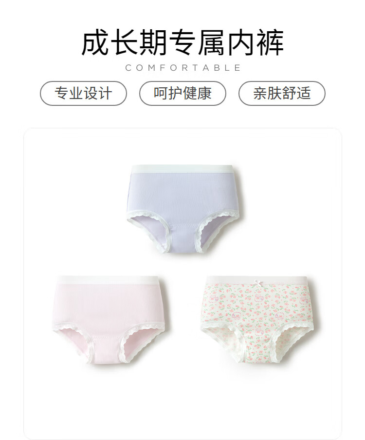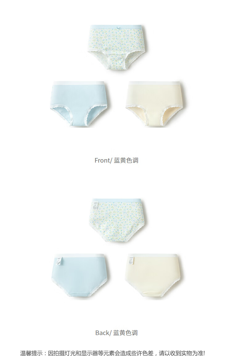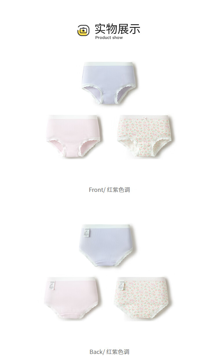 巴拉巴拉女童内裤棉a类儿童三角短裤子亲肤中大童小童三条装208925170003