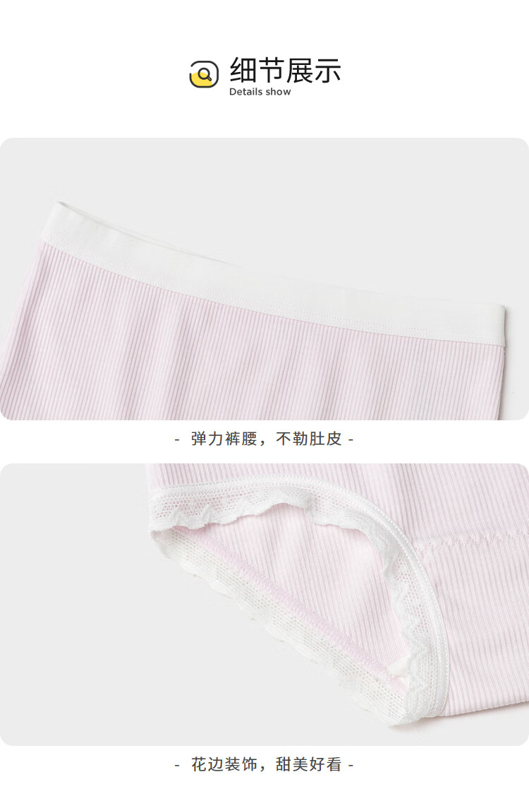 caramella纯棉内裤女透气三角裤甜美清新女士短裤内裤 红色蕾丝卡通款混色 3条 均码 (适合85-120斤)