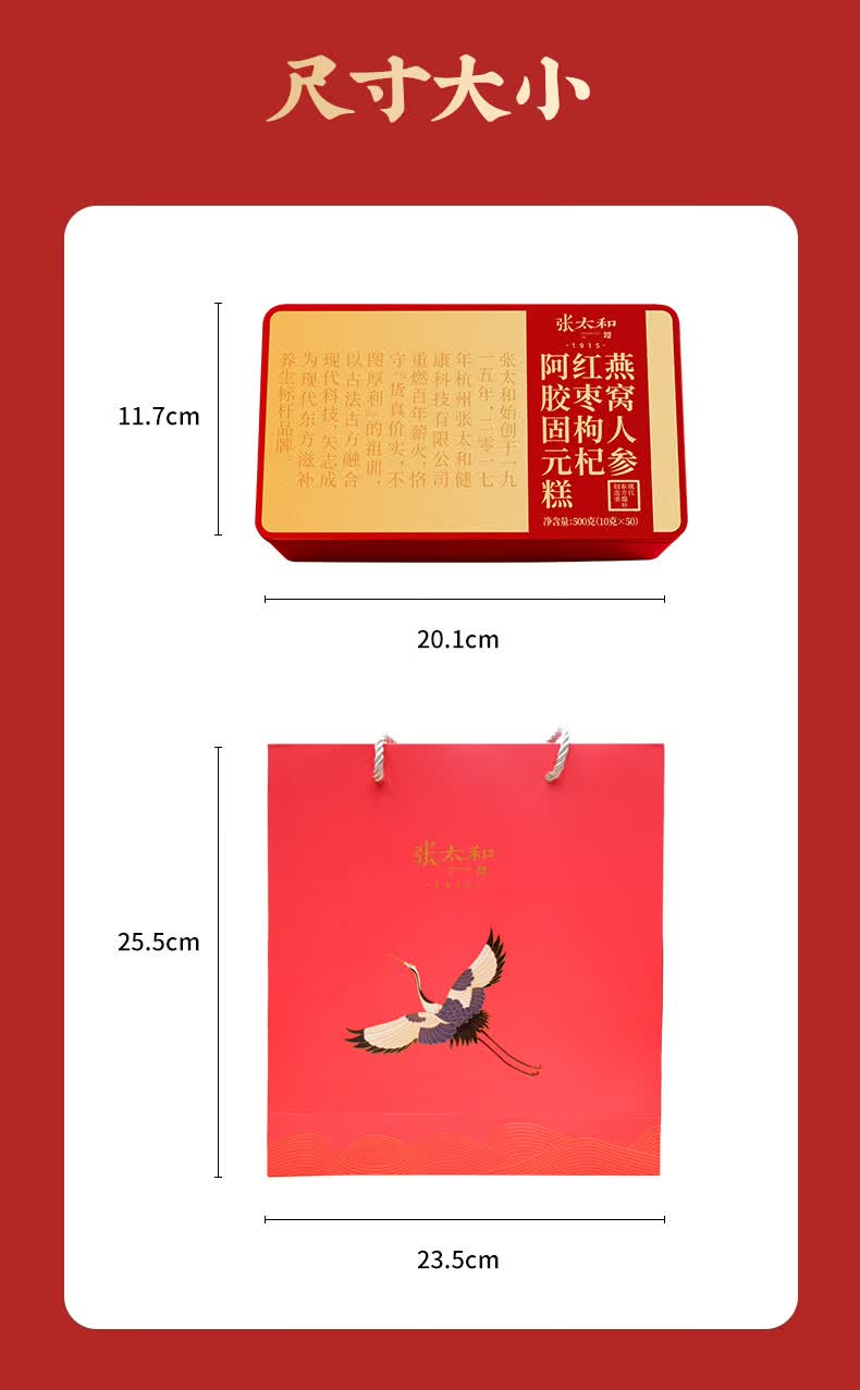张太和燕窝人参红枣枸杞阿胶固元糕 滋补年货 礼物 送父母 燕窝人参红枣枸杞阿胶固元糕 500g*2盒 送礼袋1个