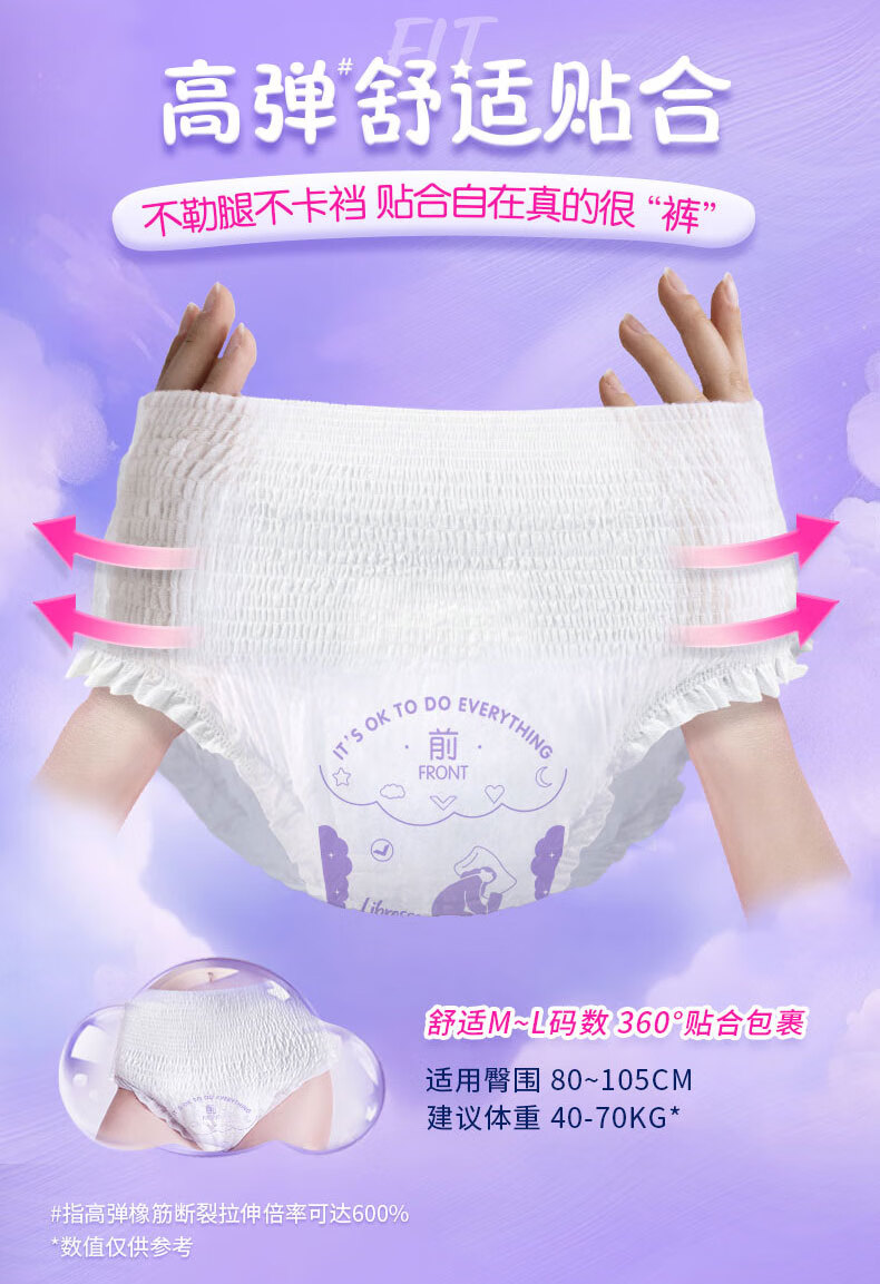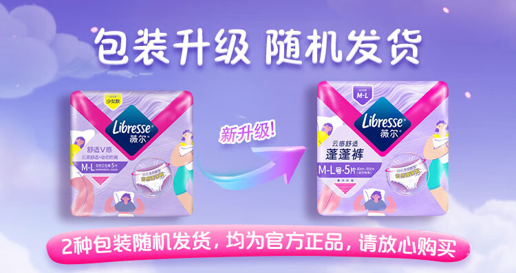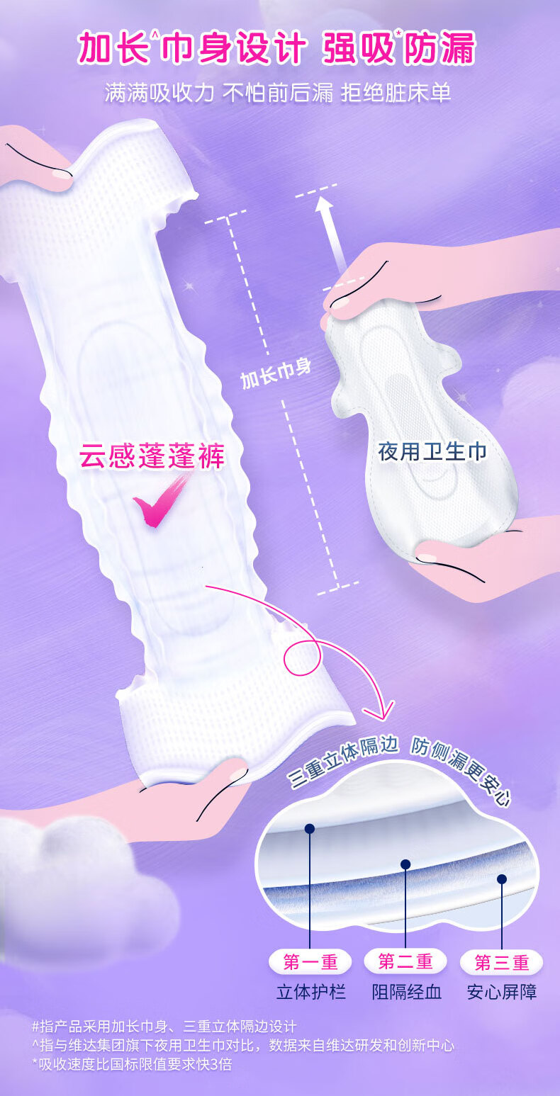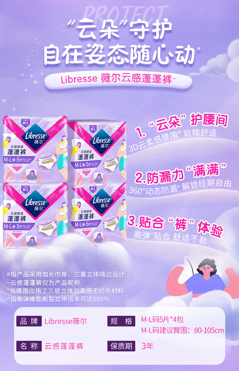 薇尔云感蓬蓬裤贴合加长防漏M-L码5片*4包组合装安睡裤京东自营姨妈巾