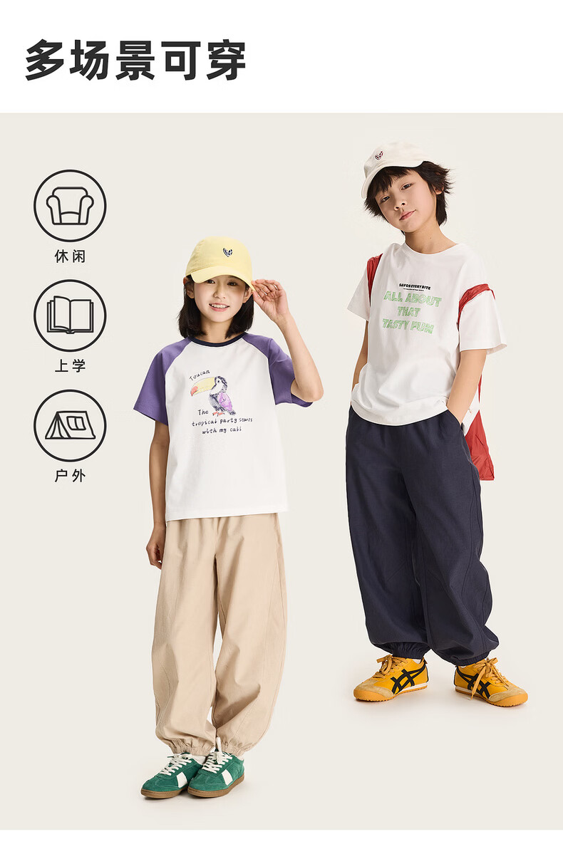 棉叔叔【天丝棉束脚灯笼裤】棉叔叔男童春季休闲长裤女童结构款裤子2.24 浅卡其 120 120