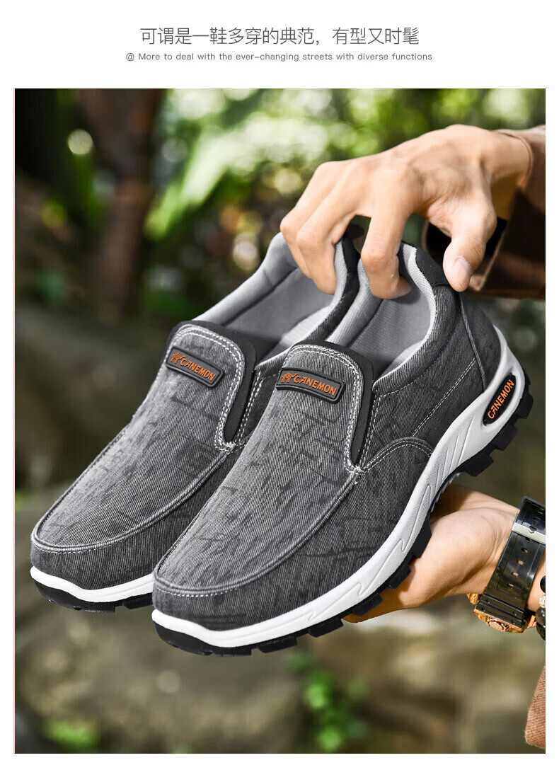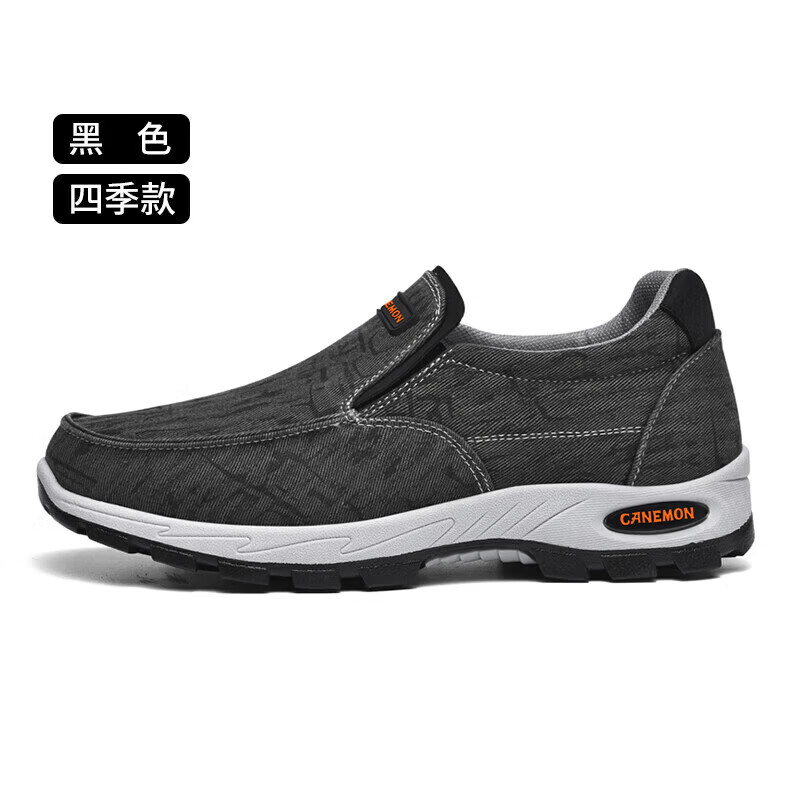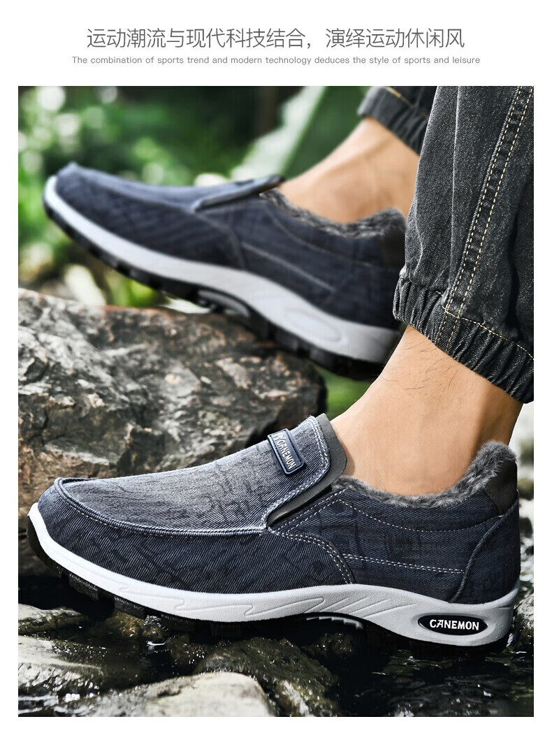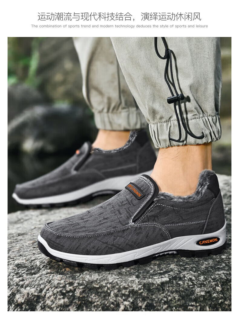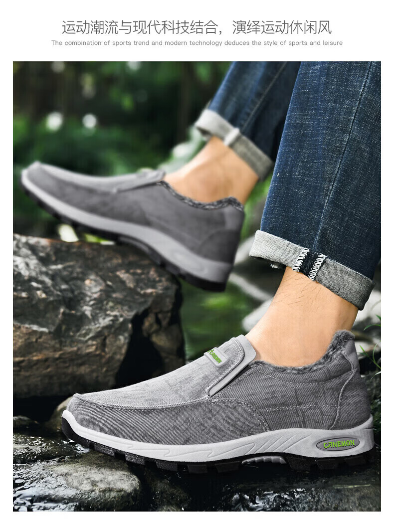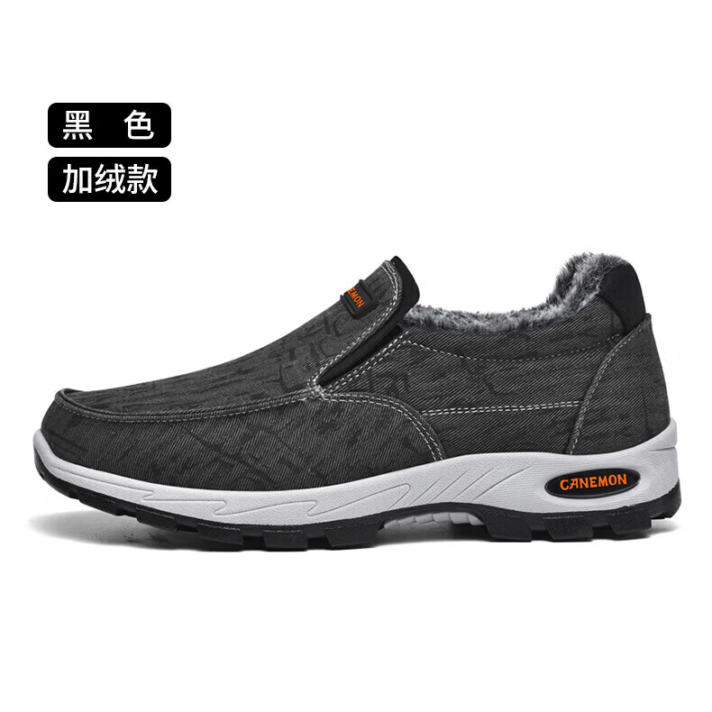 保罗骆驼户外一脚蹬男鞋 春夏季防滑耐磨大码运动休闲鞋 加绒软底健步布 【黑色】加绒款 339 38
