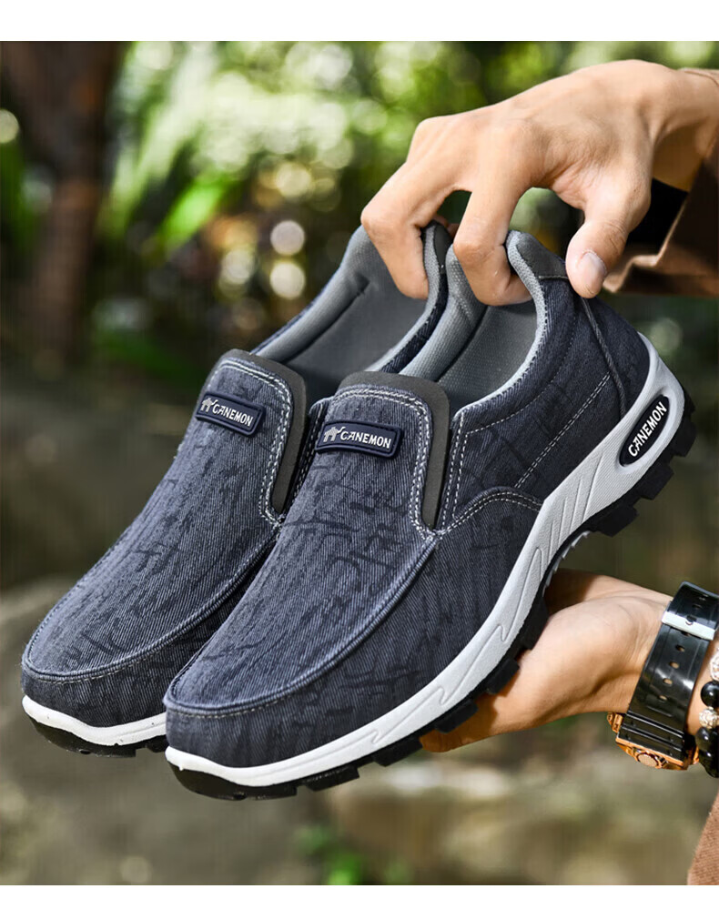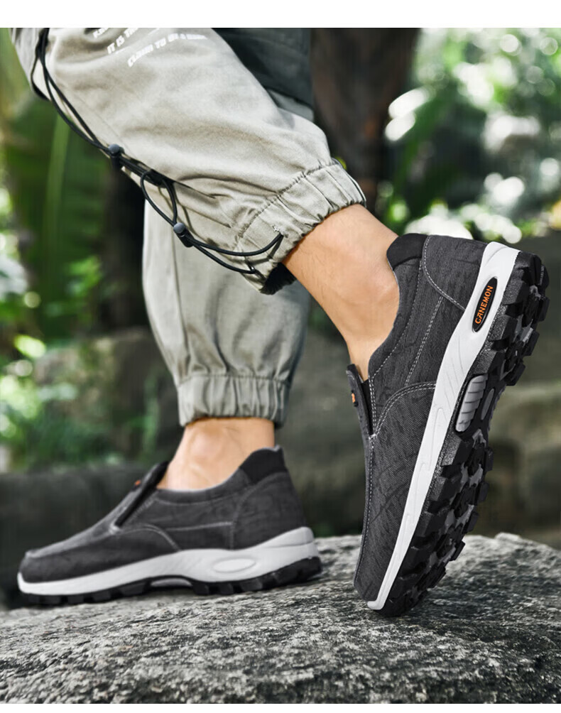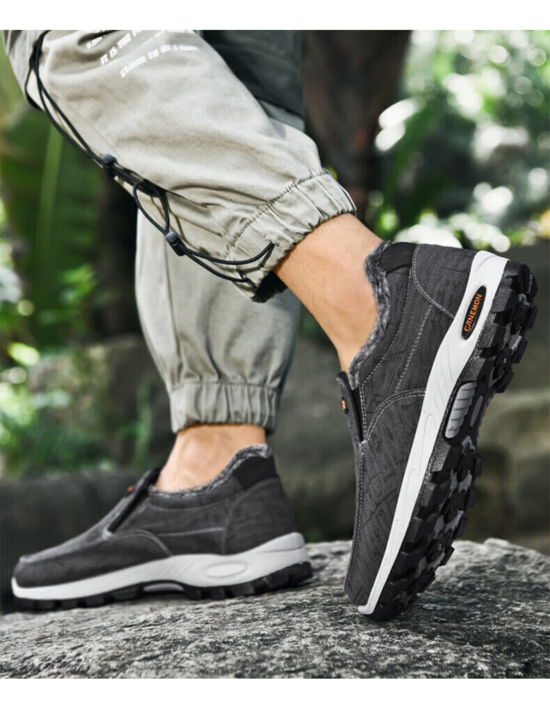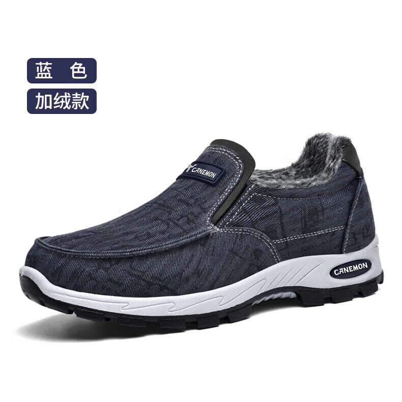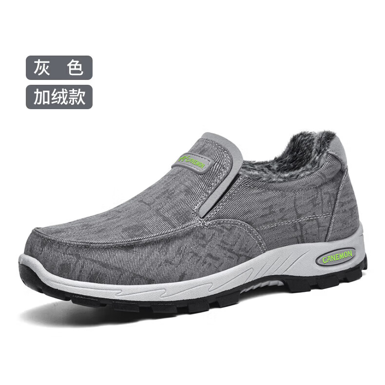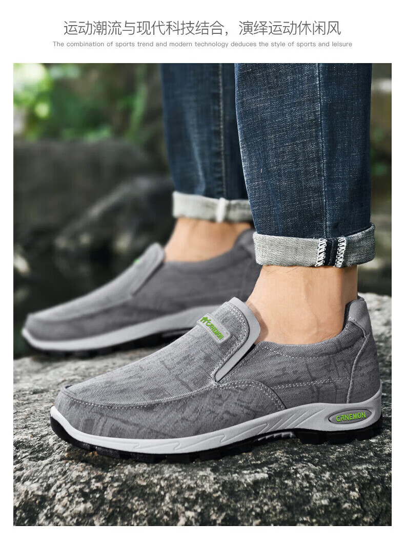 保罗骆驼户外一脚蹬男鞋 春夏季防滑耐磨大码运动休闲鞋 加绒软底健步布 【黑色】加绒款 339 38