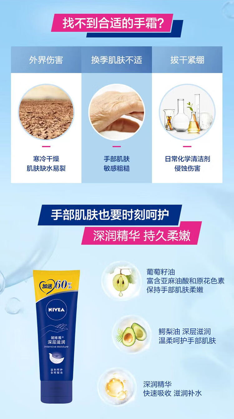 妮维雅(NIVEA)深层滋润手霜80ml( 滋润保湿 防止干裂 护手霜 )新年礼物送女生