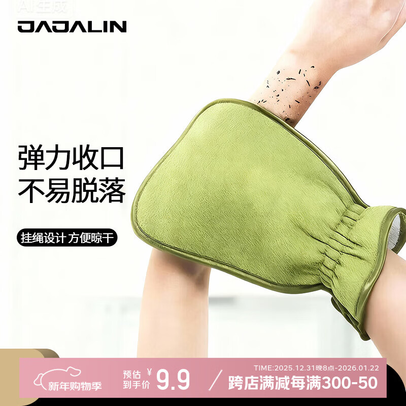 JAJALIN搓澡巾洗澡巾搓背双面家用强力搓泥搓灰后背手套不疼绿色