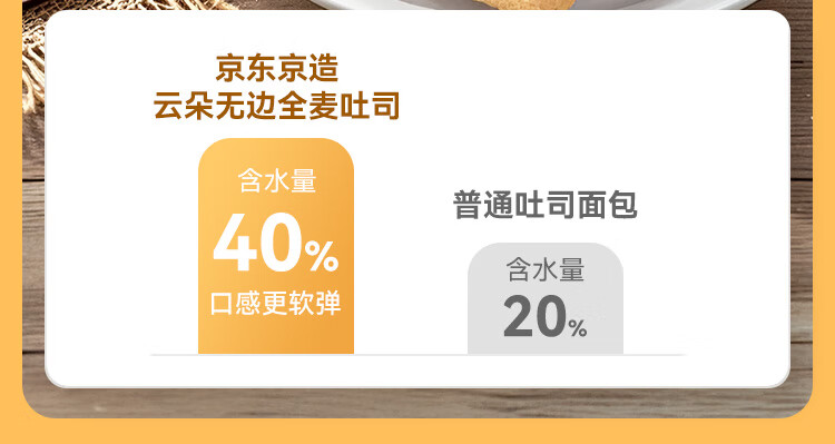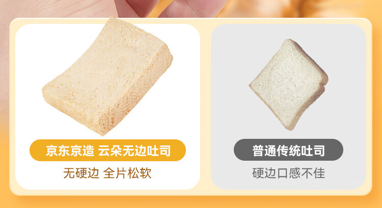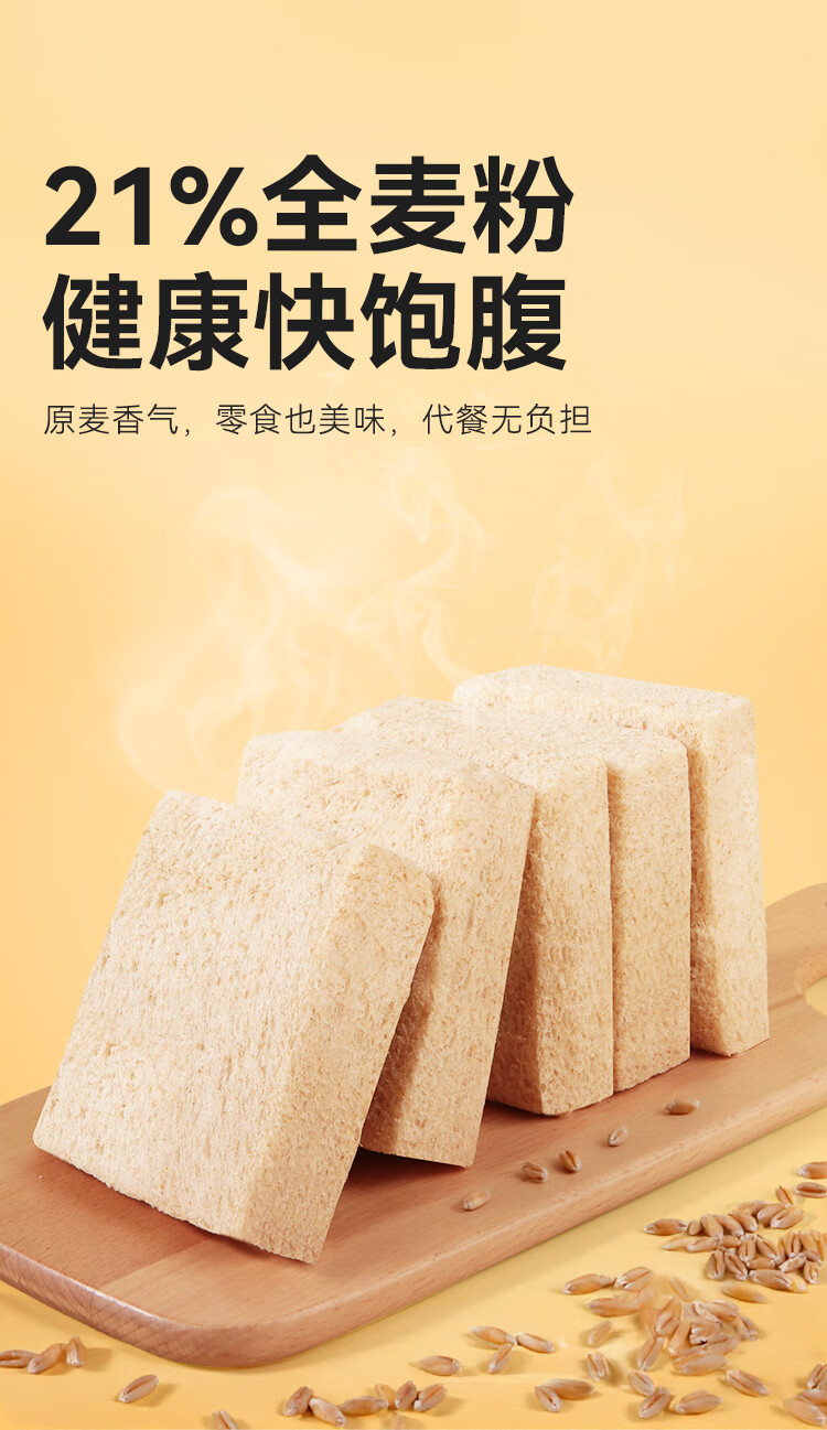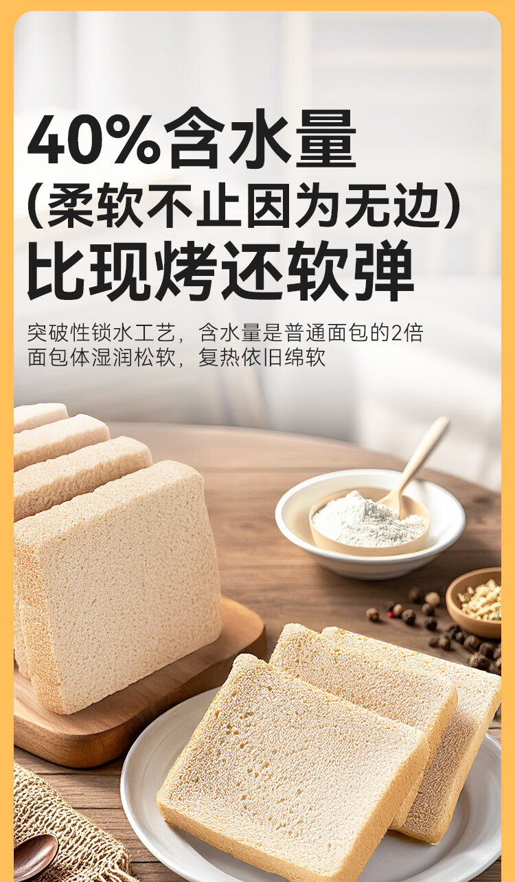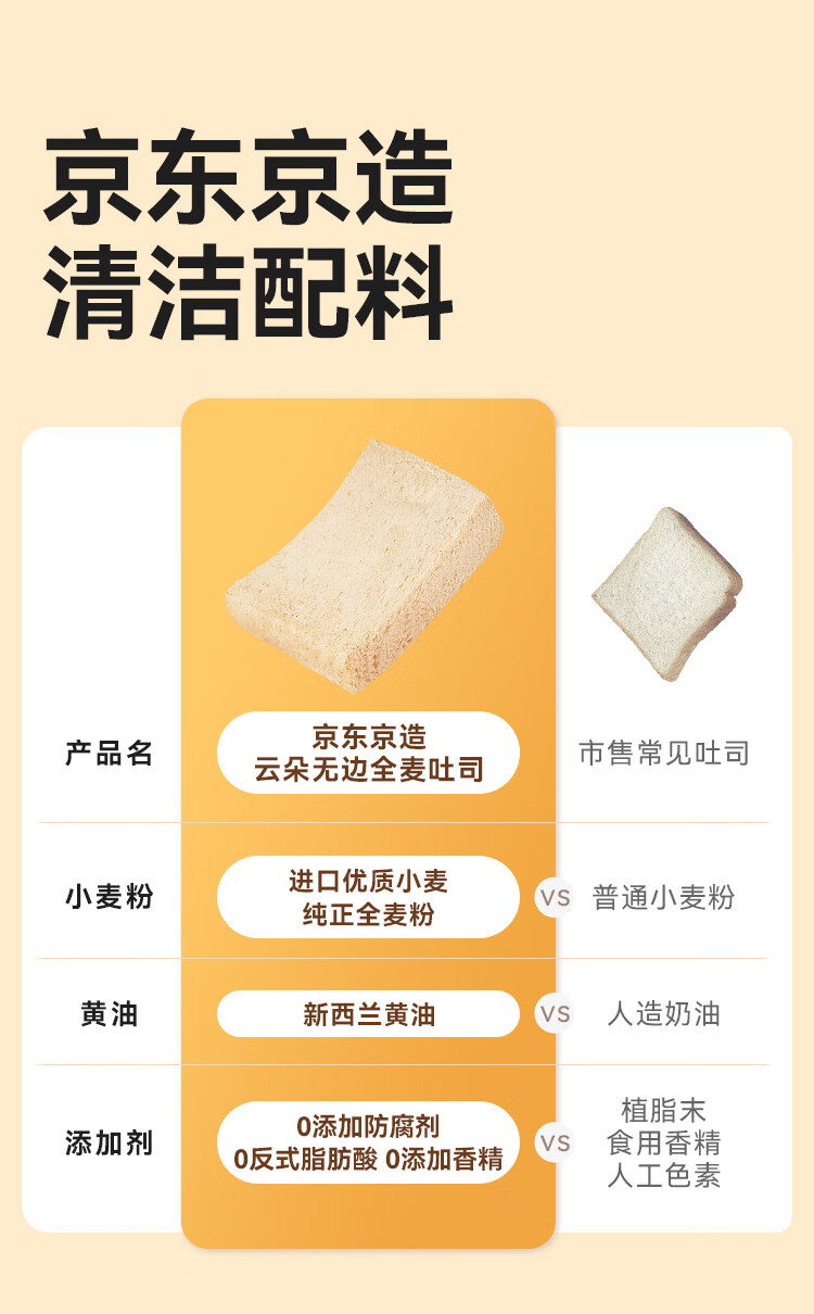 京东京造云朵无边厚切全麦吐司490g面包早餐糕点充饥代餐零食0添加防腐剂