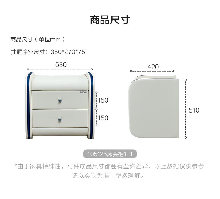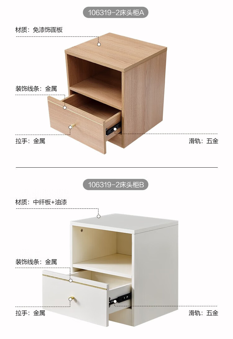 全友(QUANU)【迷瞪清仓货盘】【床头柜合集】床边收纳储物小柜子抽屉式床头柜 122702H-2左床头柜A*1