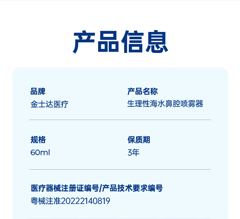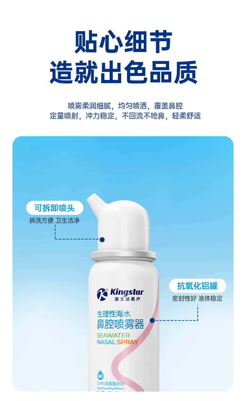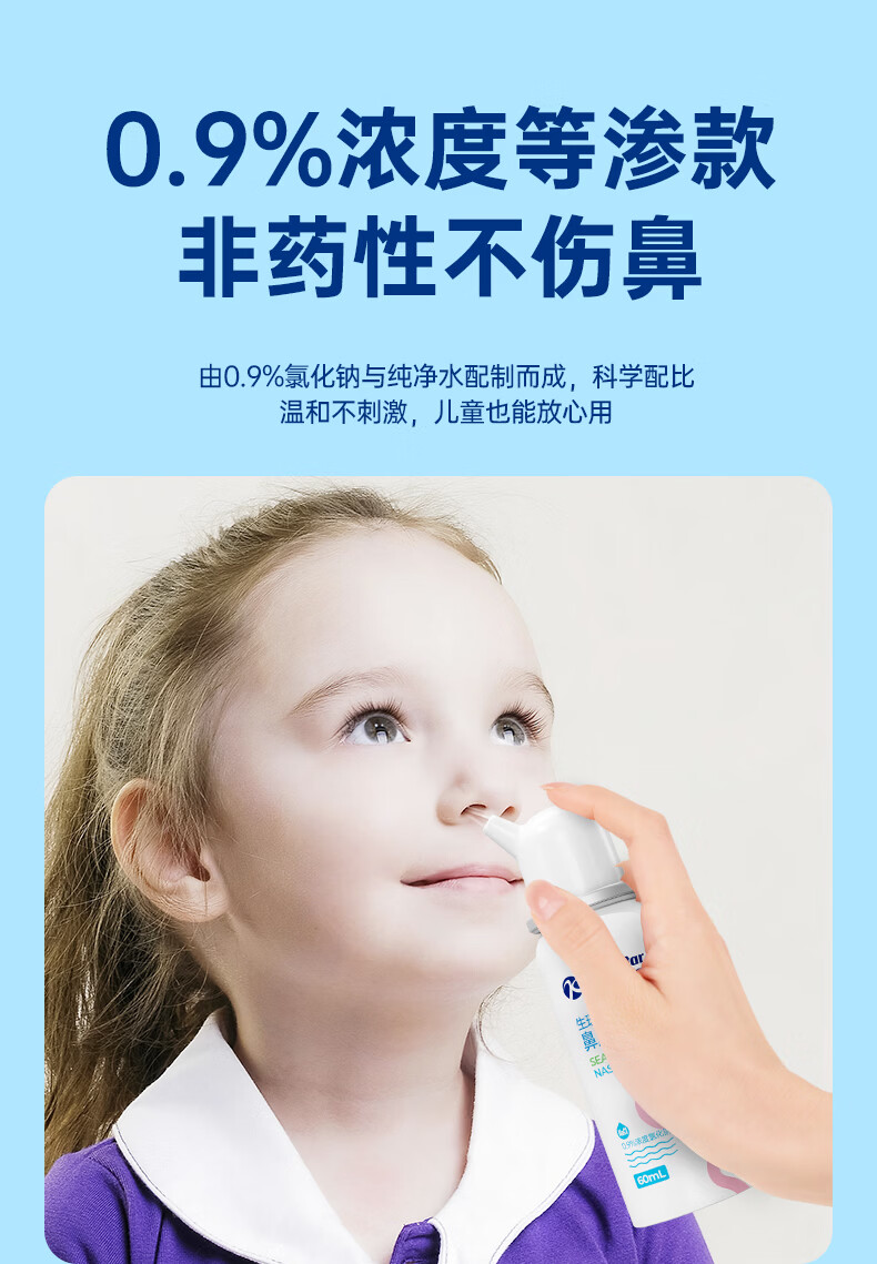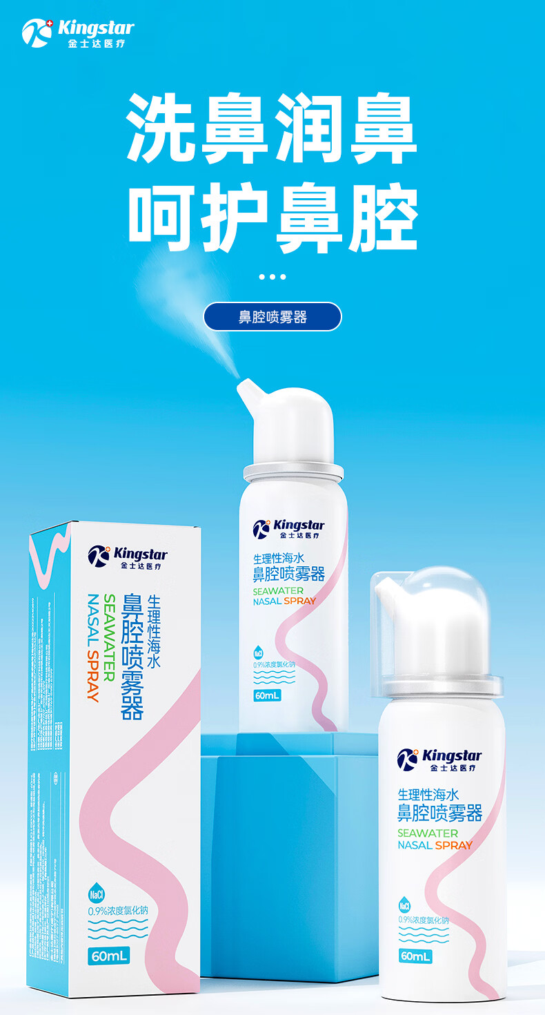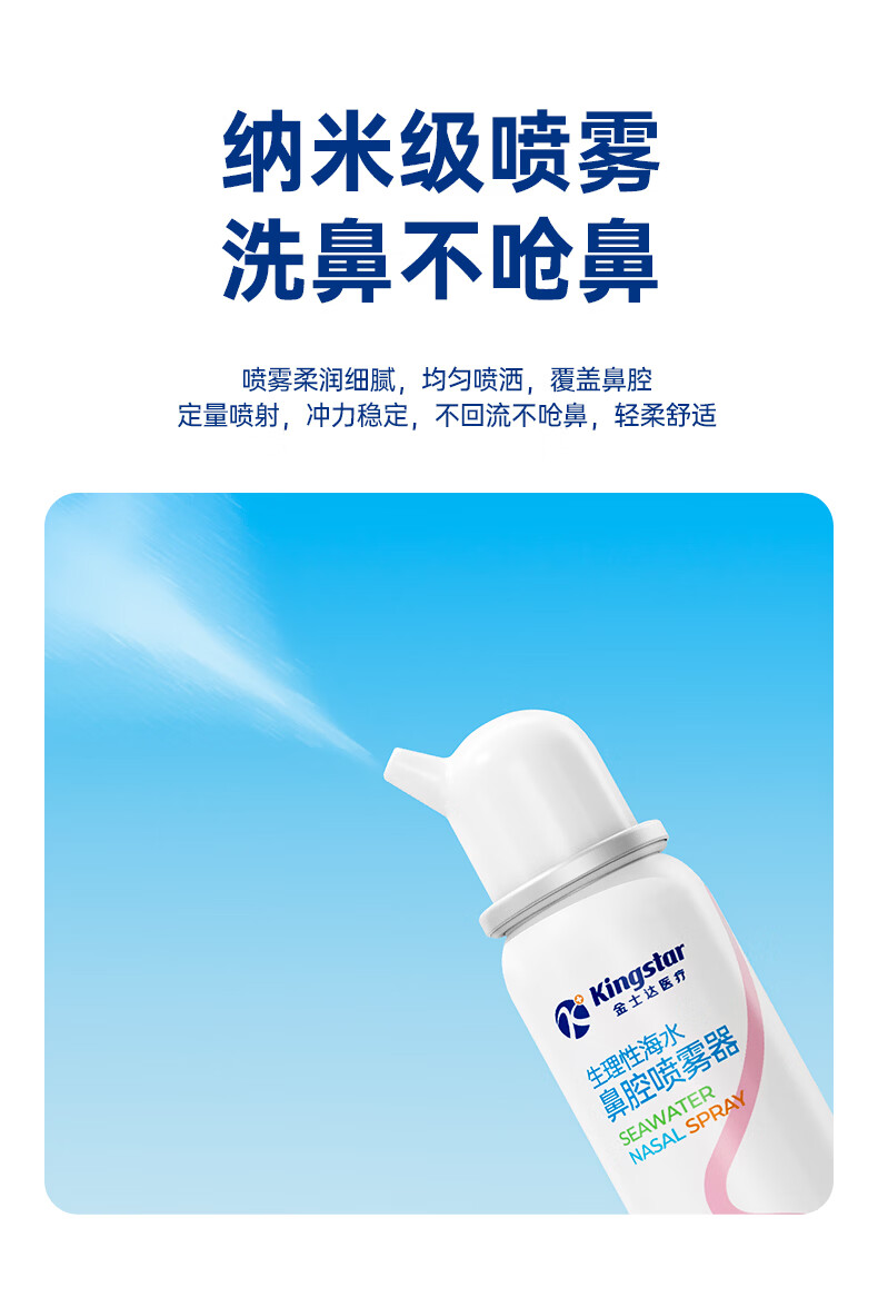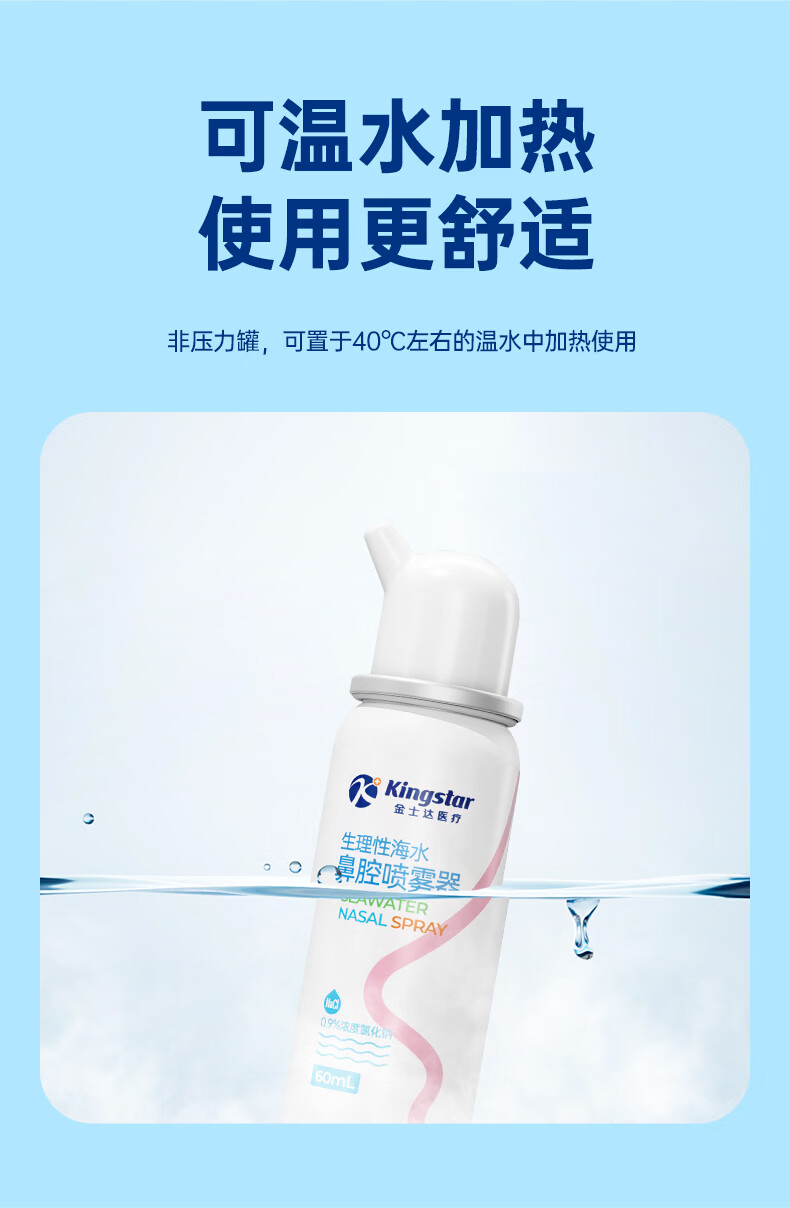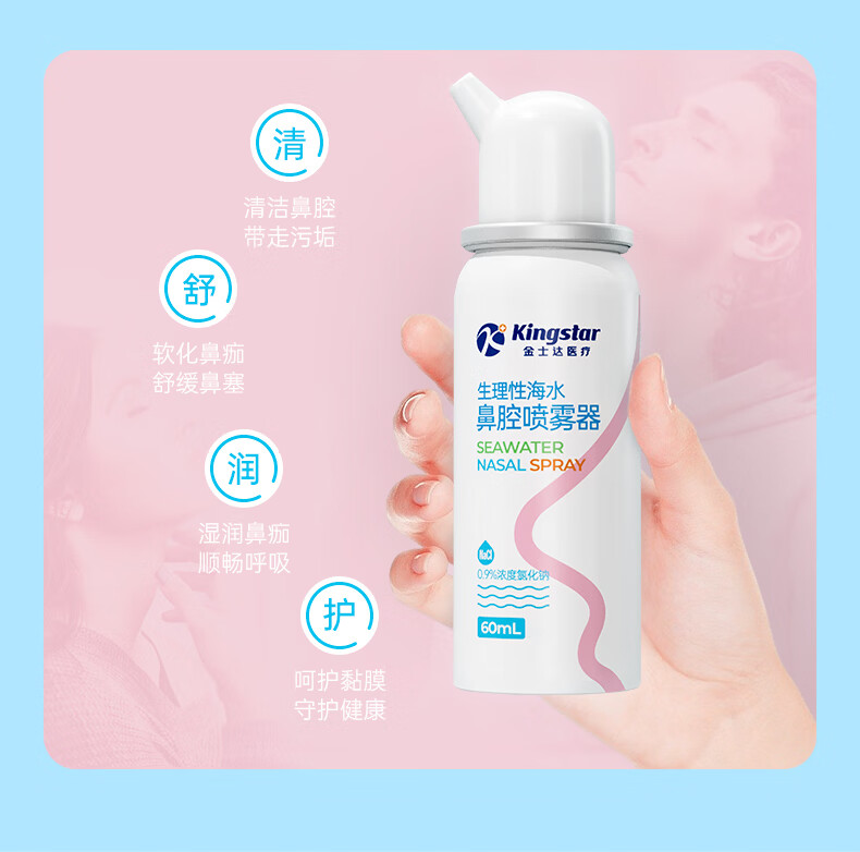金士达tk金士达鼻腔喷雾器儿童生理性盐水洗鼻器过敏性鼻炎喷剂冲洗 生理性海水鼻腔喷雾器 60ml/盒*3盒
