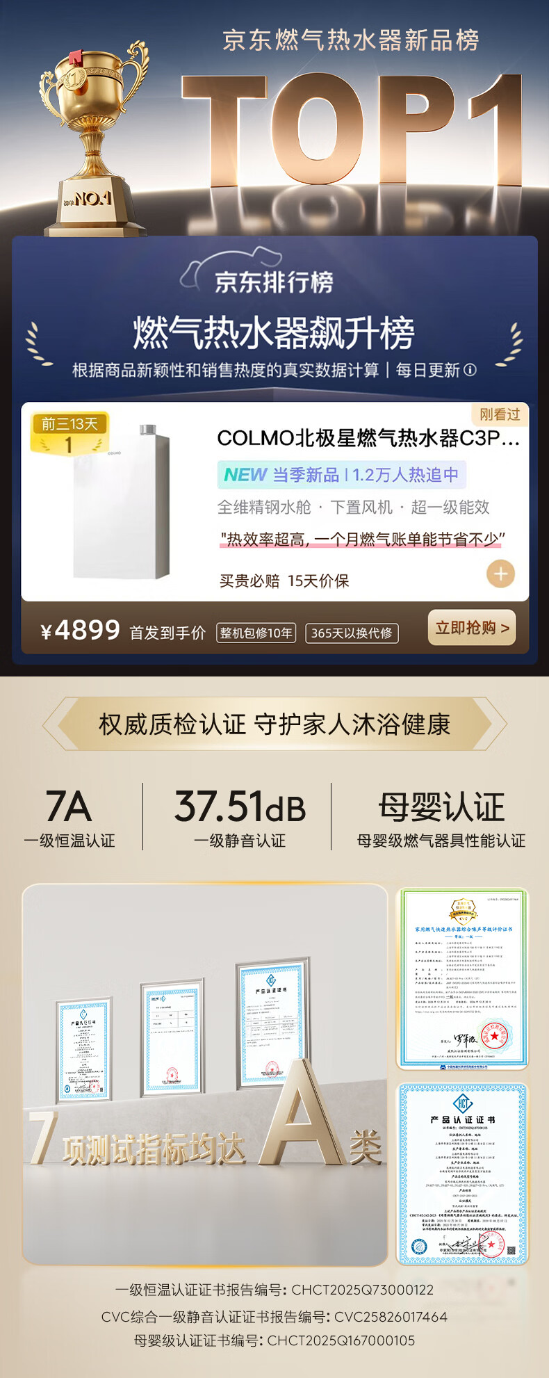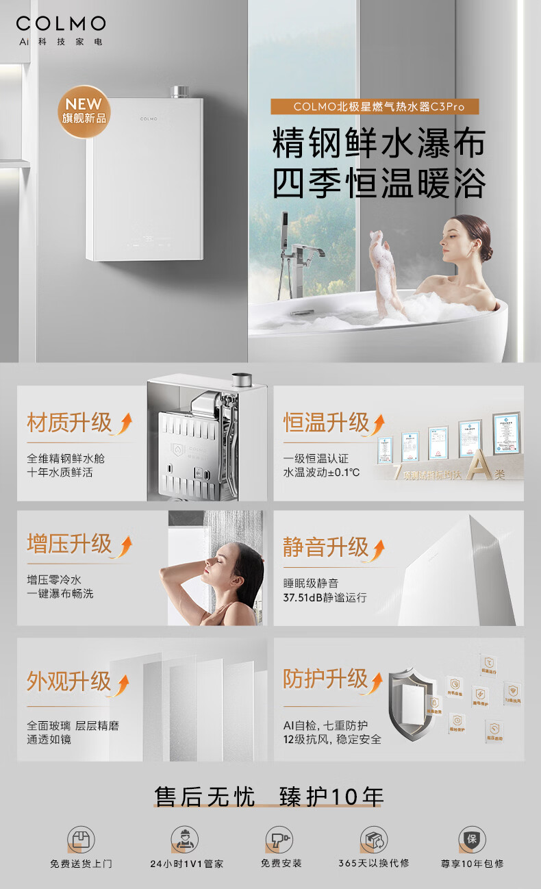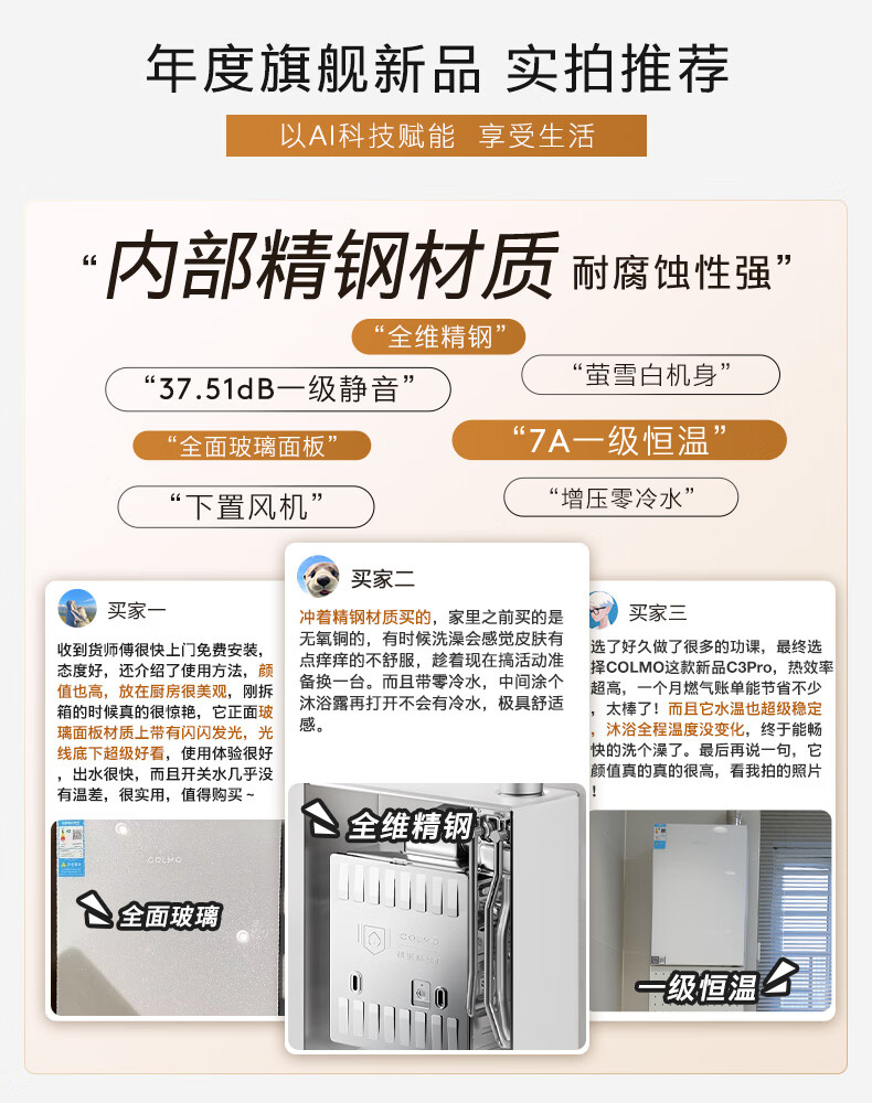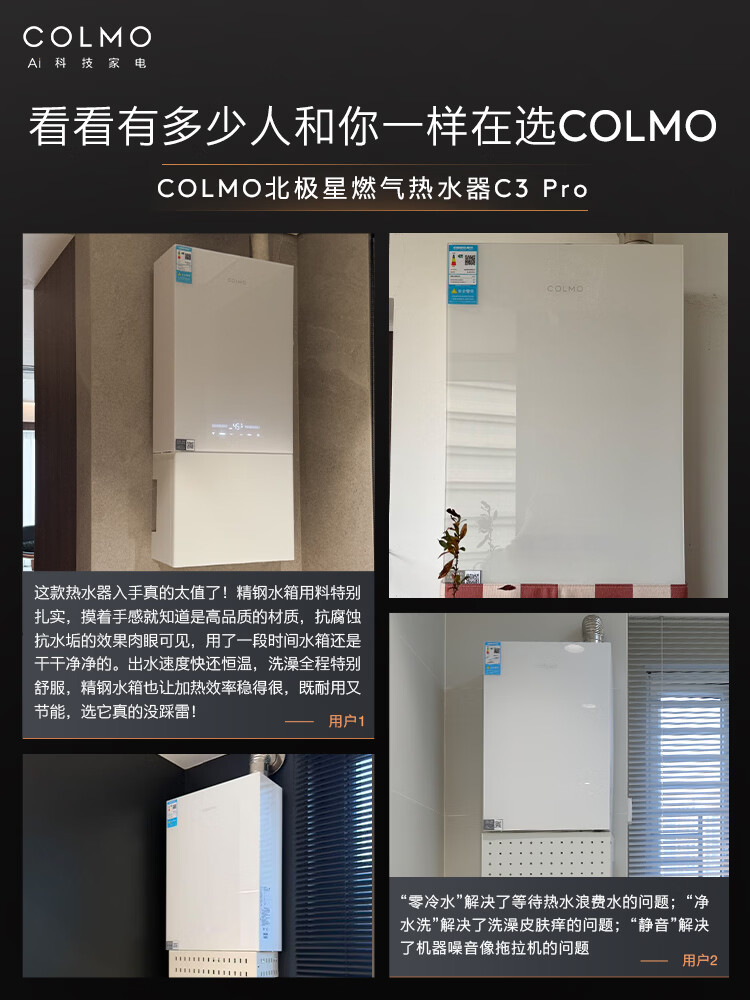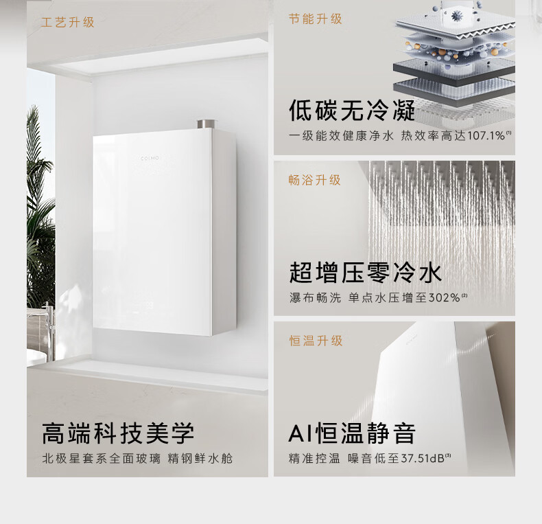 COLMO【重磅新品】北极星燃热C3Pro 家用天然气热水器16L 全维精钢鲜水舱双芯科技一级能效冷凝式恒温 16L 燃热C3Pro【一级能效 精钢水舱】萤雪白