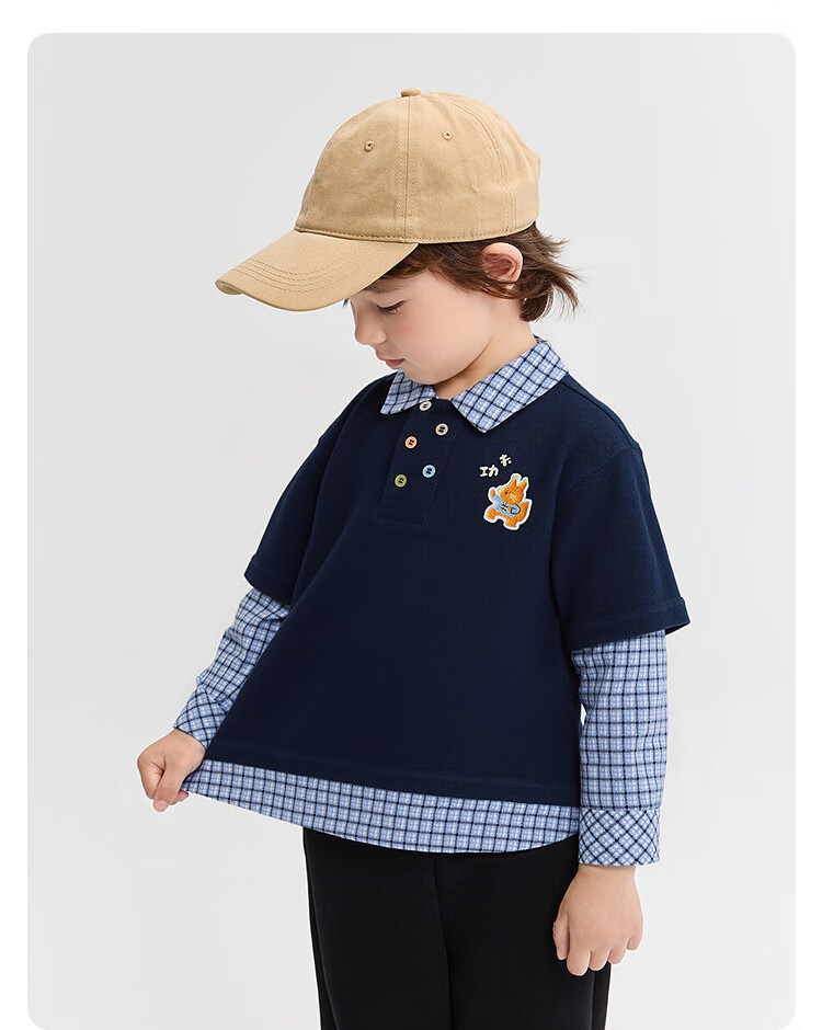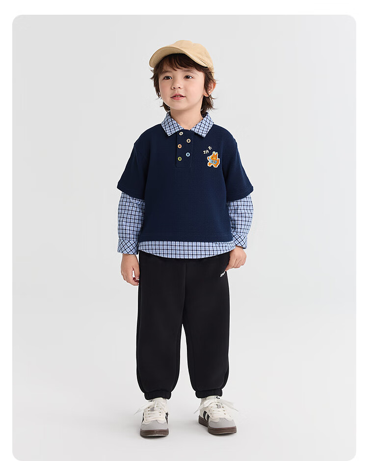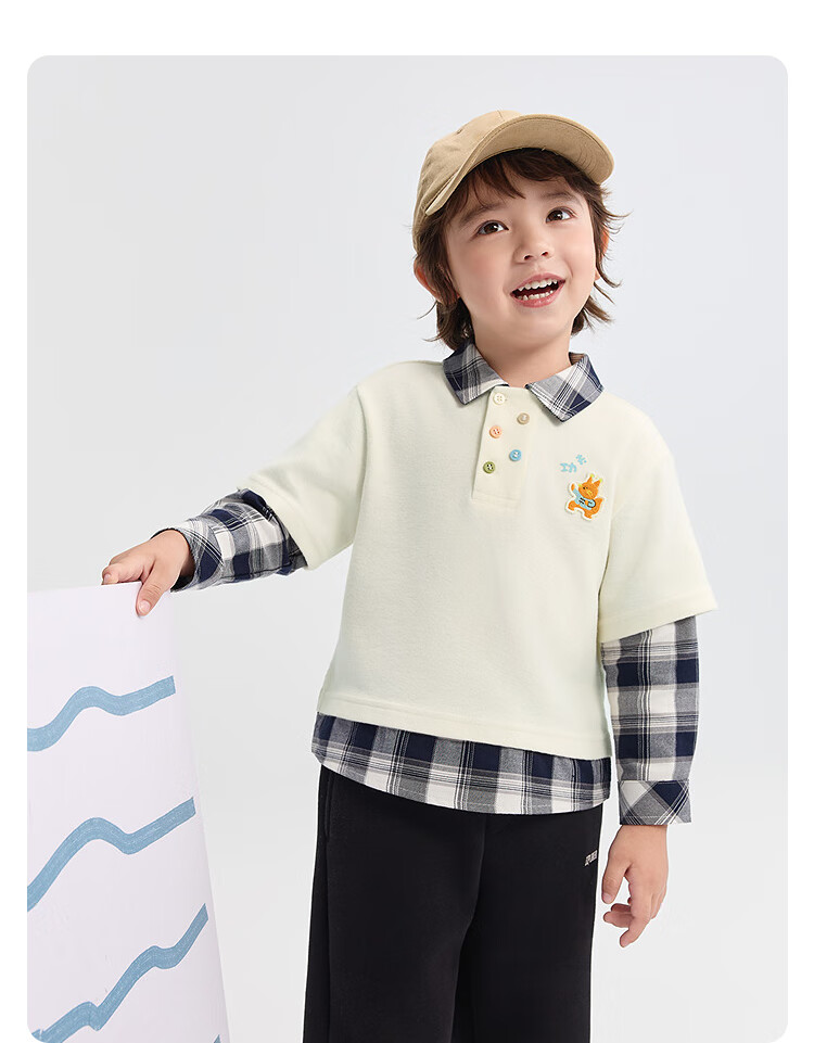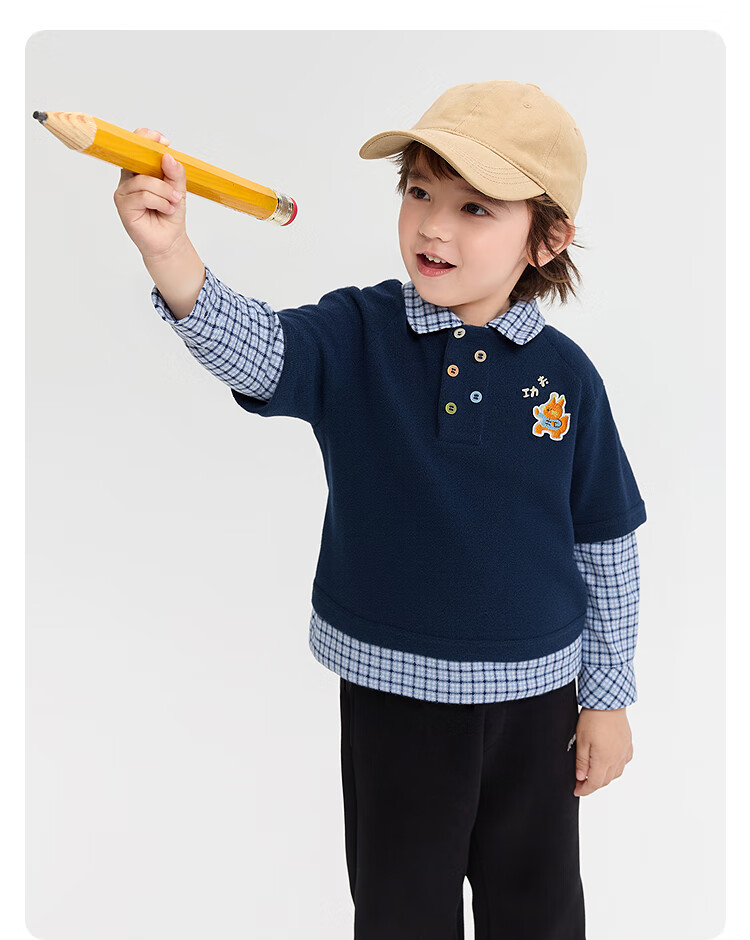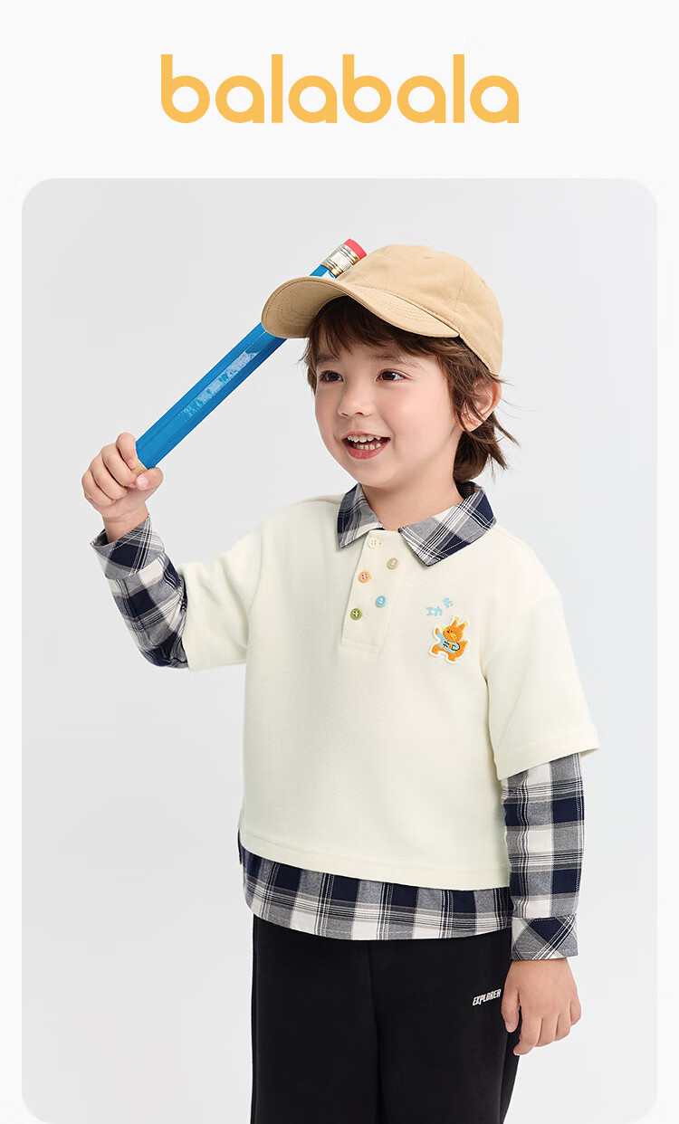 巴拉巴拉童装男童卫衣格纹拼接假两件长袖上衣2025秋装学院风209325121101