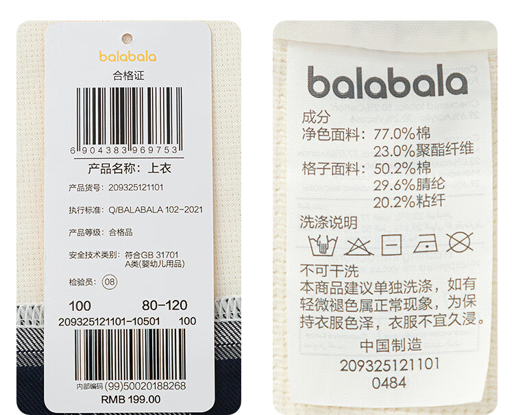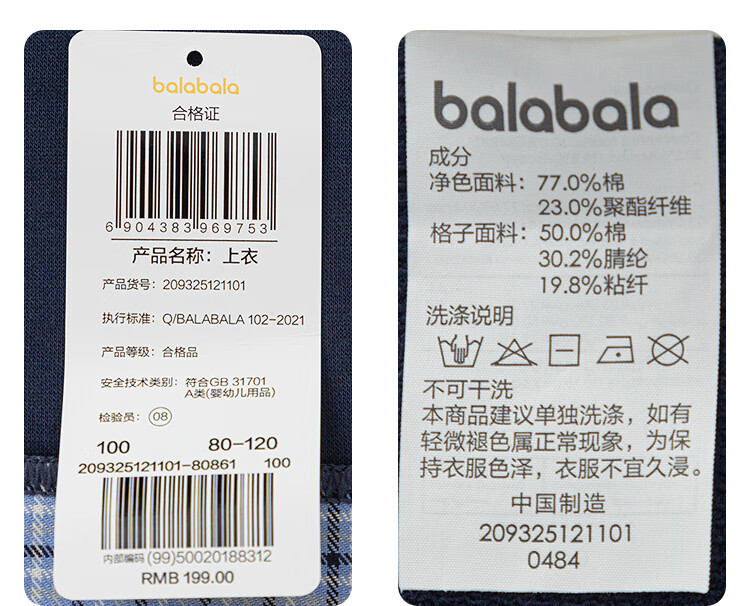 迷你巴拉巴拉男女童长袖套装潮流拼色上衣长裤两件套春季新款 海盐千层 100 【91-100cm 12-16kg】