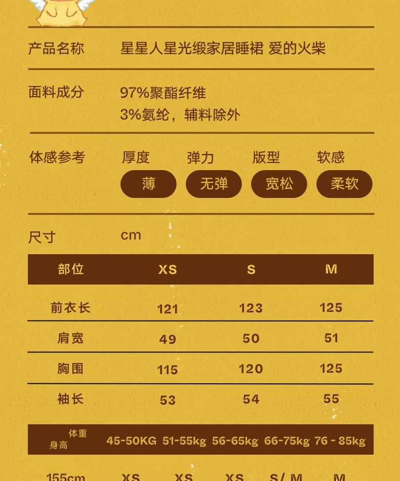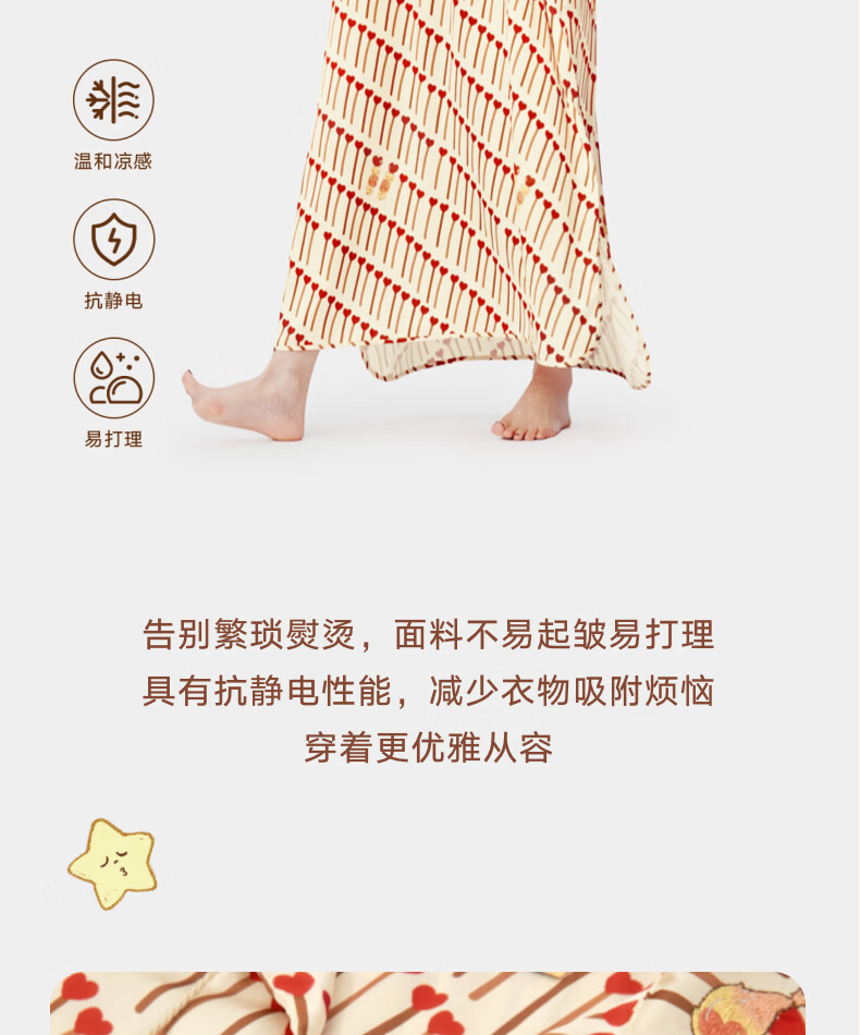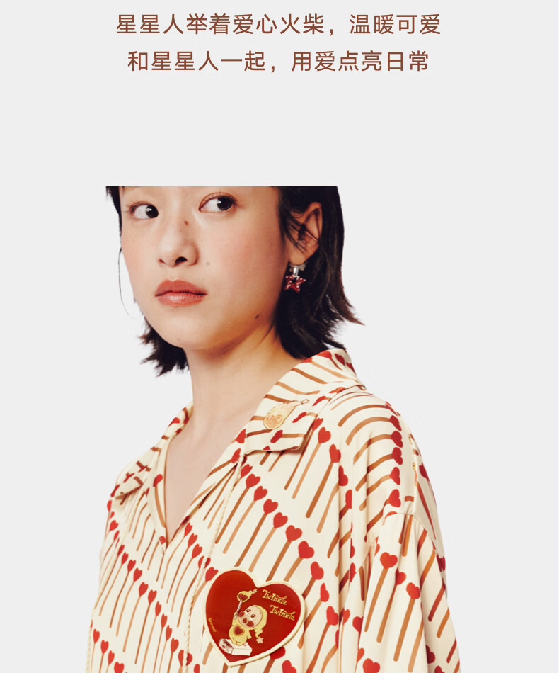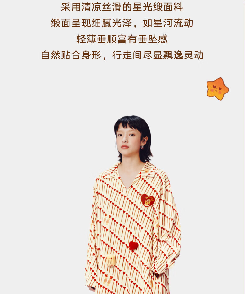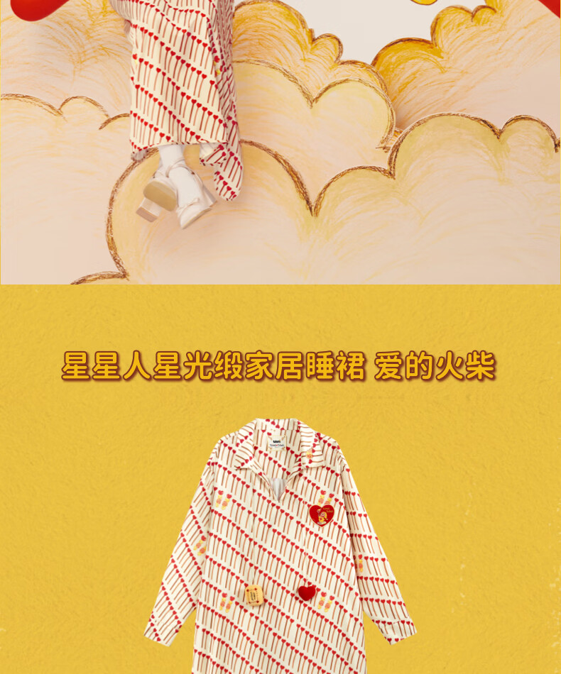 野兽派家居(tbh)星星人星光缎家居睡裙四季可外穿家居服女士睡衣 星星人星光缎-家居睡裙-爱的火柴 M
