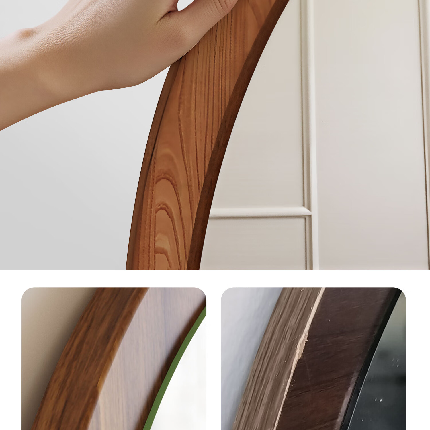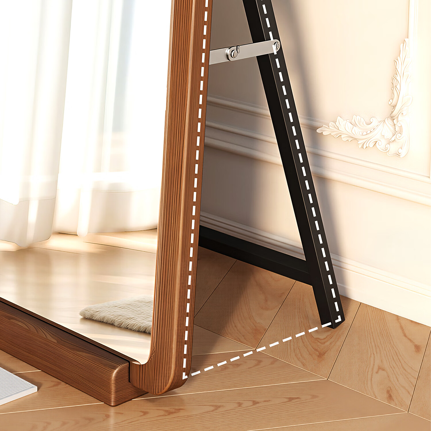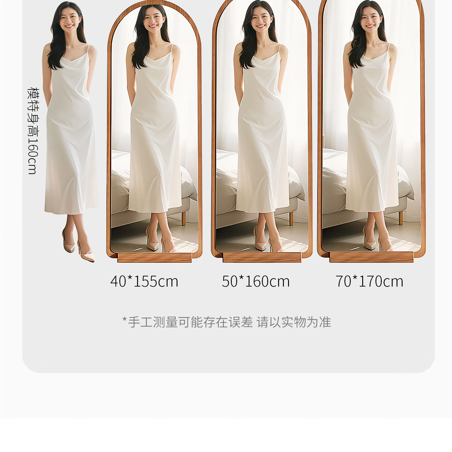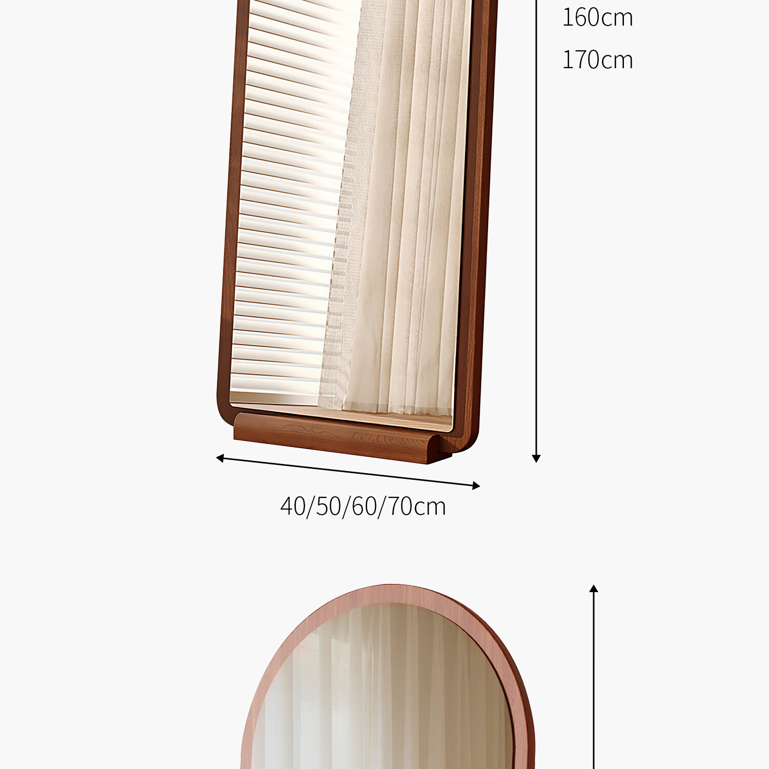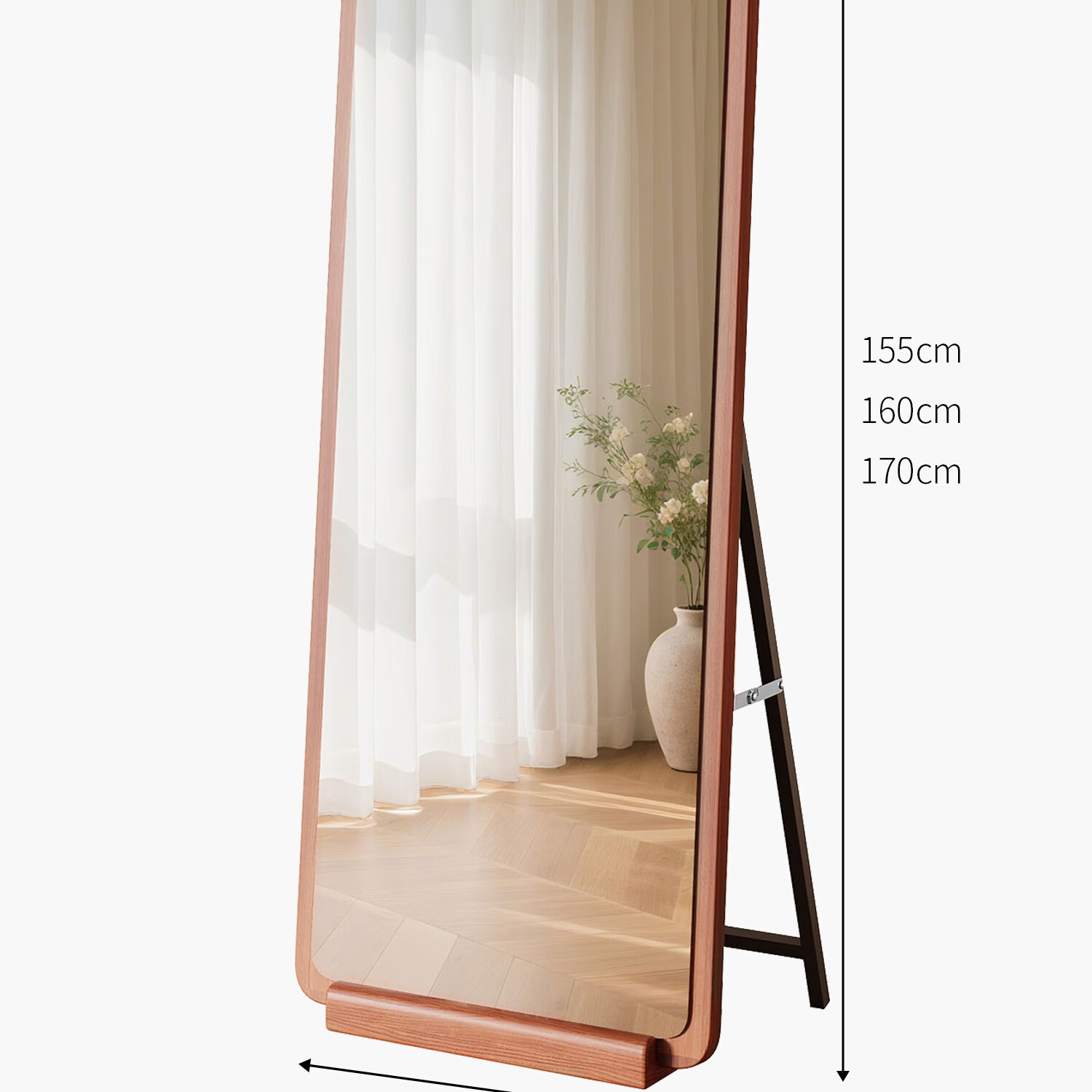 吱凡日本全身镜落地镜家用穿衣镜卧室镜子一体壁挂女生试衣镜宿舍挂墙 【胡桃木】160x50cm-可壁挂可站立【送实木底托+支架】