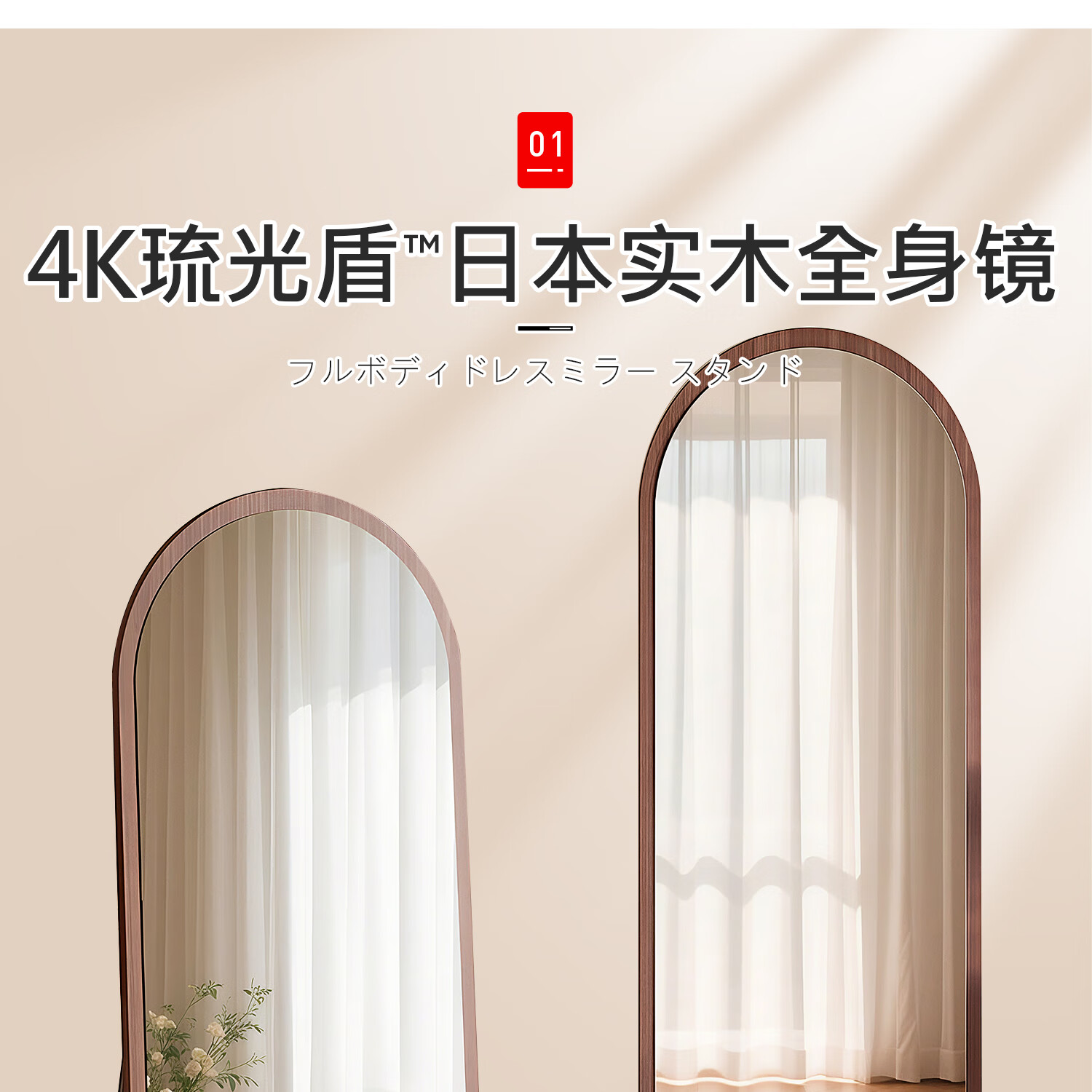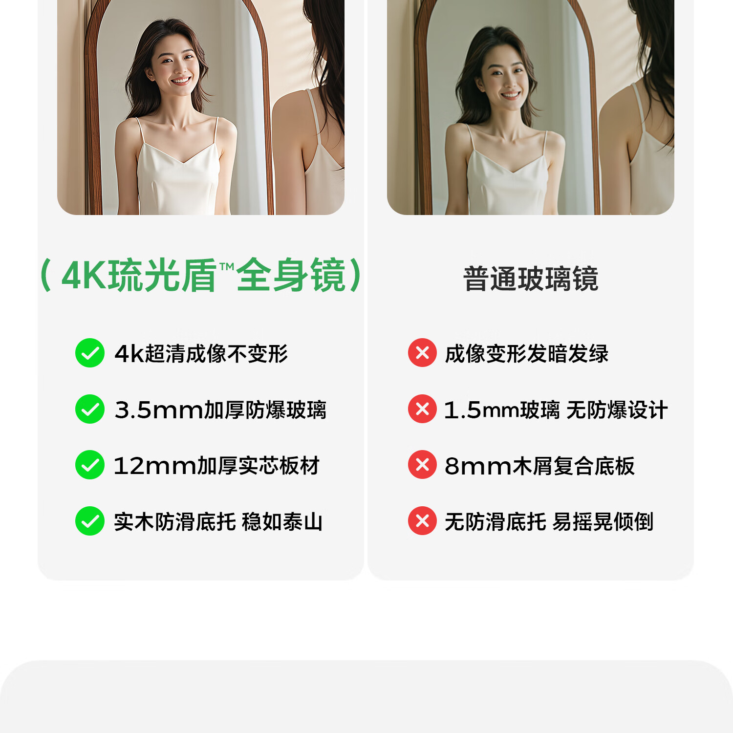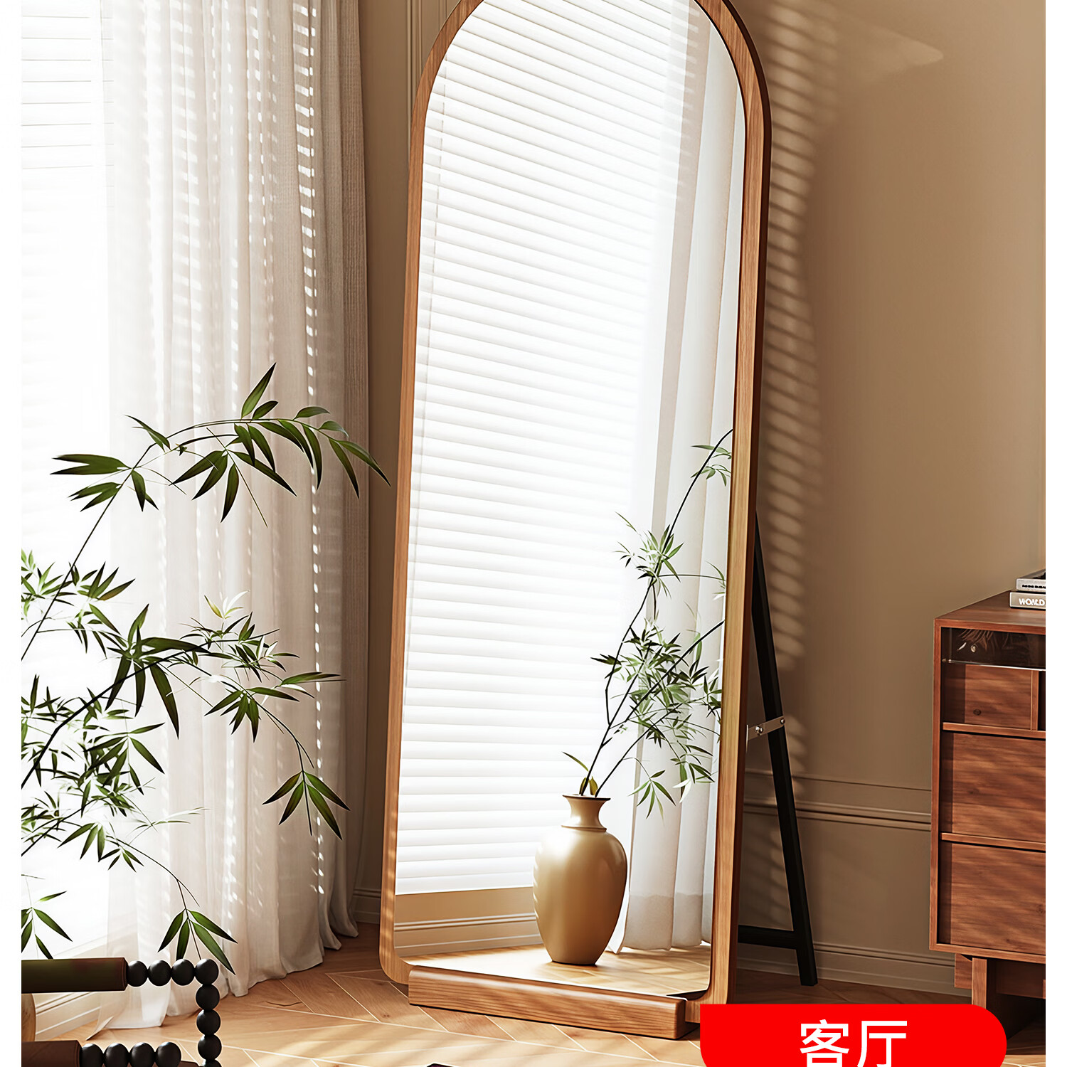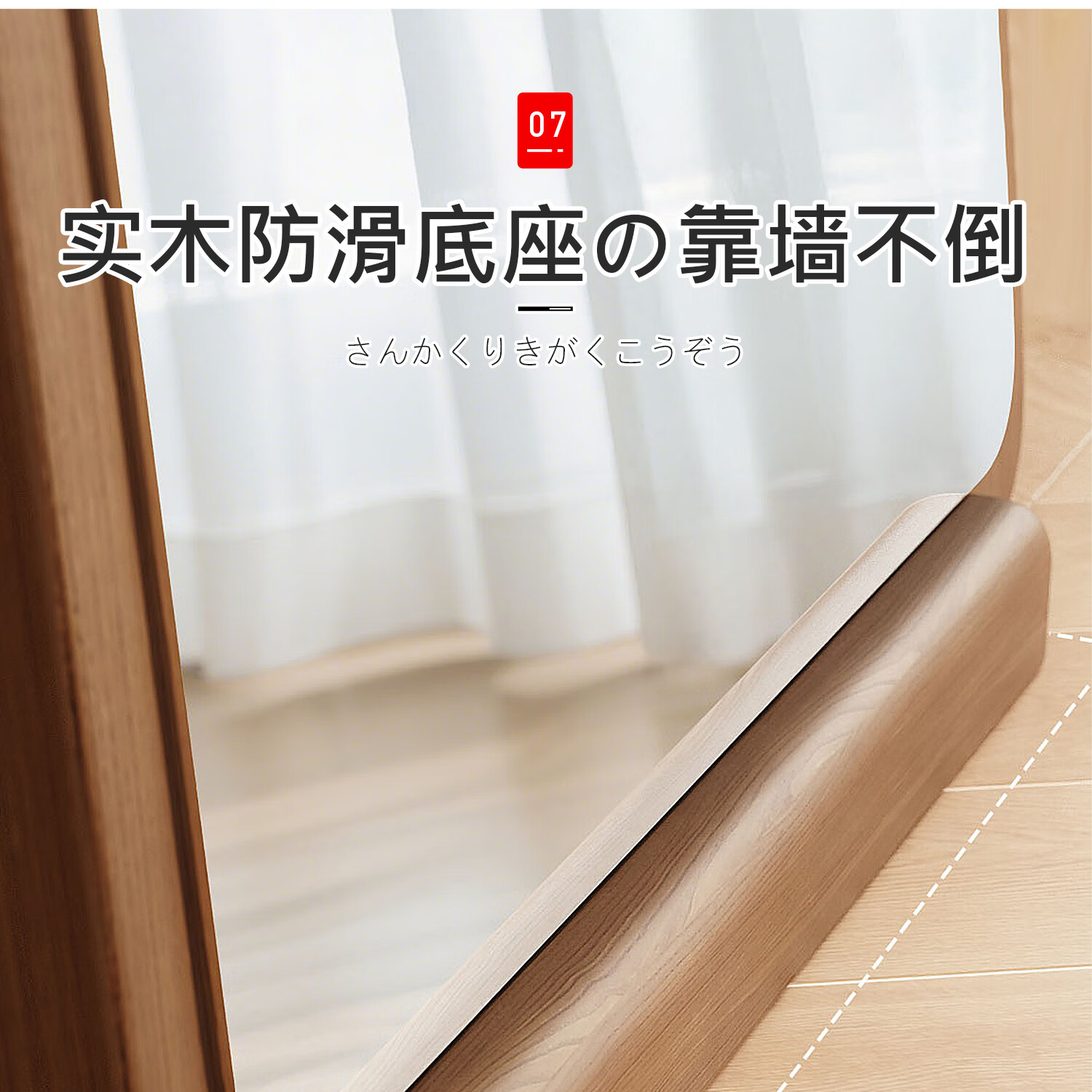吱凡日本全身镜落地镜家用穿衣镜卧室镜子一体壁挂女生试衣镜宿舍挂墙 【胡桃木】160x50cm-可壁挂可站立【送实木底托+支架】