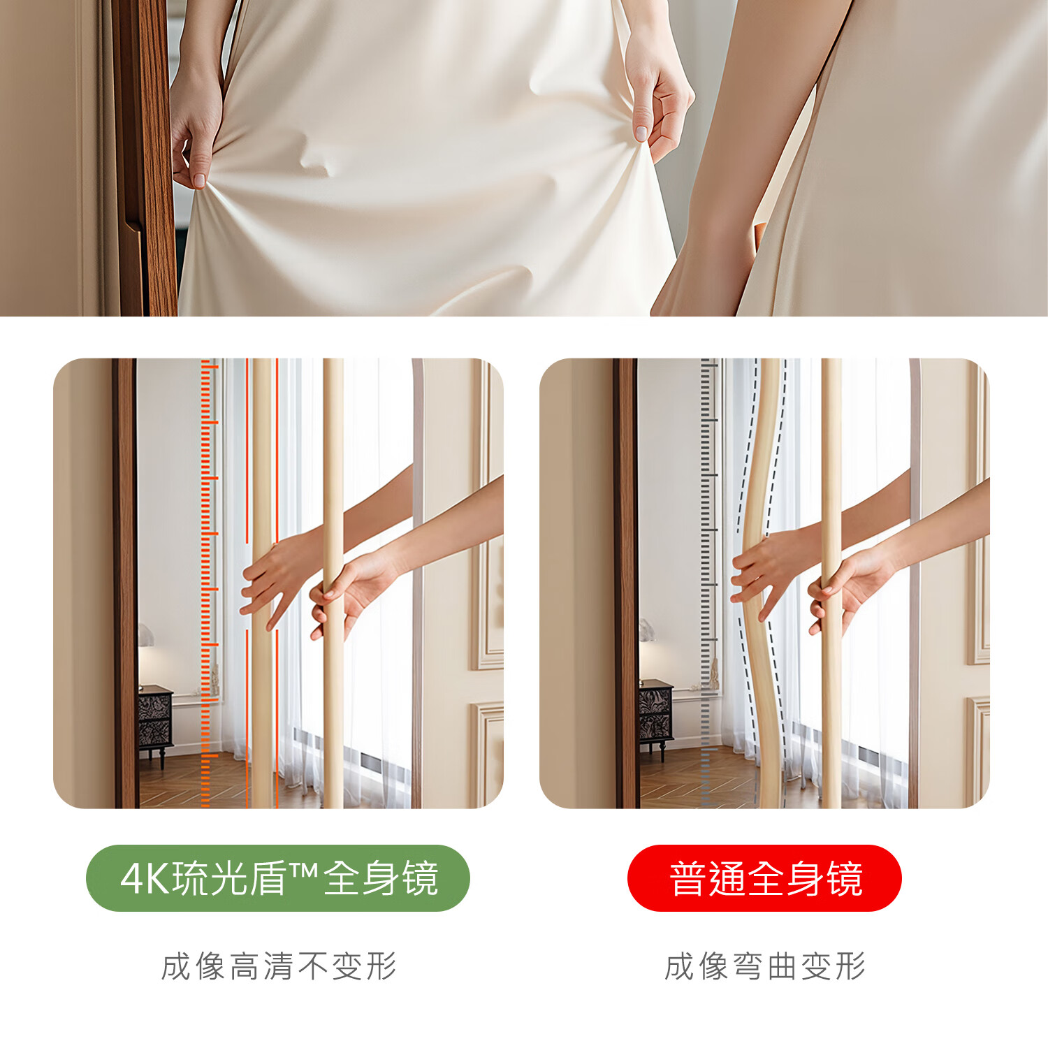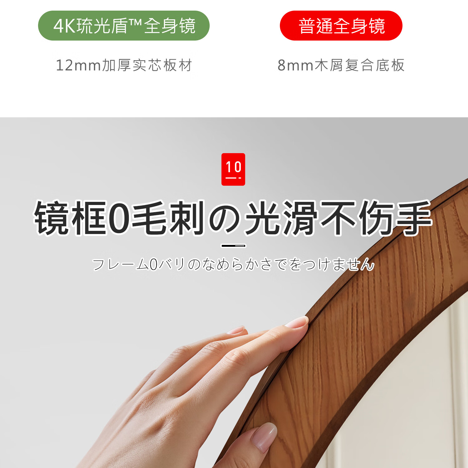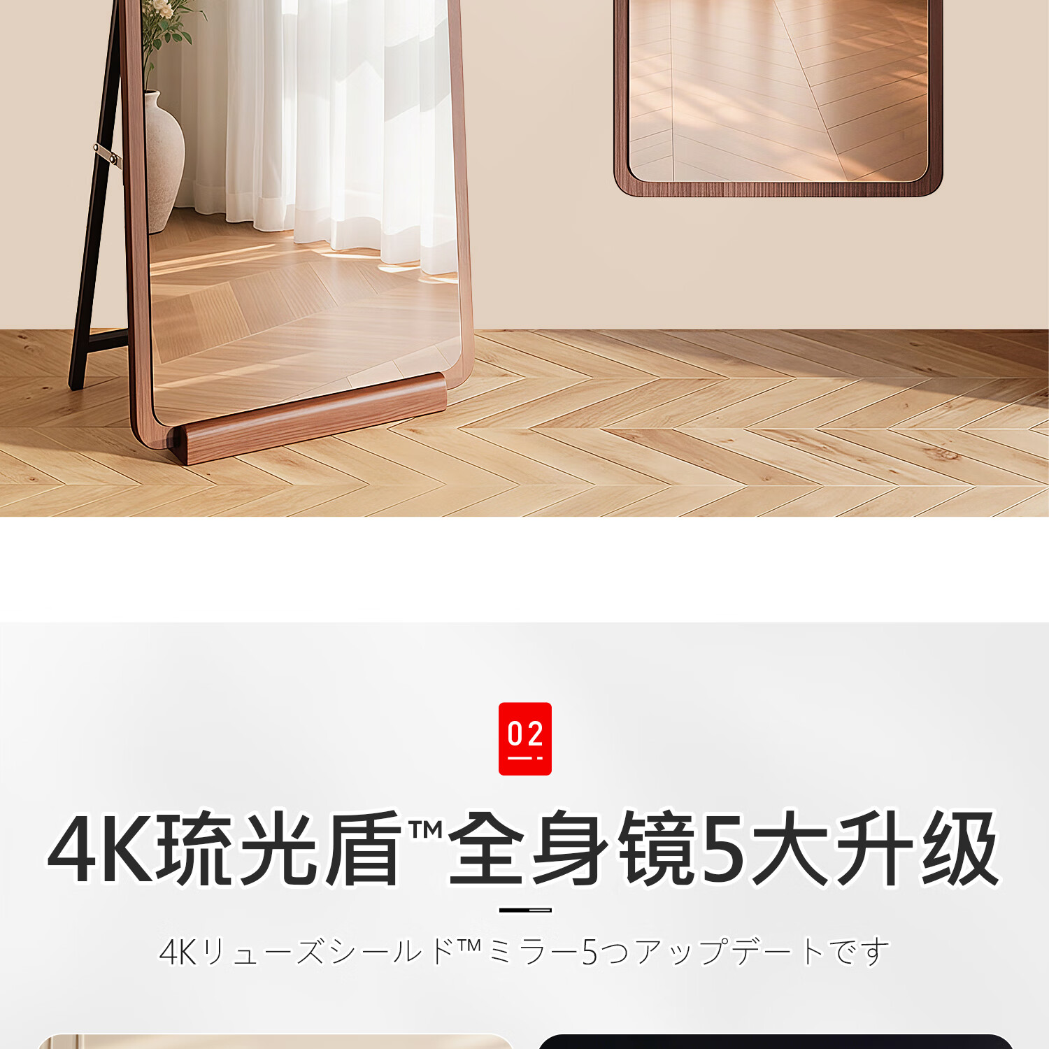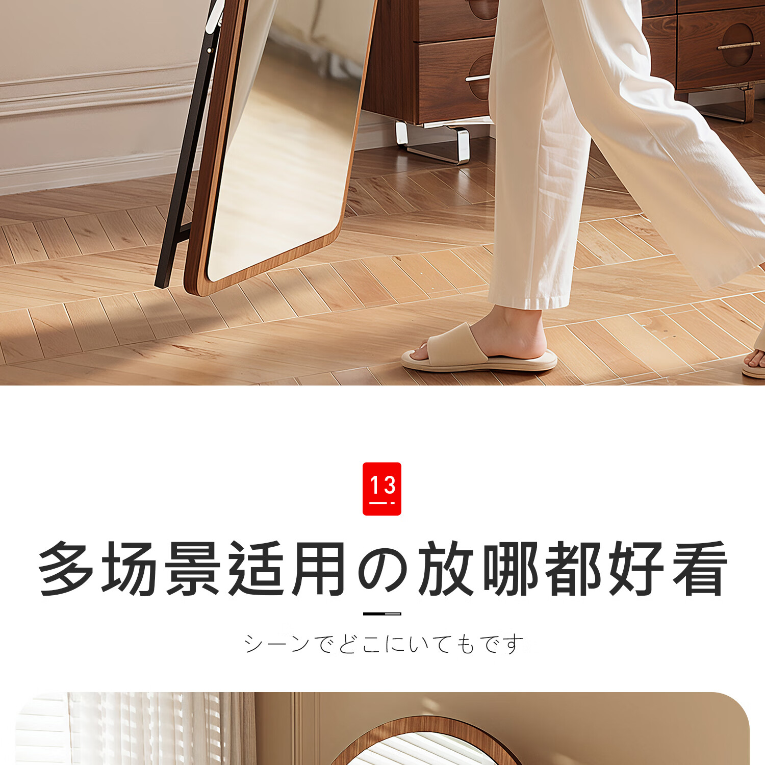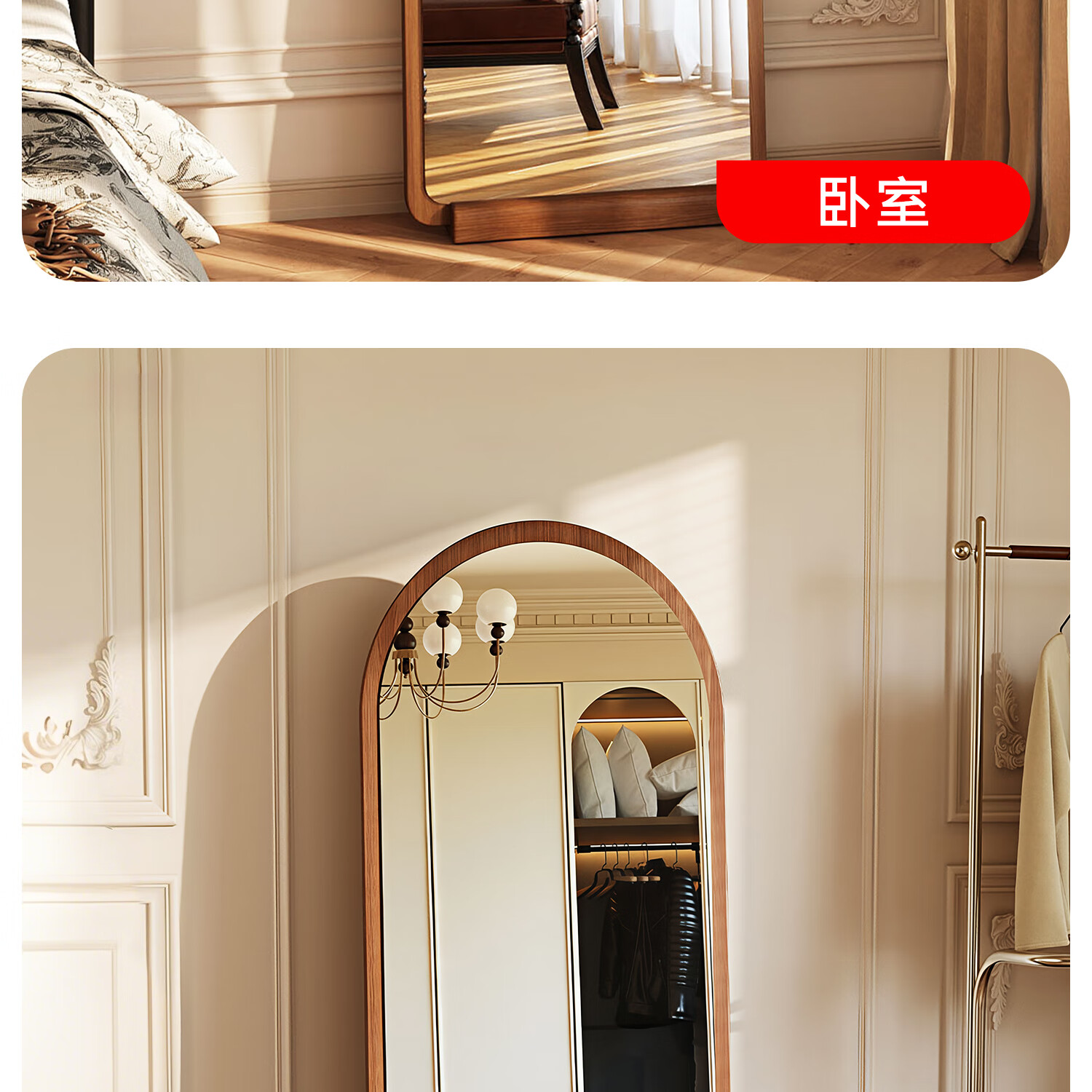 吱凡日本全身镜落地镜家用穿衣镜卧室镜子一体壁挂女生试衣镜宿舍挂墙 【胡桃木】160x50cm-可壁挂可站立【送实木底托+支架】