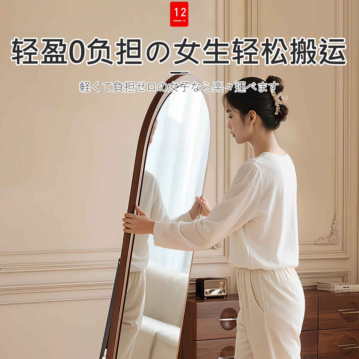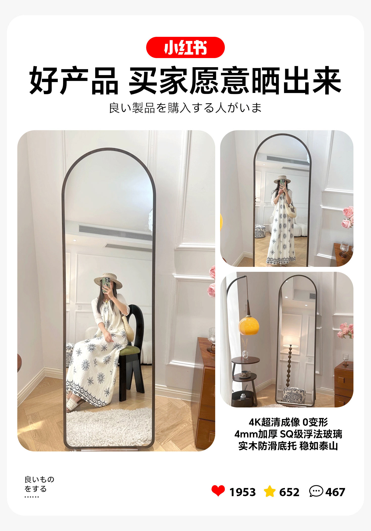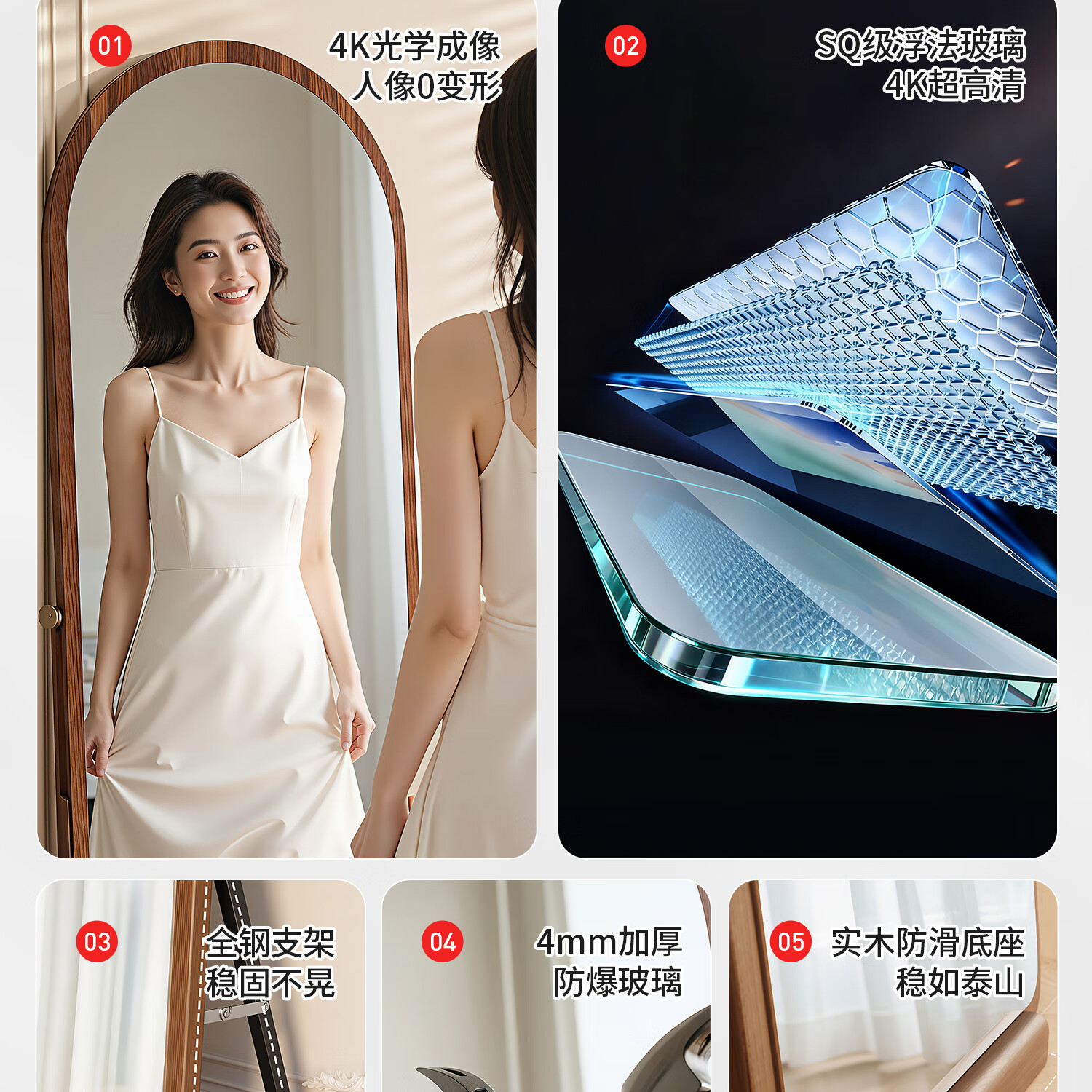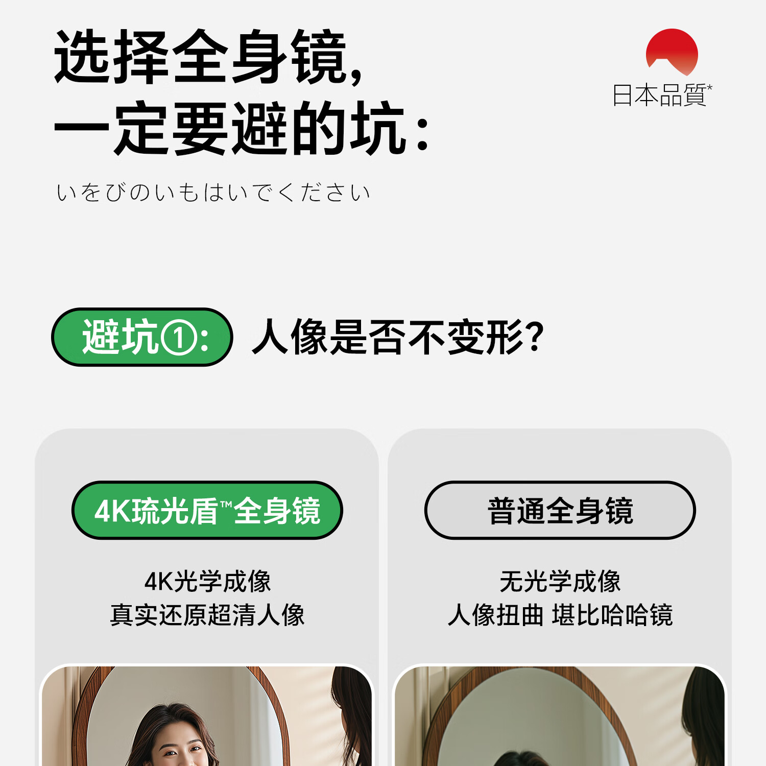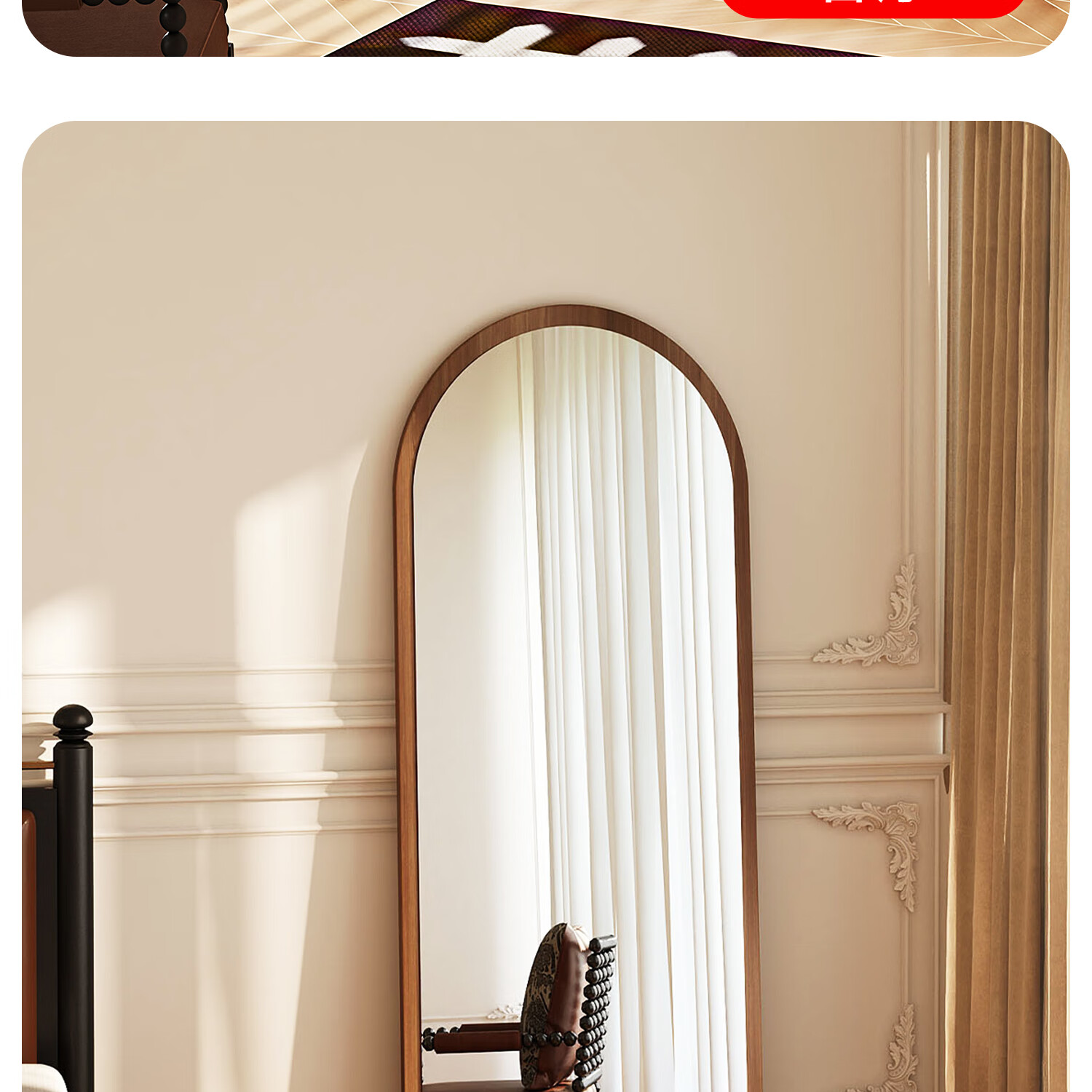 吱凡日本全身镜落地镜家用穿衣镜卧室镜子一体壁挂女生试衣镜宿舍挂墙 【胡桃木】160x50cm-可壁挂可站立【送实木底托+支架】