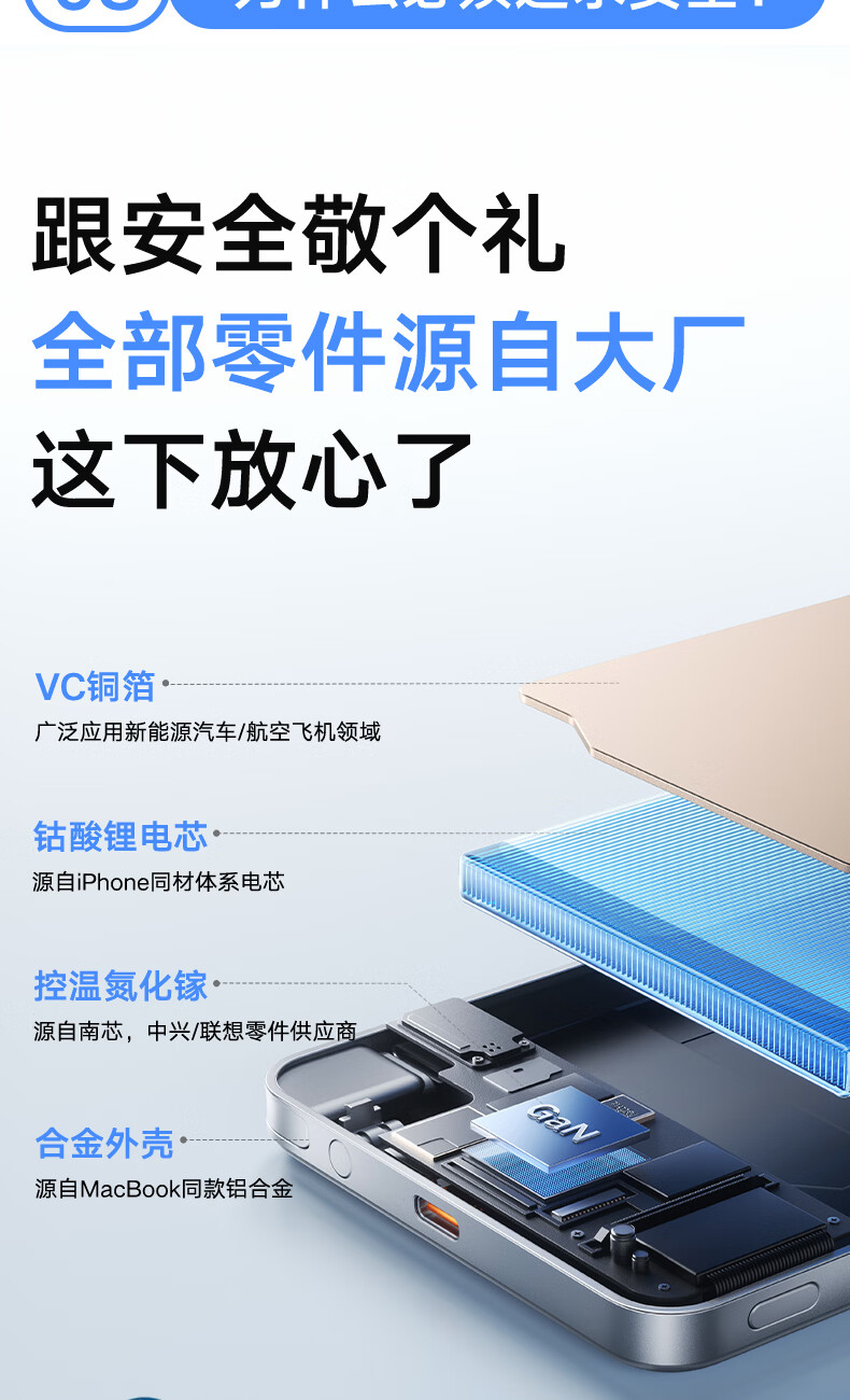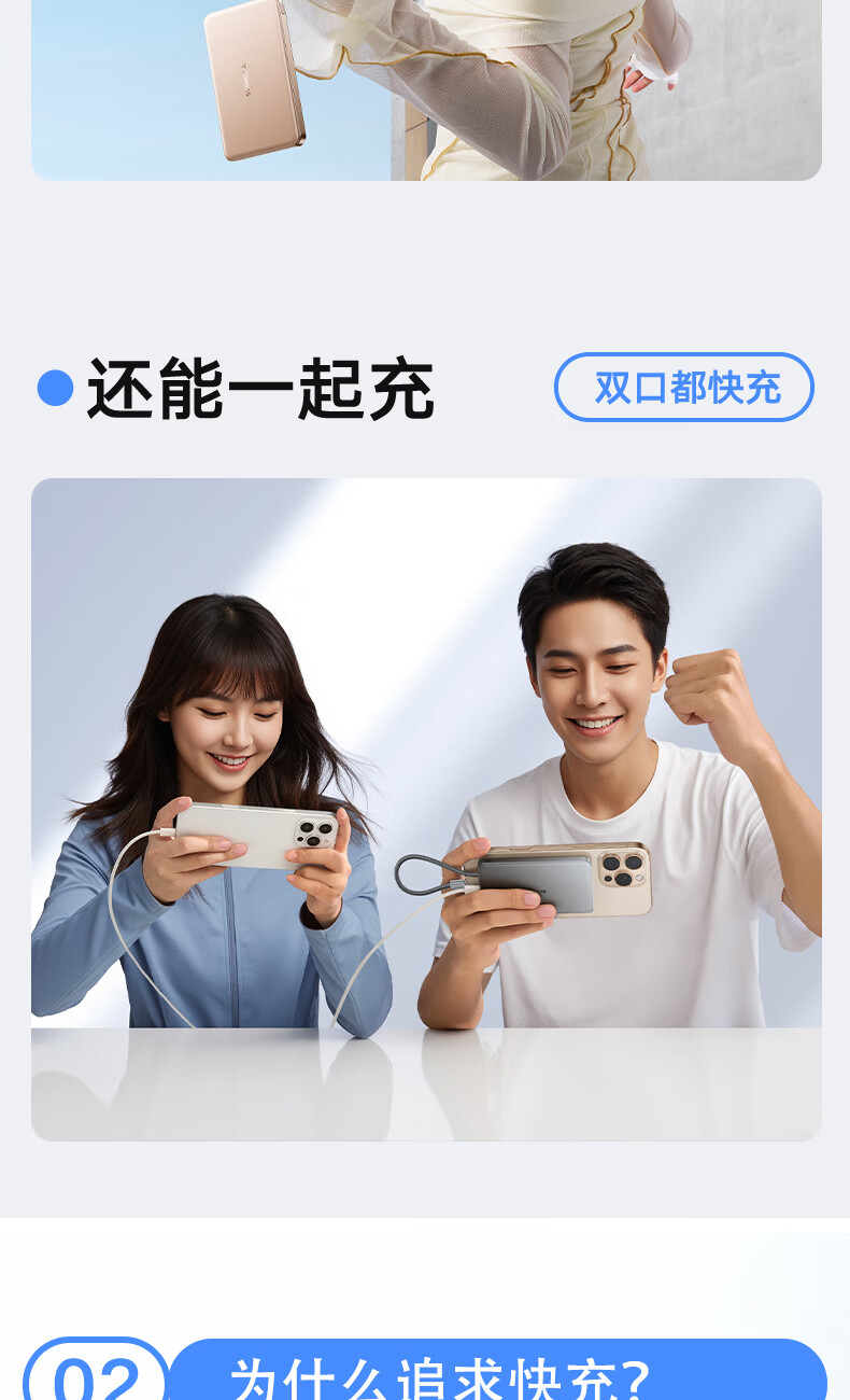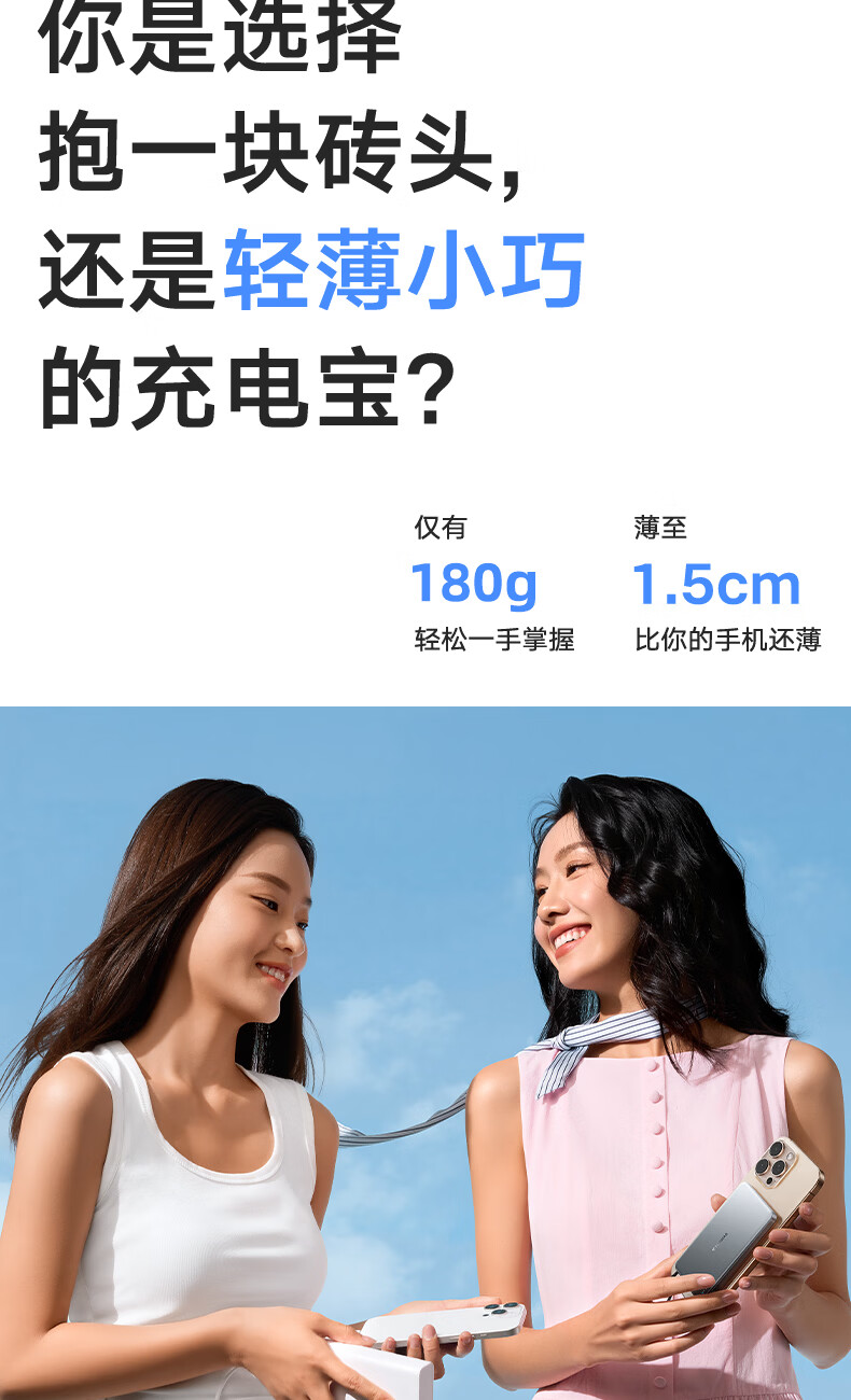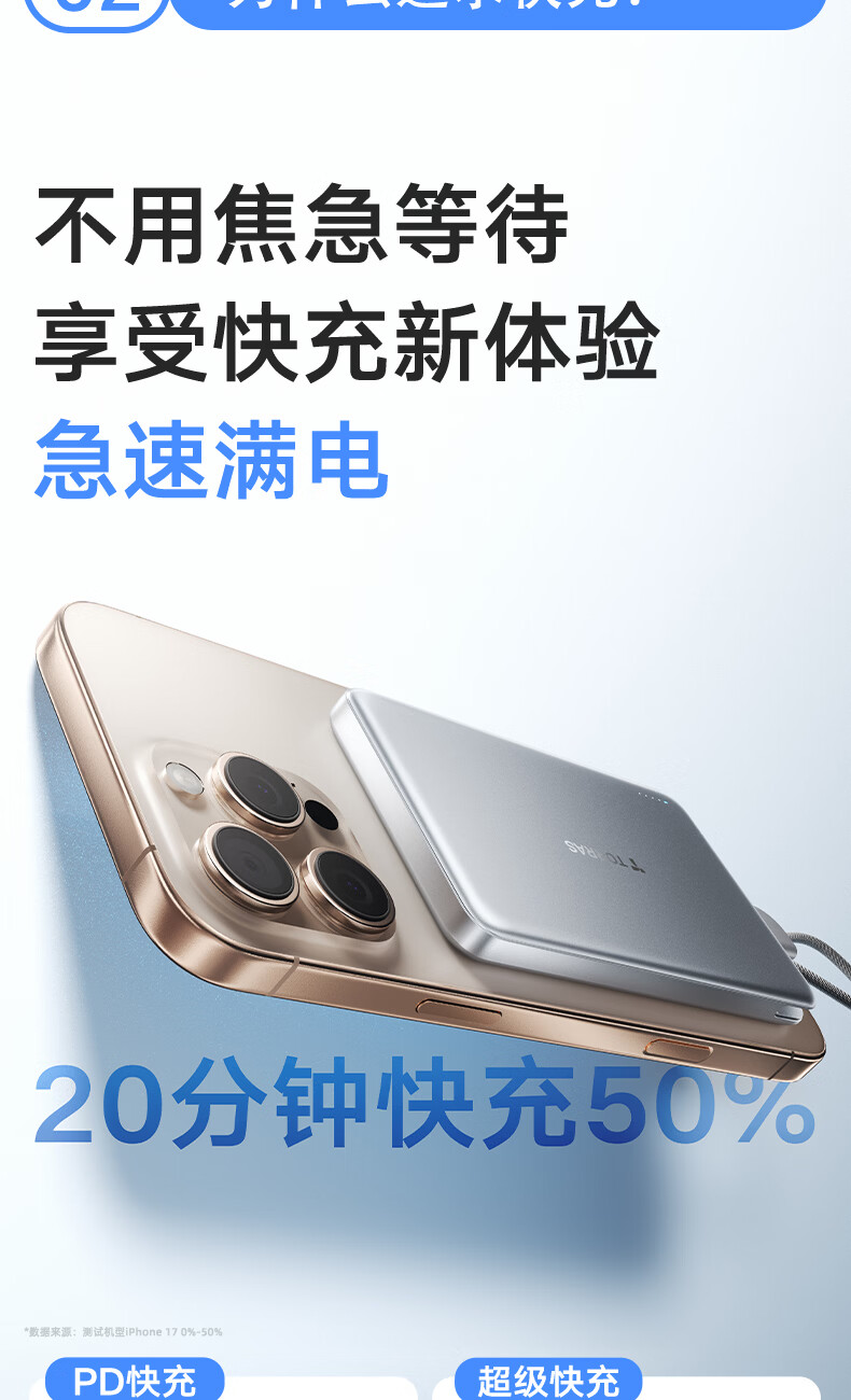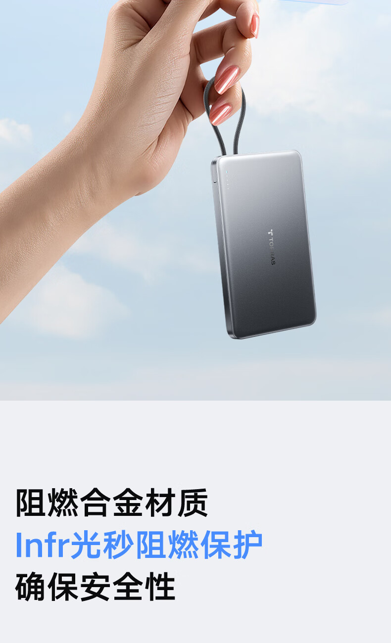 图拉斯充电宝3C认证【2026升级款】可上飞机10000毫安磁吸固定自带线移动电源低温快充适用苹果15-17