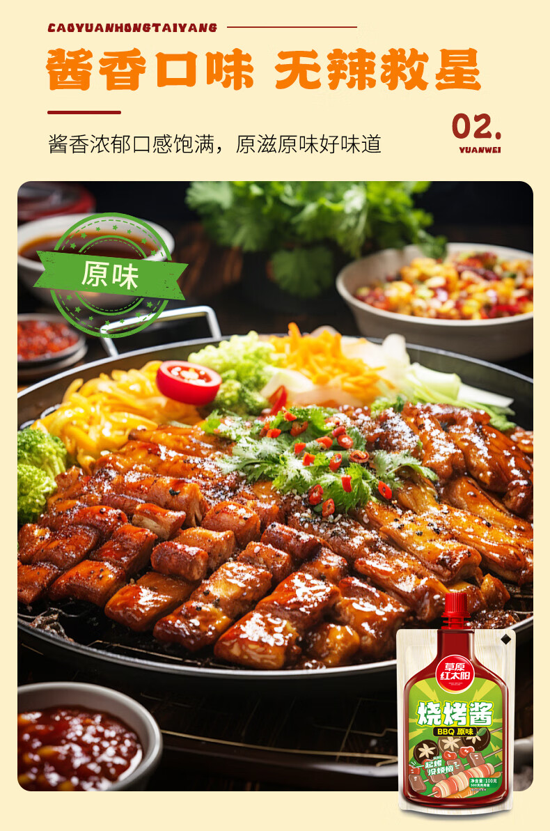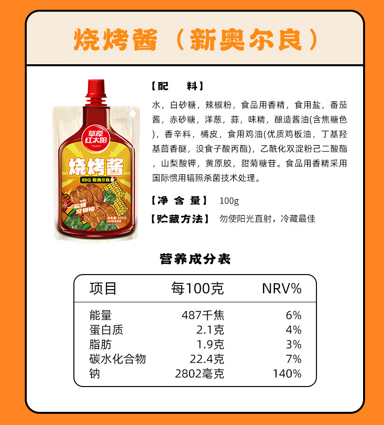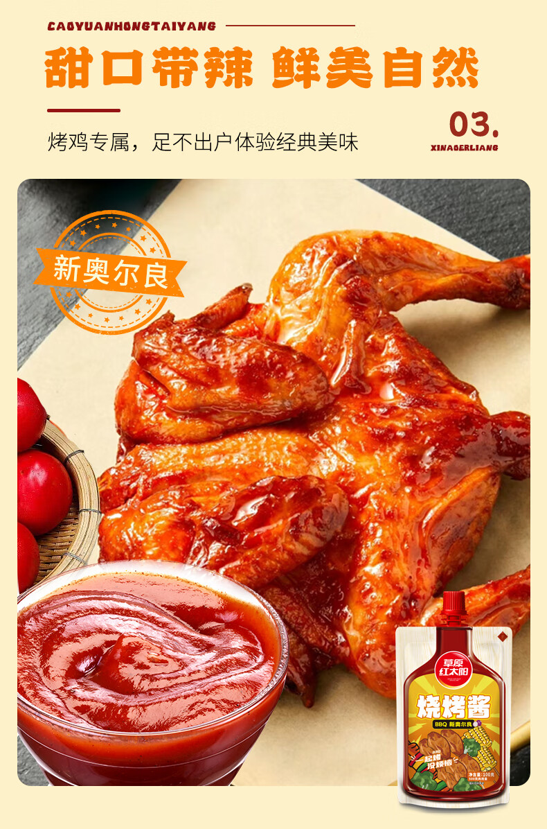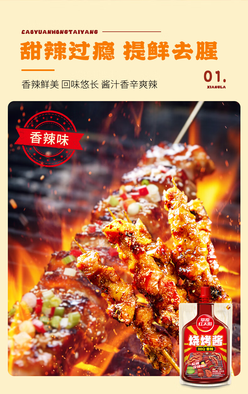 草原红太阳烧烤酱家用烧烤酱撒料秘制刷料香辣原味奥尔良4种口味 香辣100g 4袋装