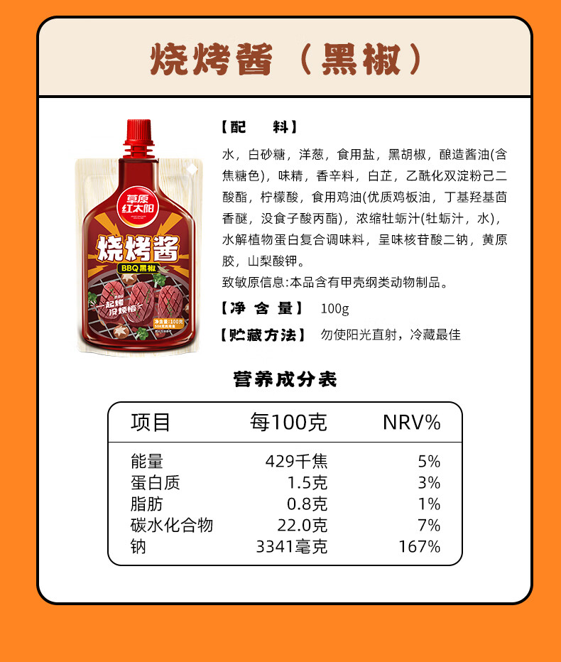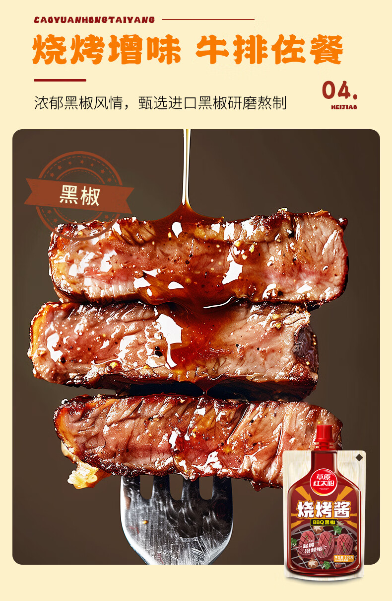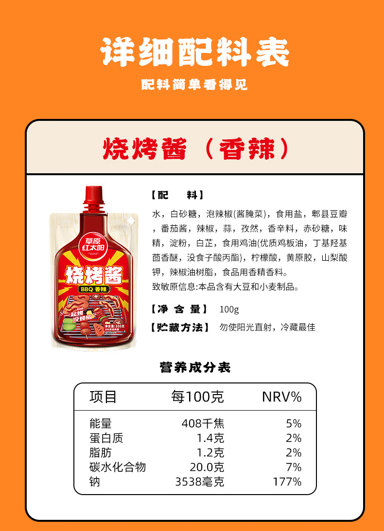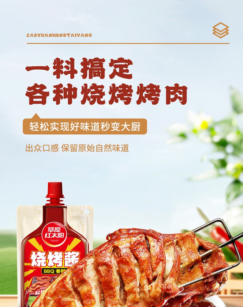 草原红太阳烧烤酱家用烧烤酱撒料秘制刷料香辣原味奥尔良4种口味 香辣100g 4袋装