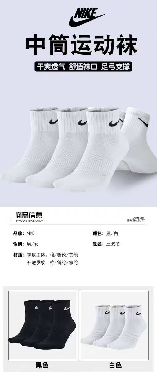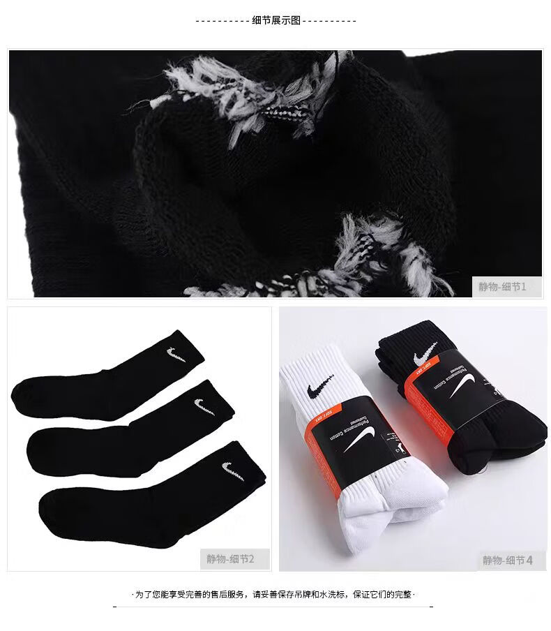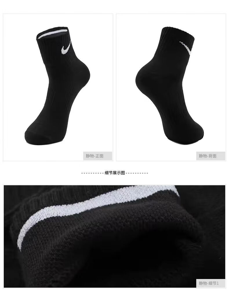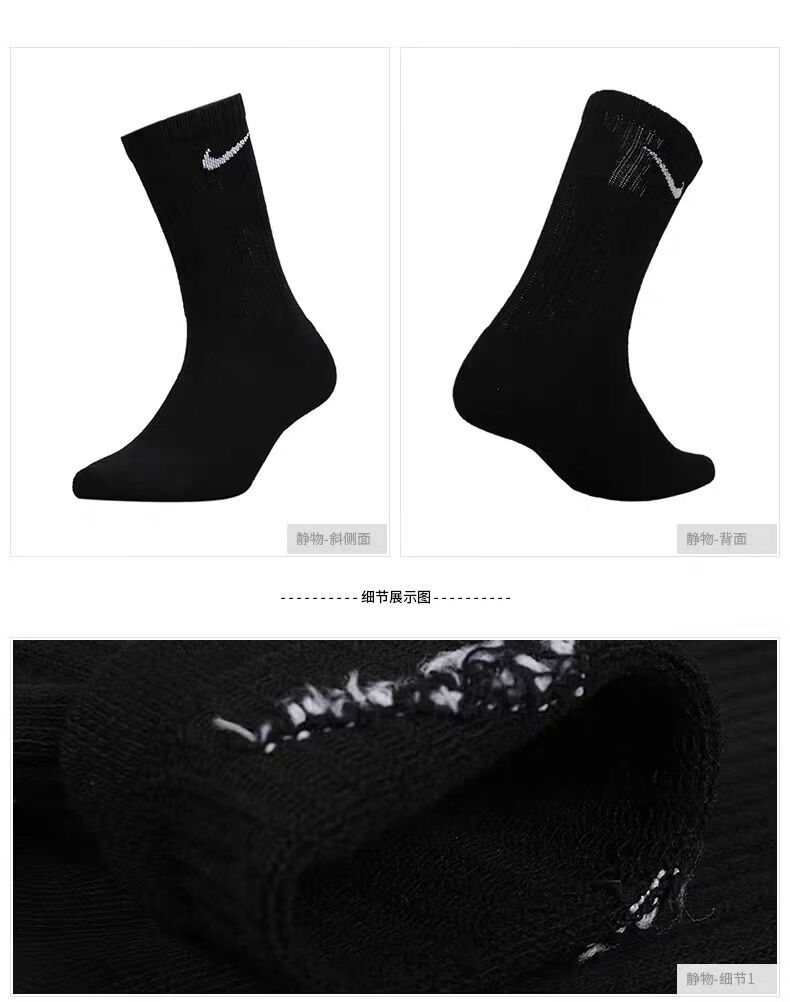 三师哥N/K袜子男棉袜中筒袜防臭吸汗透气抗菌厚款长袜白袜子男 黑色 【长筒】 6双 L 42/44 【抗起球】