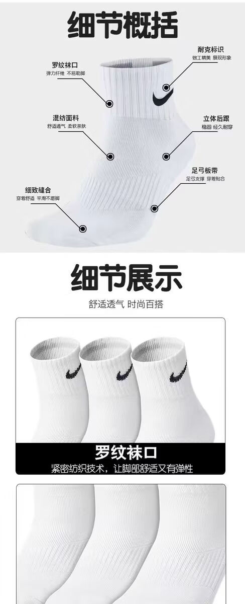 【新疆长绒棉】精梳棉袜子男女同款运动抗菌吸汗耐磨舒适透气高棉 白色 5双 均码 【中筒】