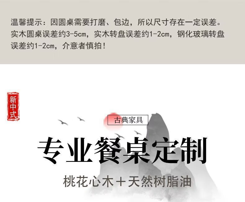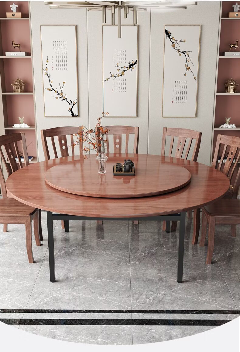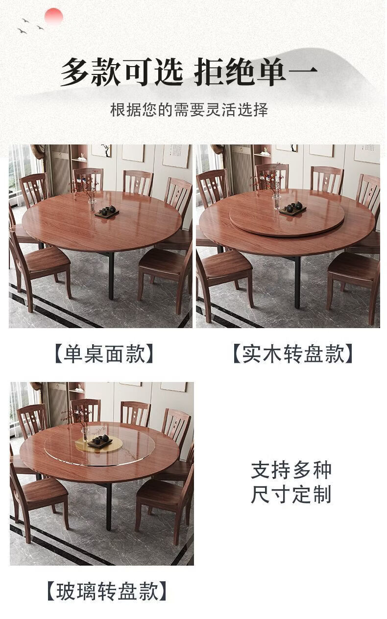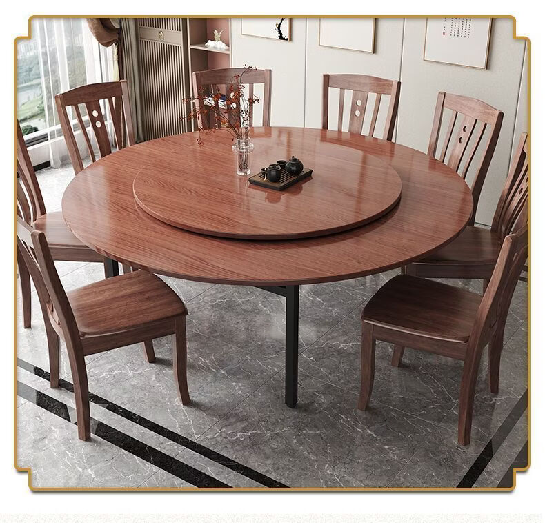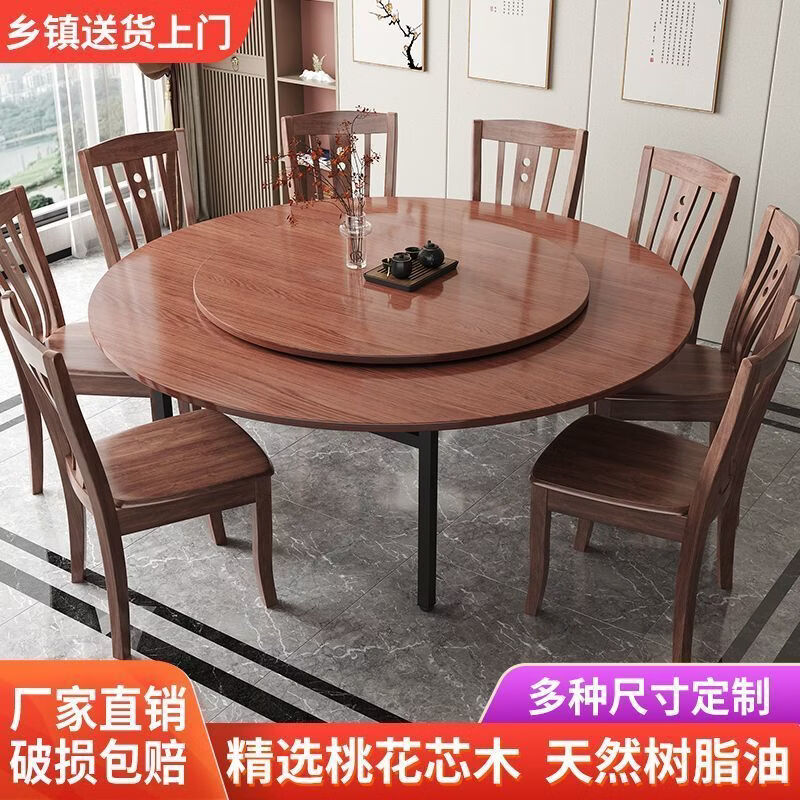 恩希仕带转盘圆形桌面餐桌 桃花芯实木圆桌面板 15人家用餐厅加厚大圆桌 桃花芯[桌面+玻璃转盘 单桌 1.6米 2.2CM厚度