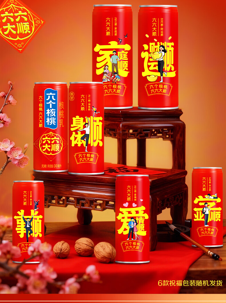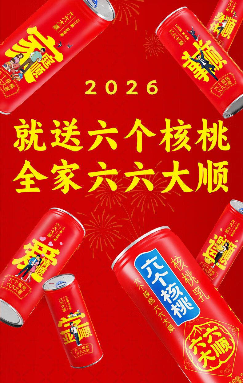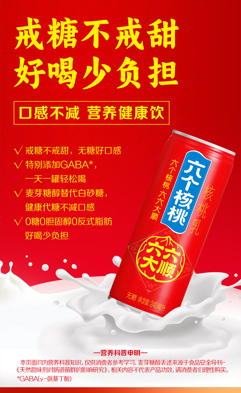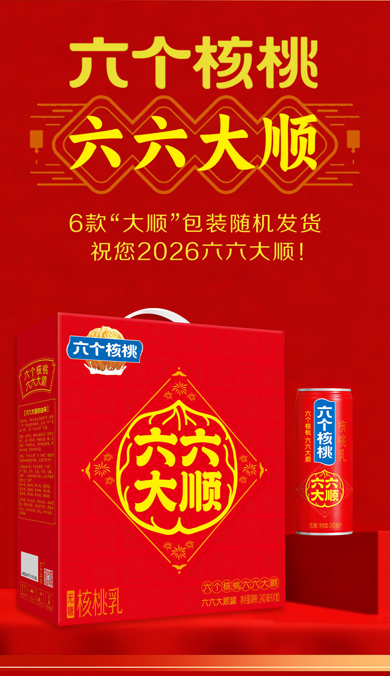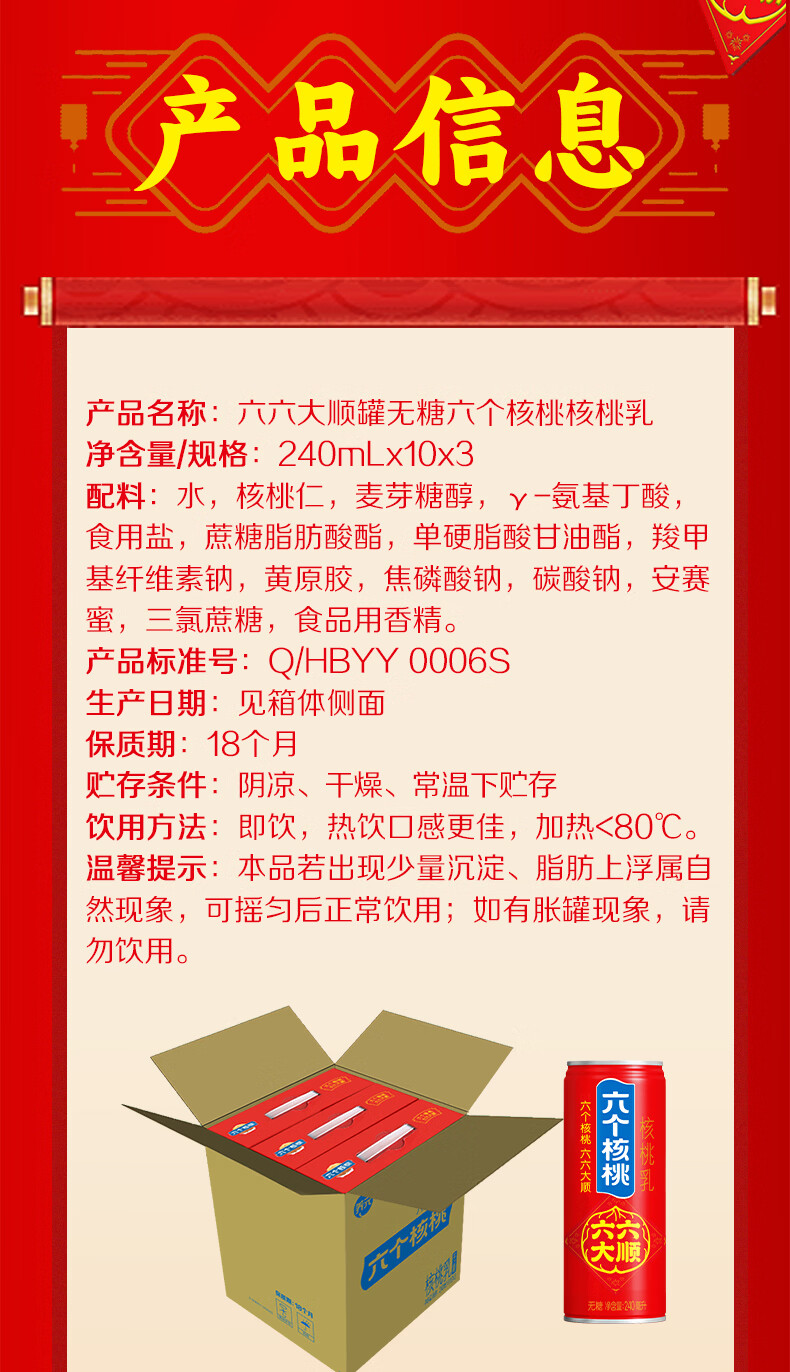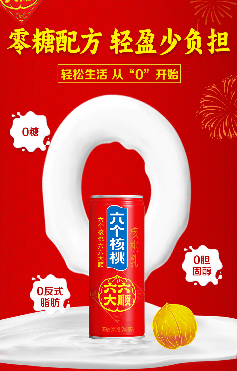 六个核桃六六大顺无糖型240ml*10罐*3箱核桃乳植物蛋白饮料整箱